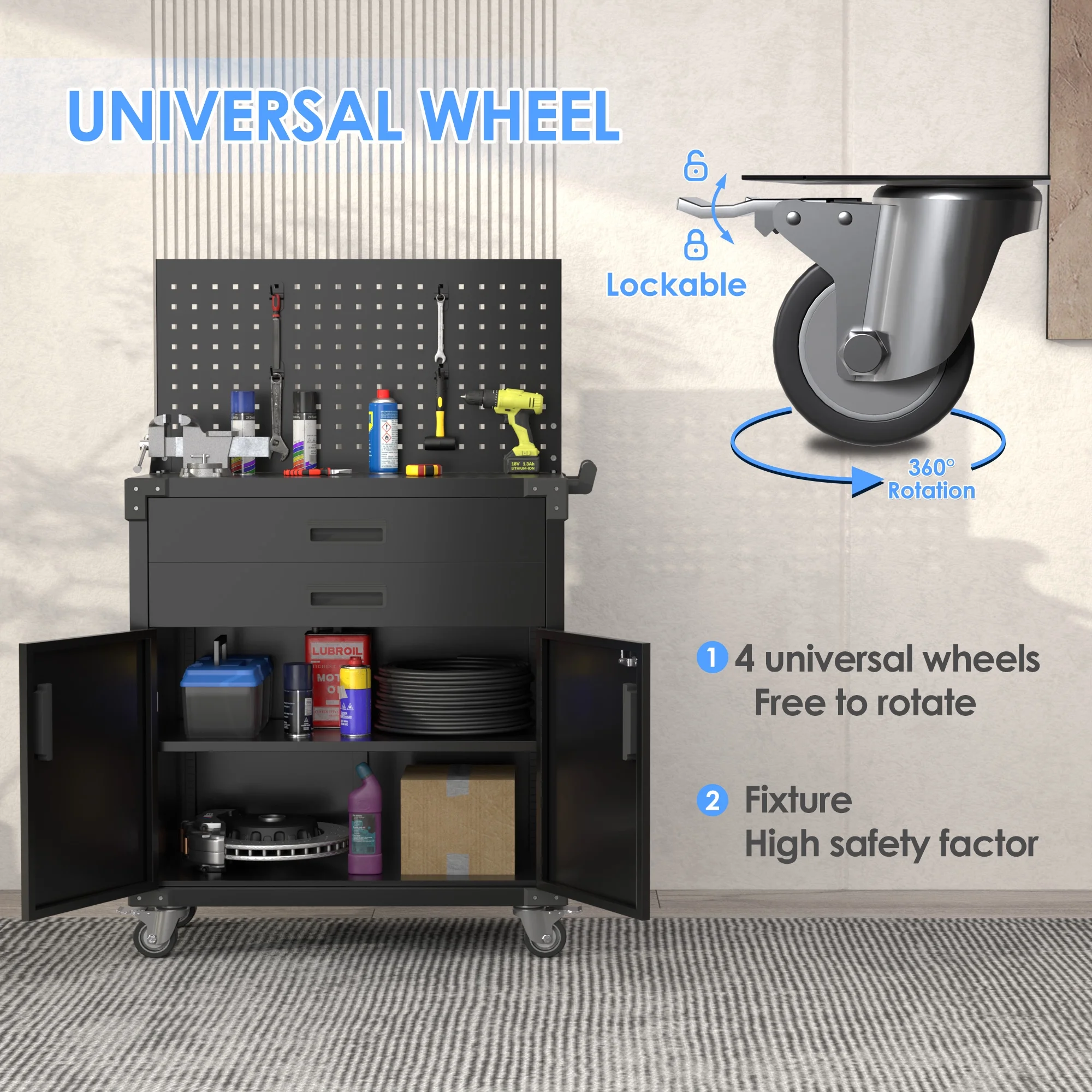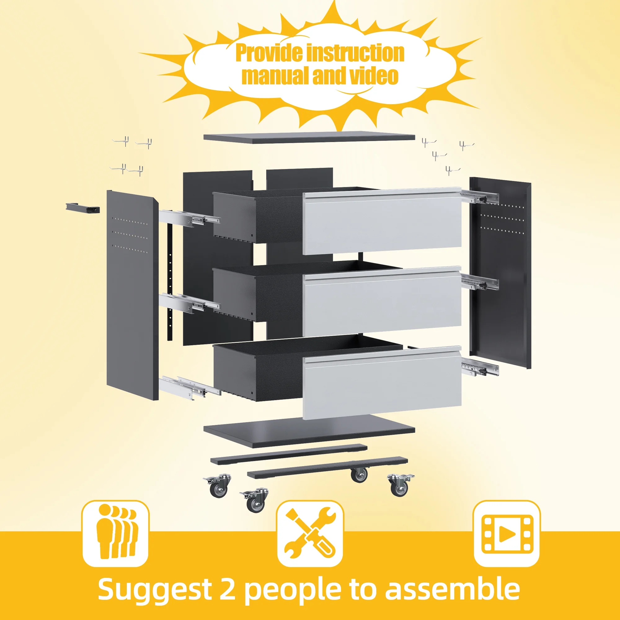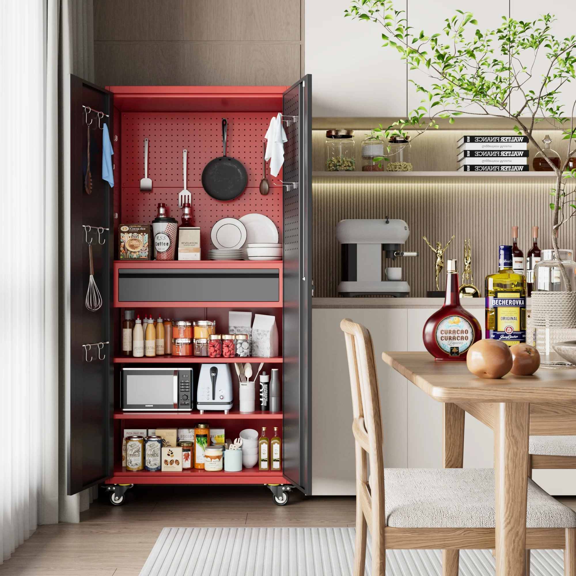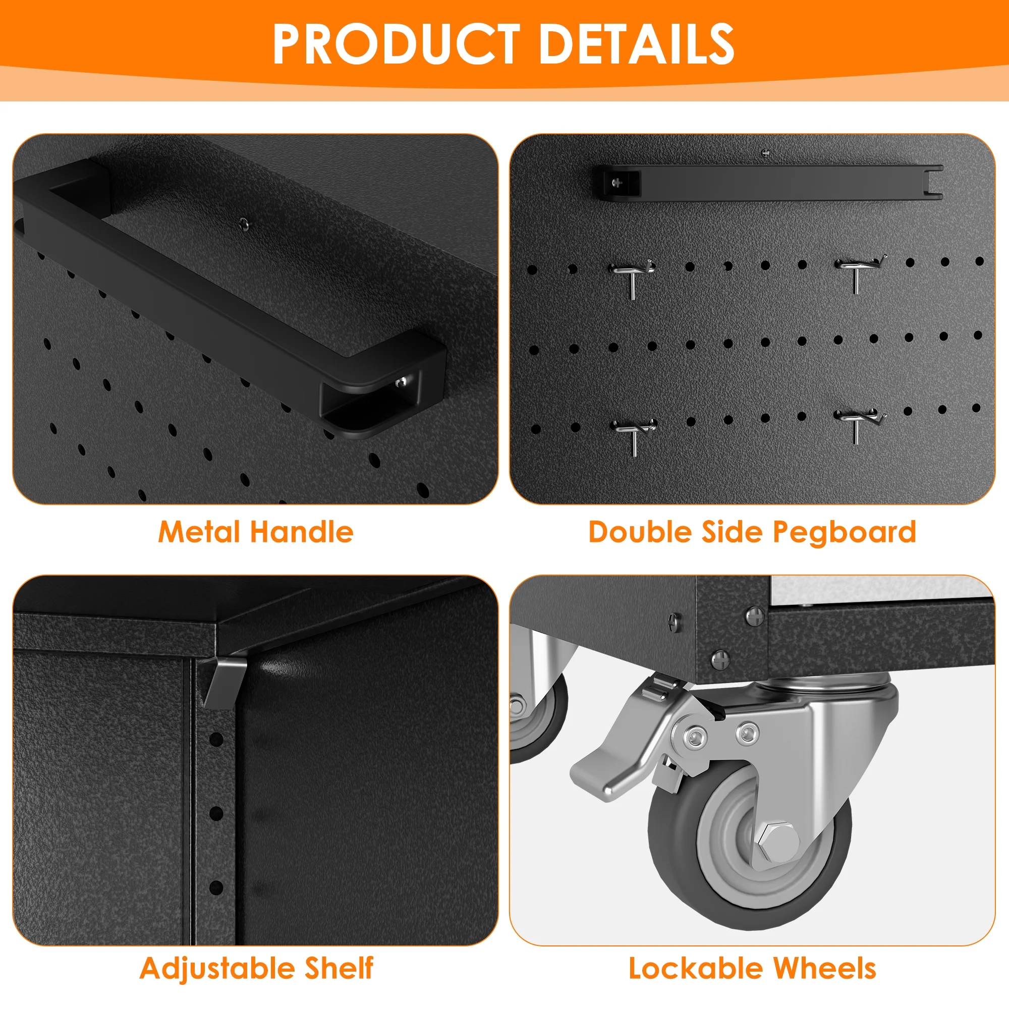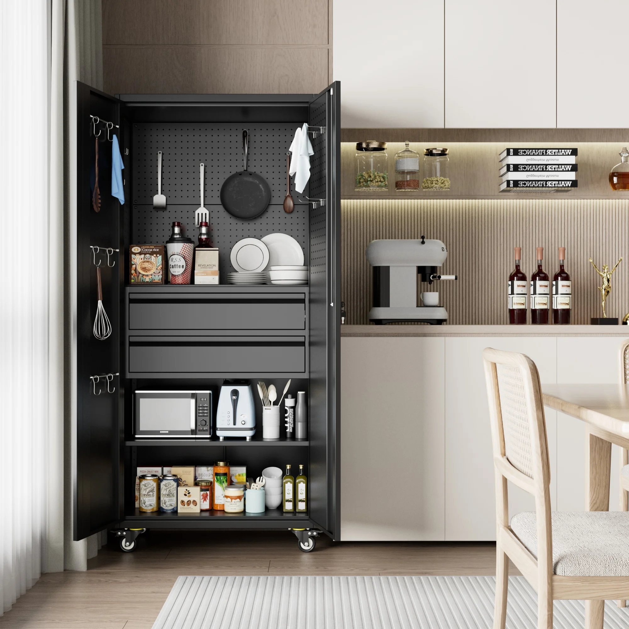 - ��Wall Mounted Brackets��The metal storage cabinet with wheels has 2 wall-mounted brackets, you can choose to connect the storage cabinet to the wall.