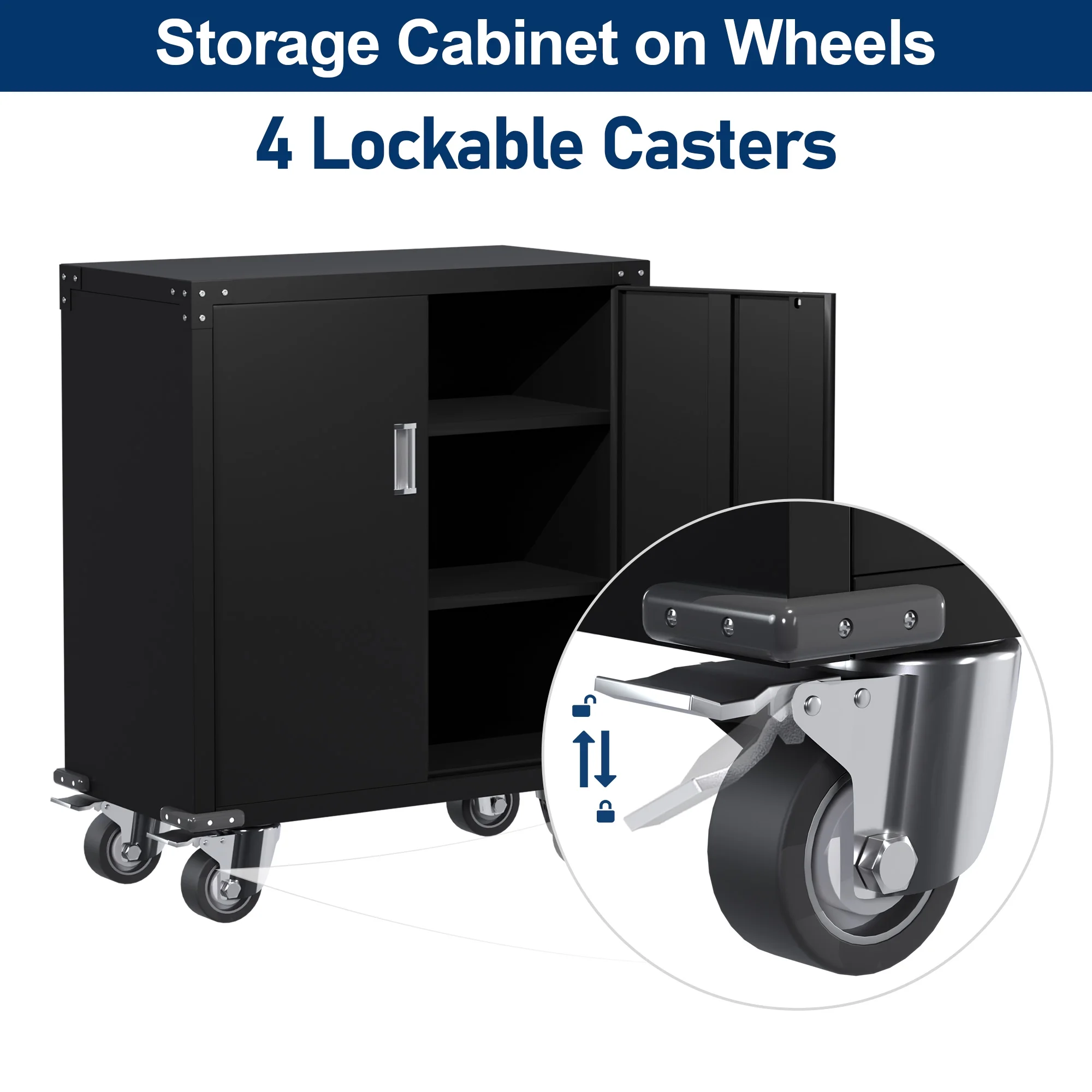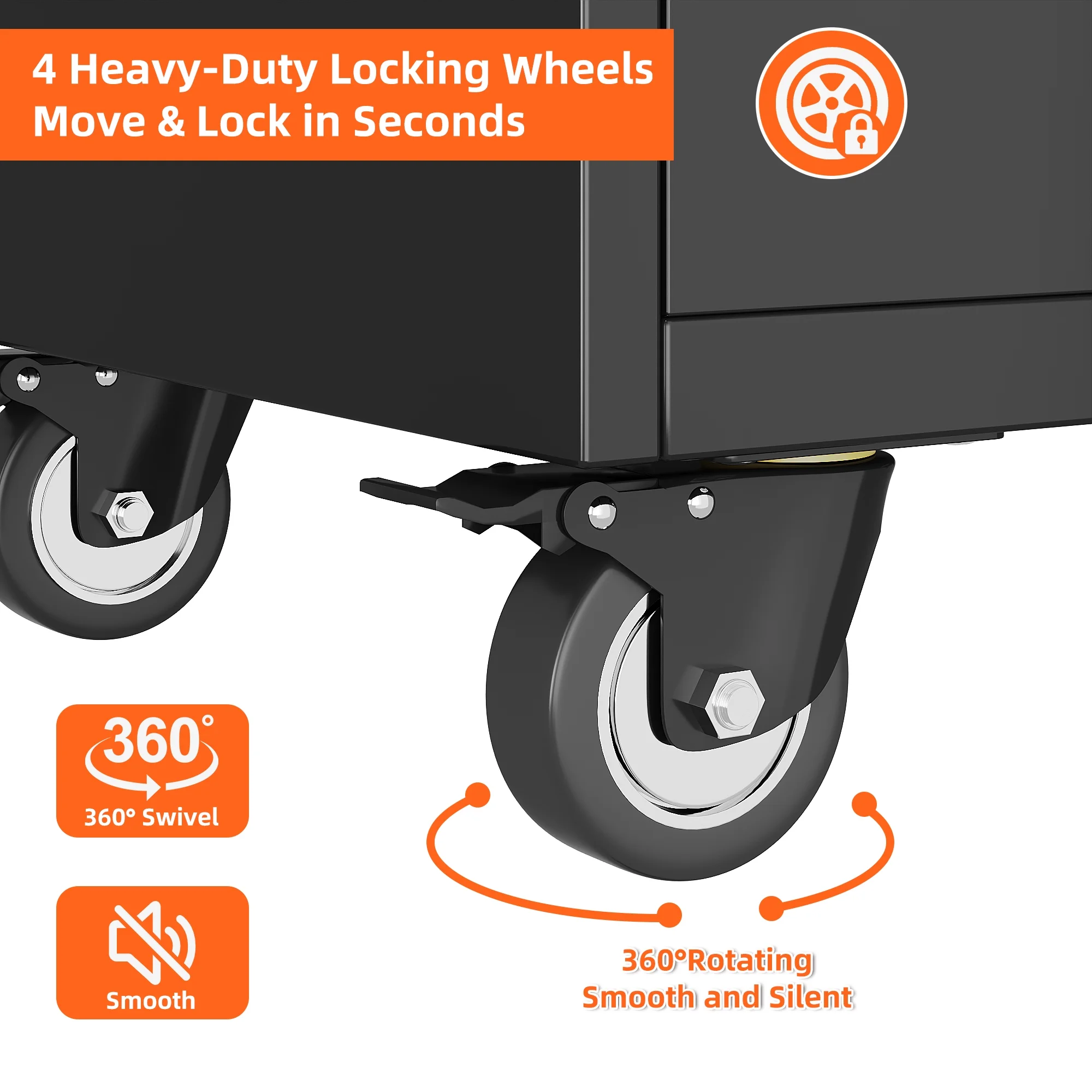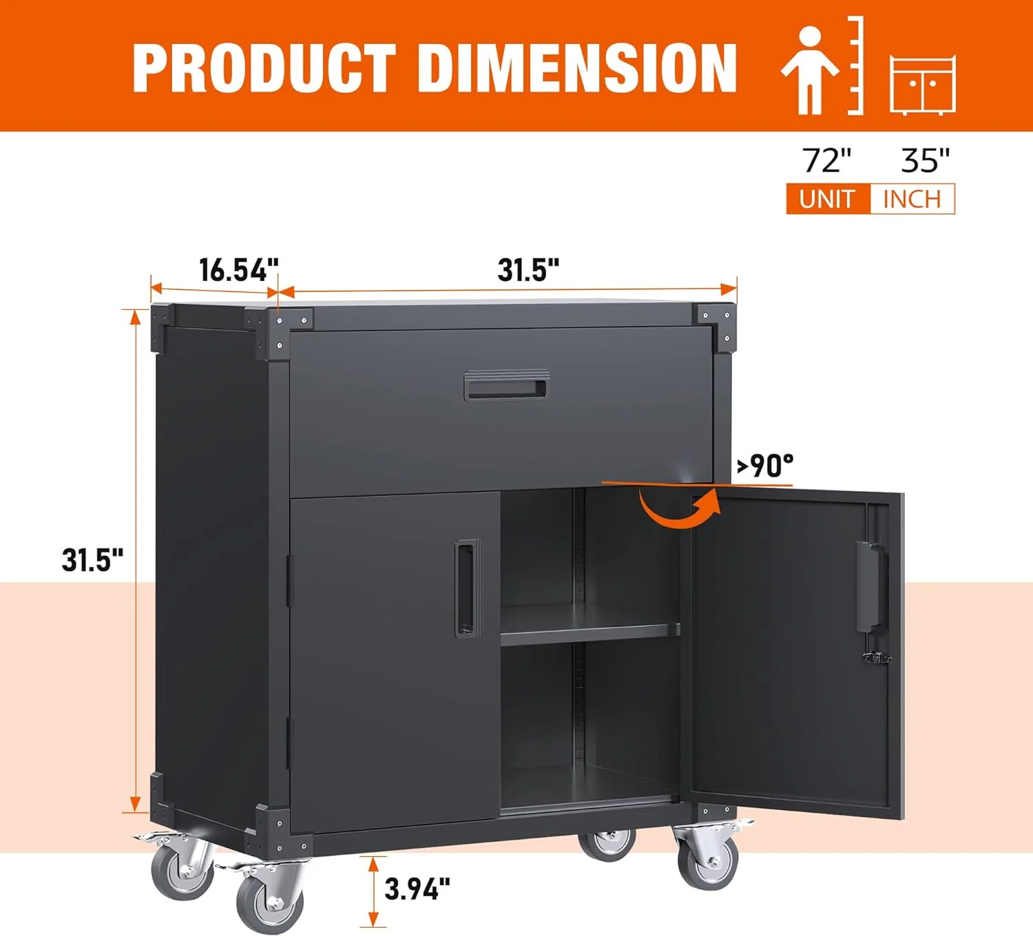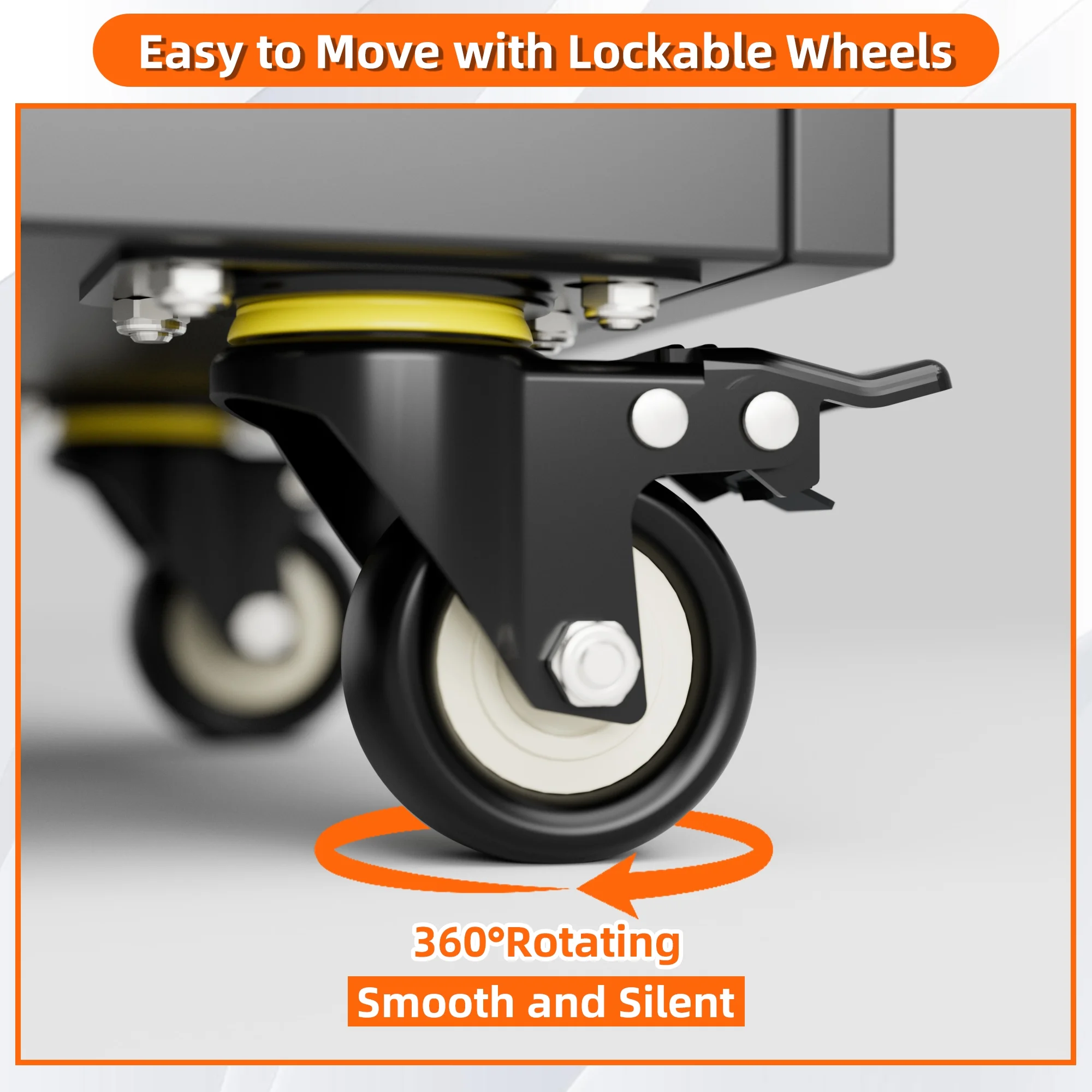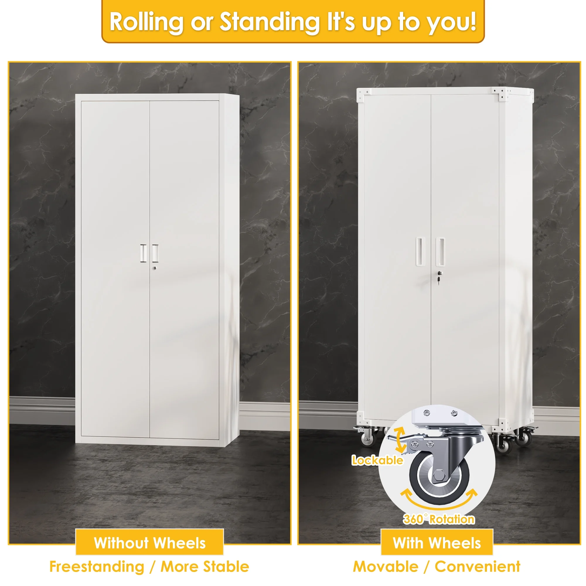 - ��Swivel Wheels with Lock��Metal storage cabinet with wheels has 4 lockable wheels,you can move them around as needed and the casters and wheels work great on all the different surfaces,besides the wheels can be locked and you can fix the cabinet where you want to place.