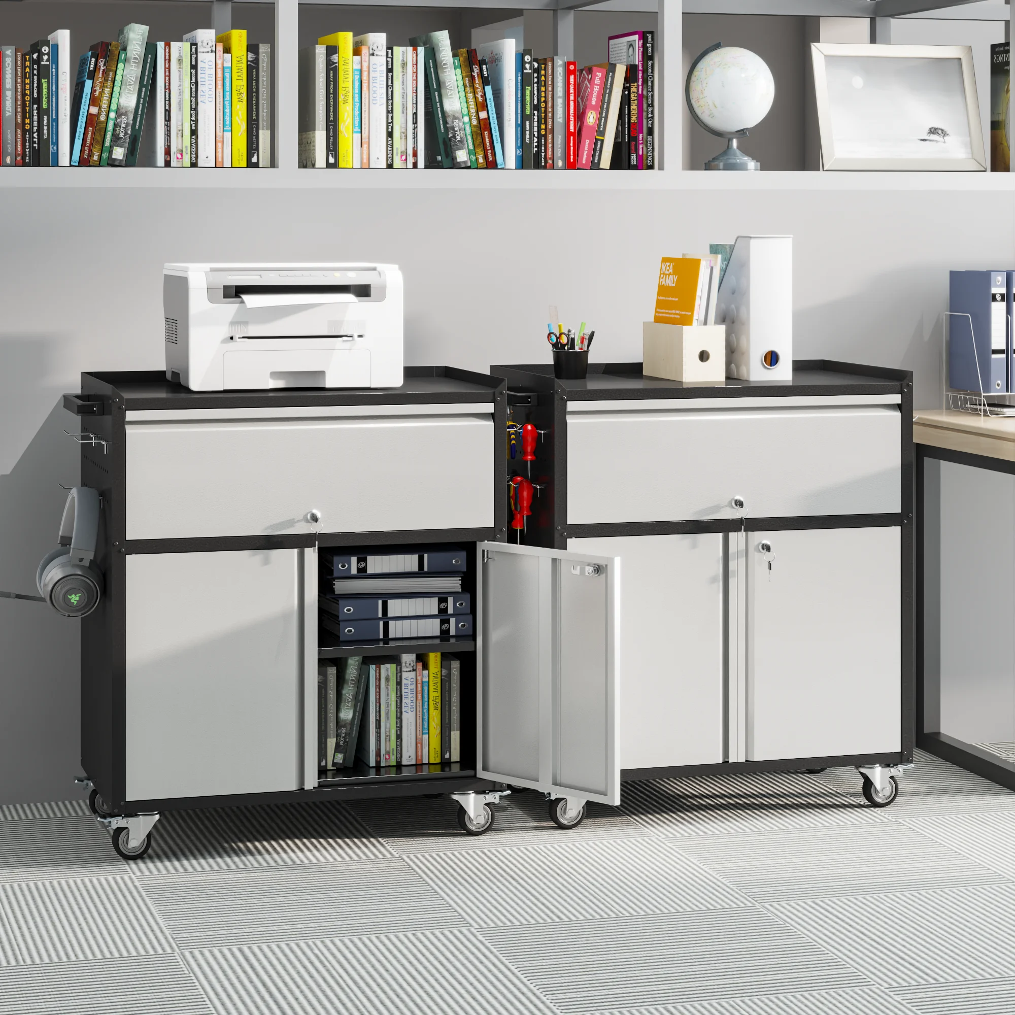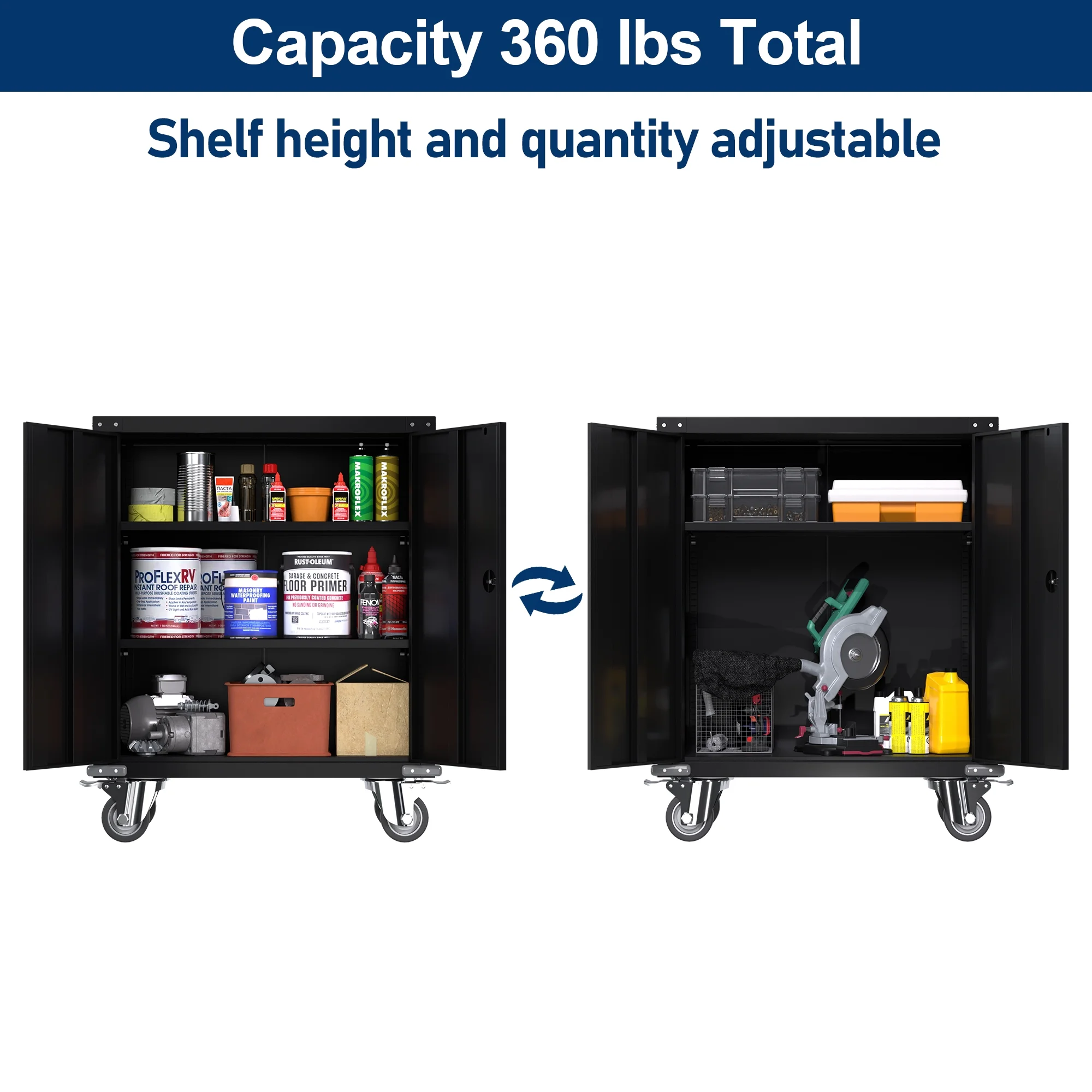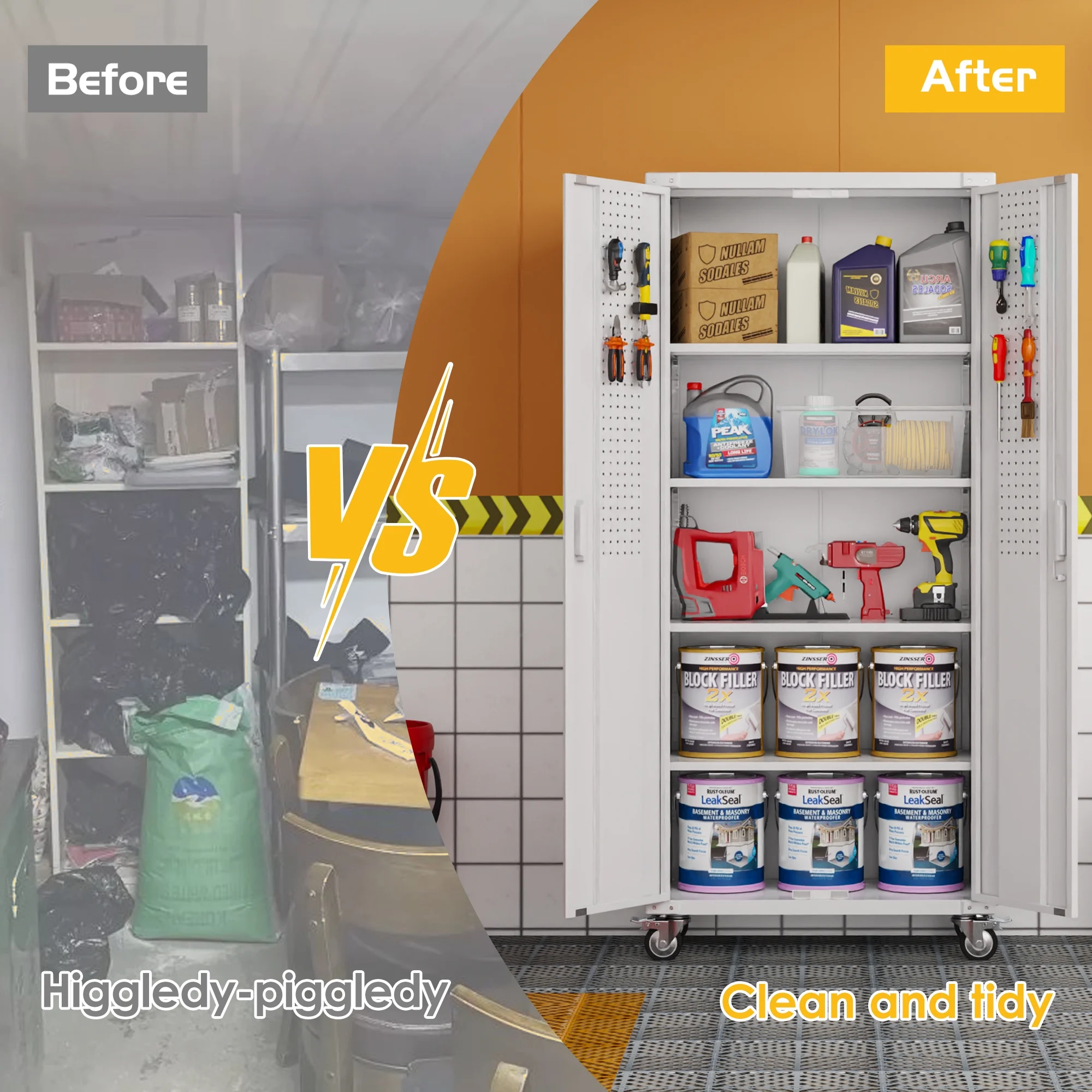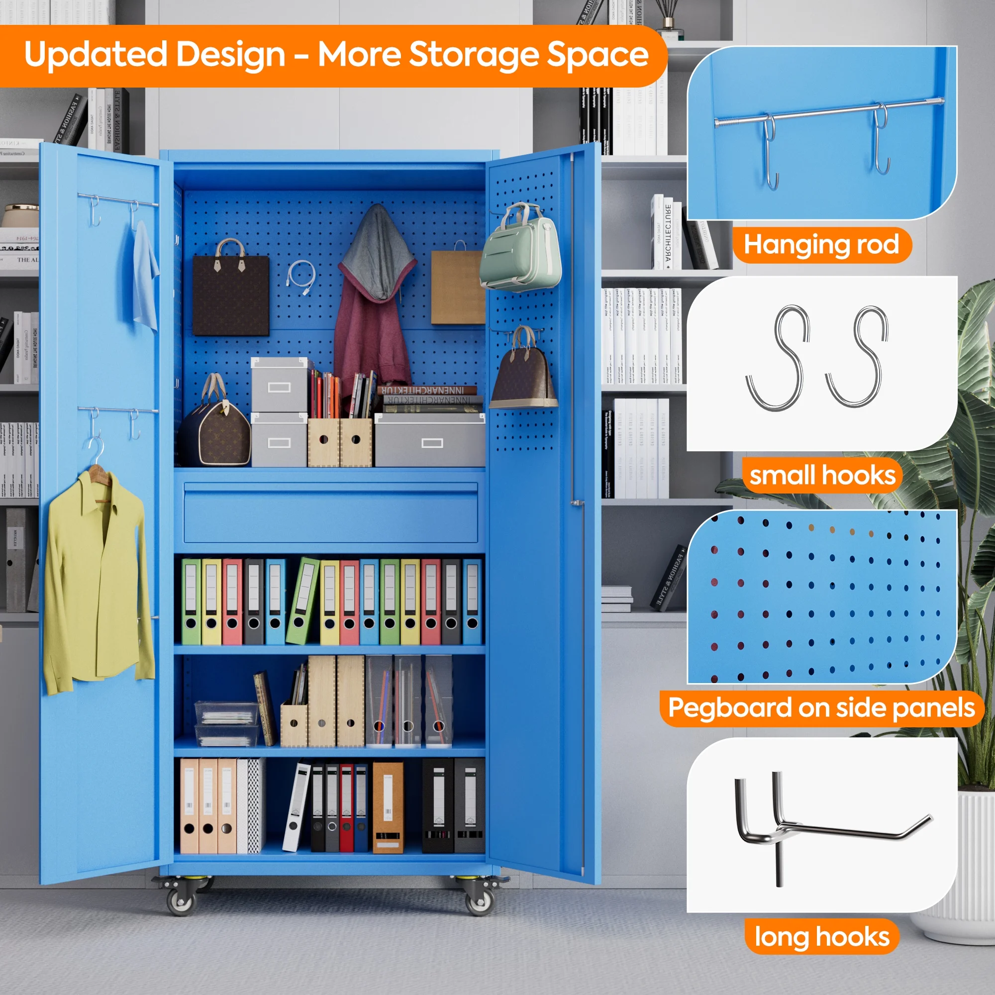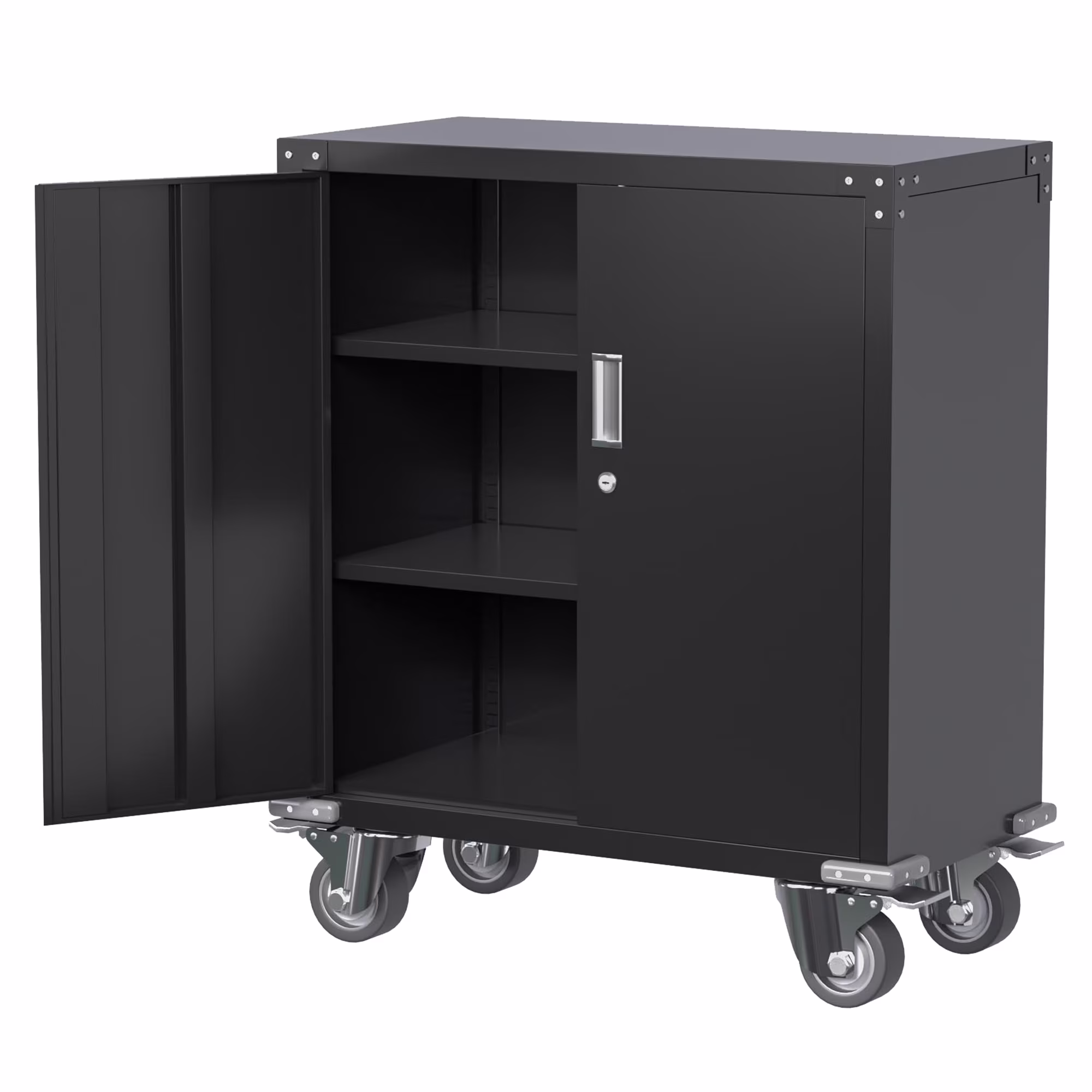 - ��Swivel Wheels with Lock��Metal storage cabinet with wheels has 4 lockable wheels,you can move them around as needed and the casters and wheels work great on all the different surfaces,besides the wheels can be locked and you can fix the cabinet where you want to place.