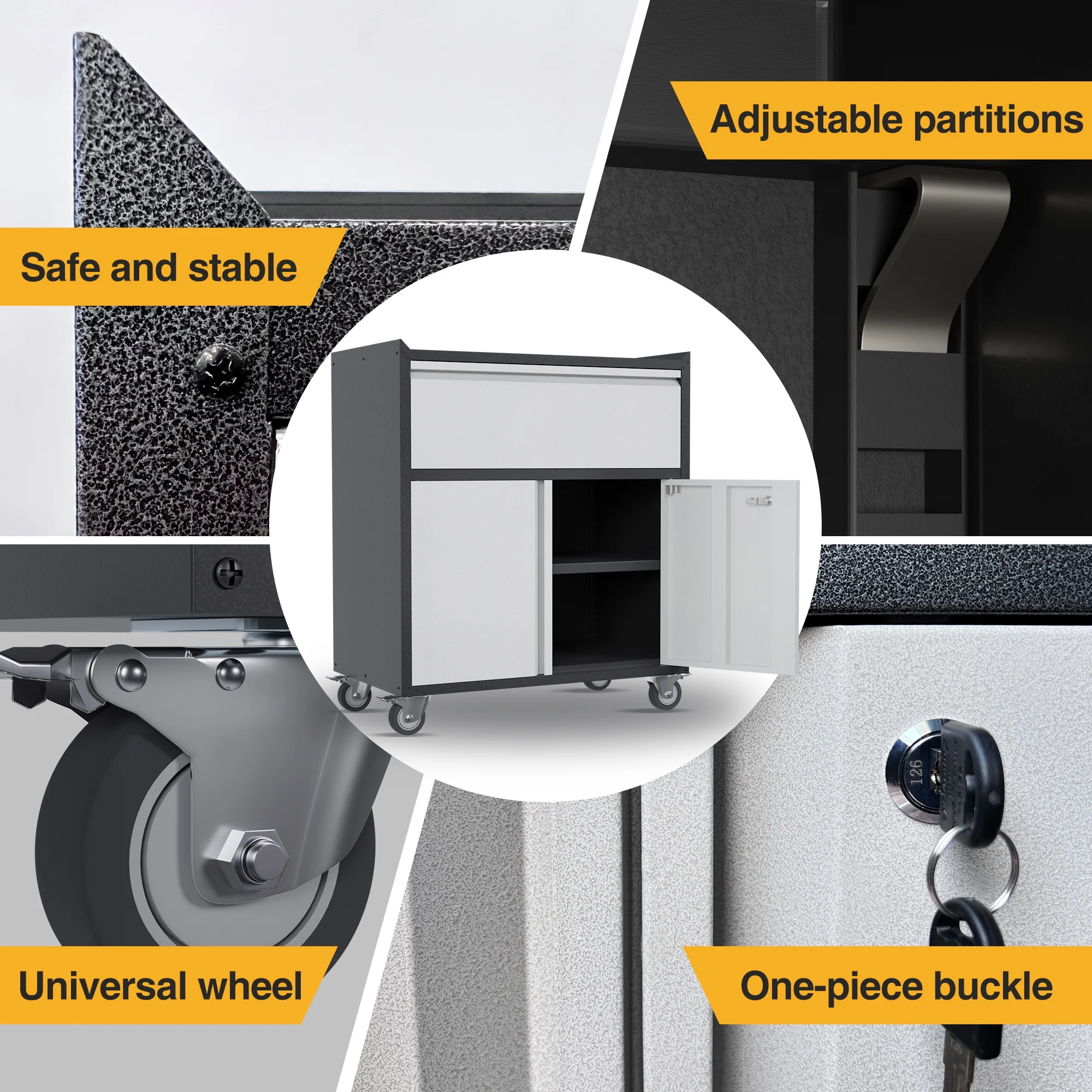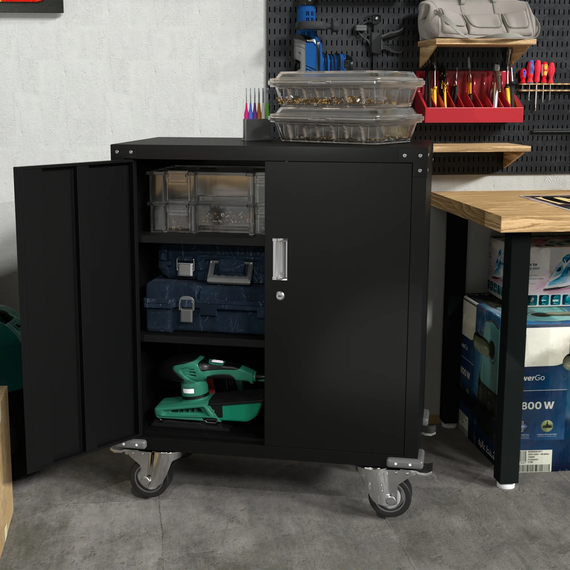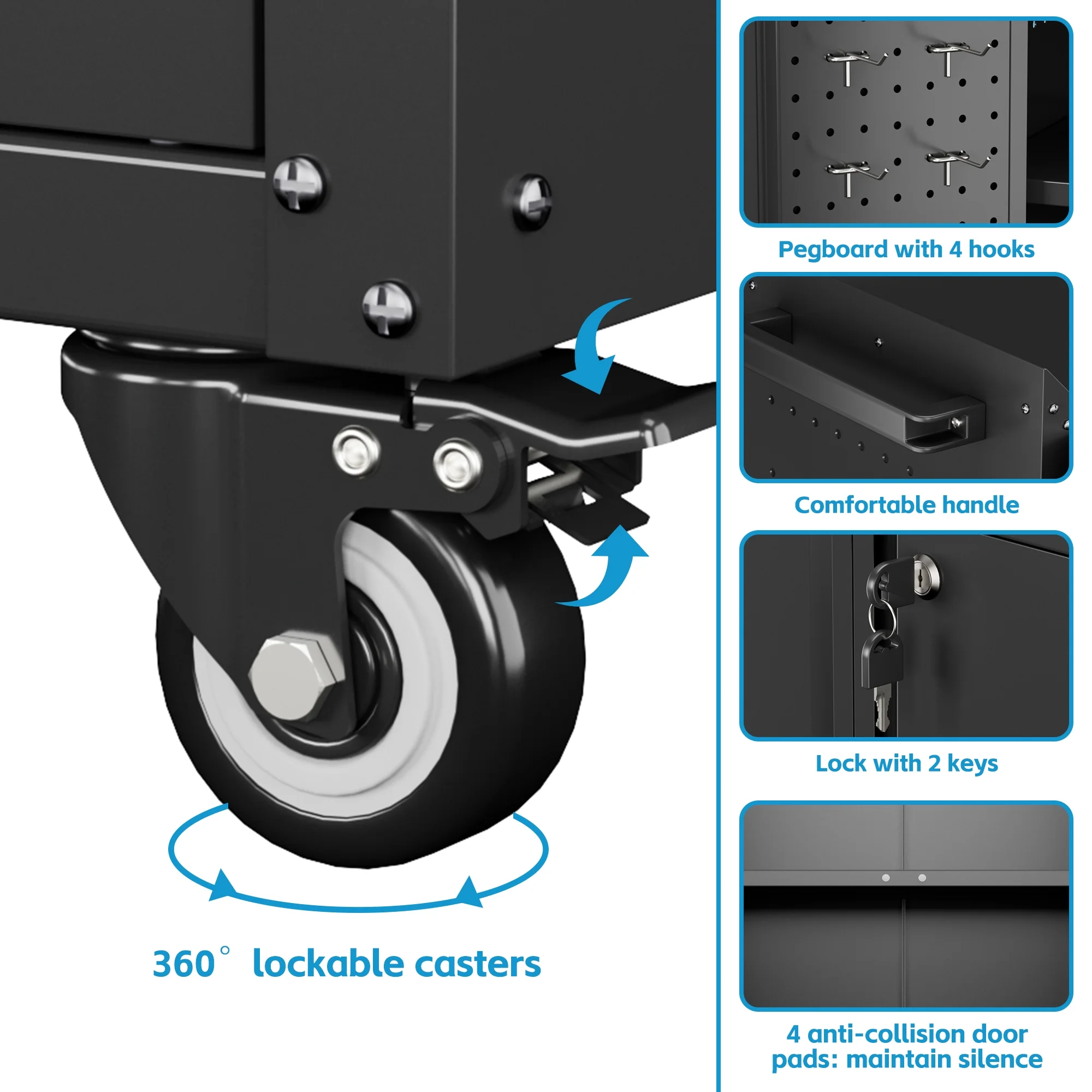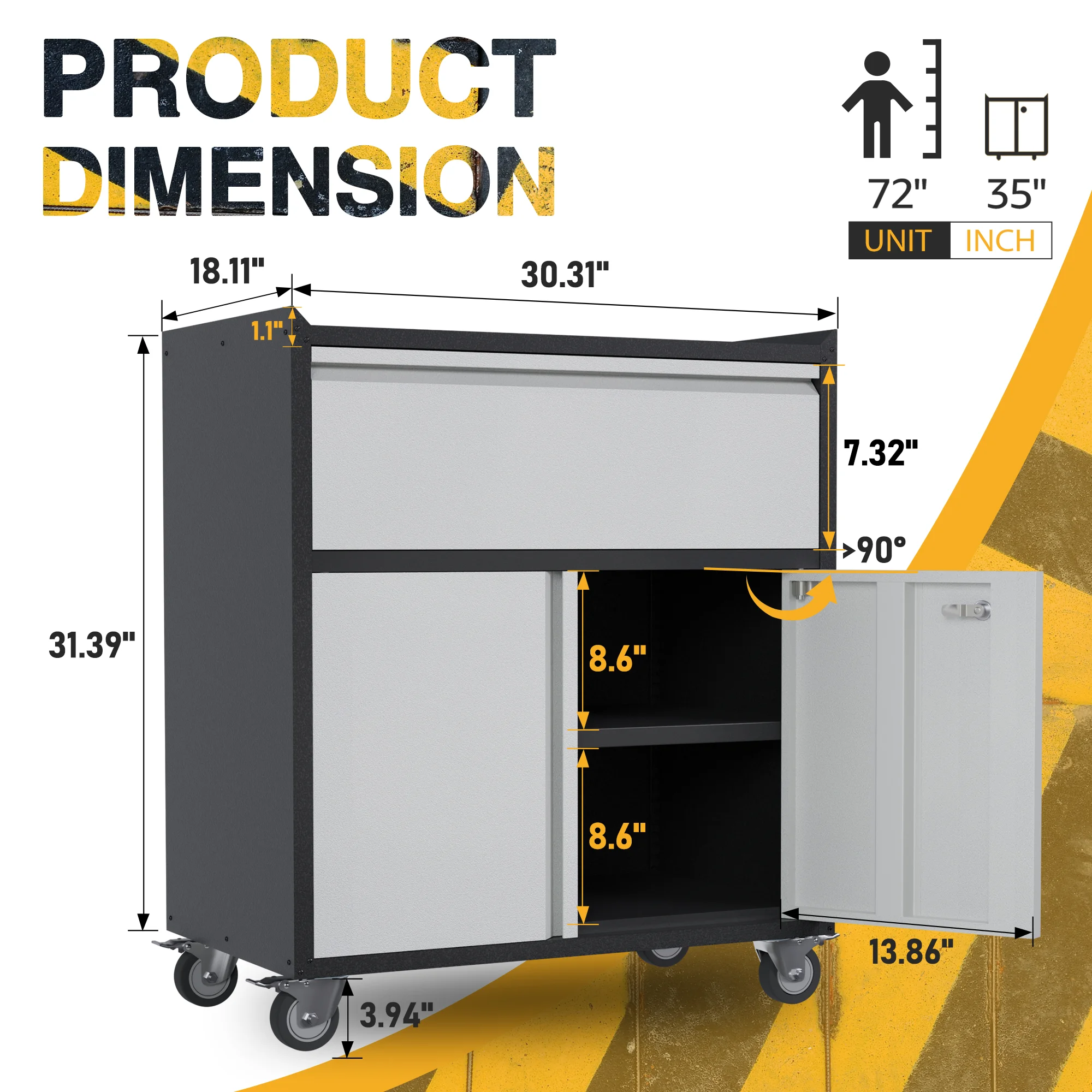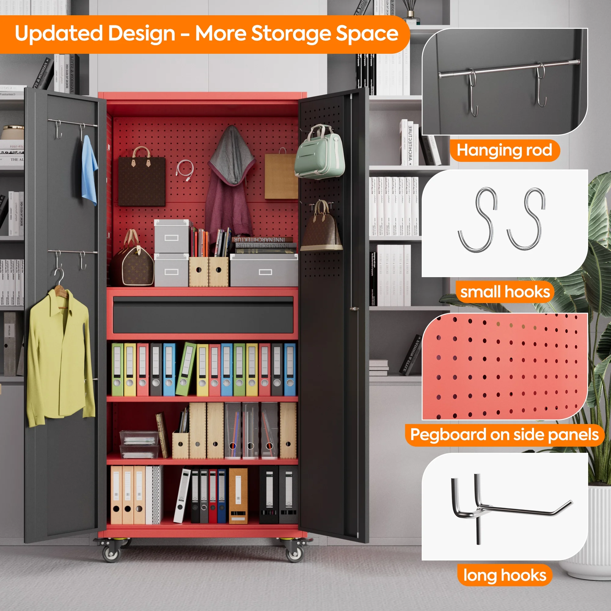 - ��Swivel Wheels with Lock��Metal storage cabinet with wheels has 4 lockable wheels,you can move them around as needed and the casters and wheels work great on all the different surfaces,besides the wheels can be locked and you can fix the cabinet where you want to place.