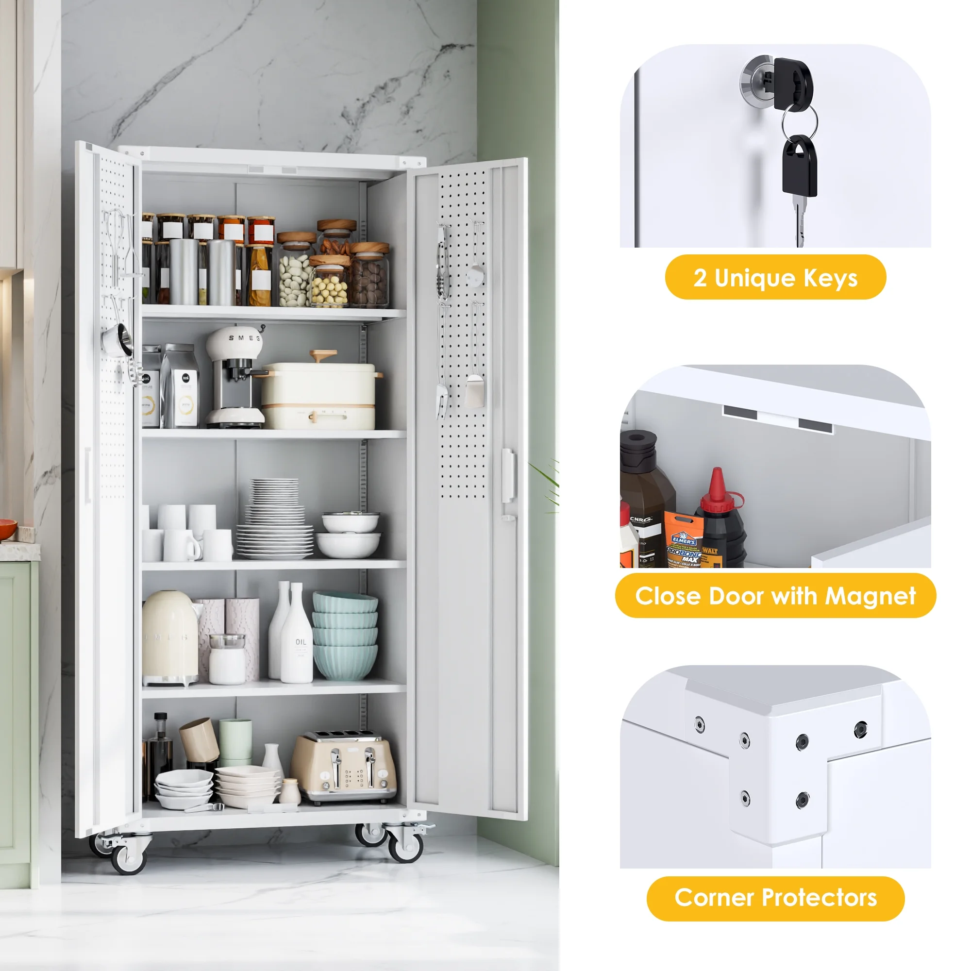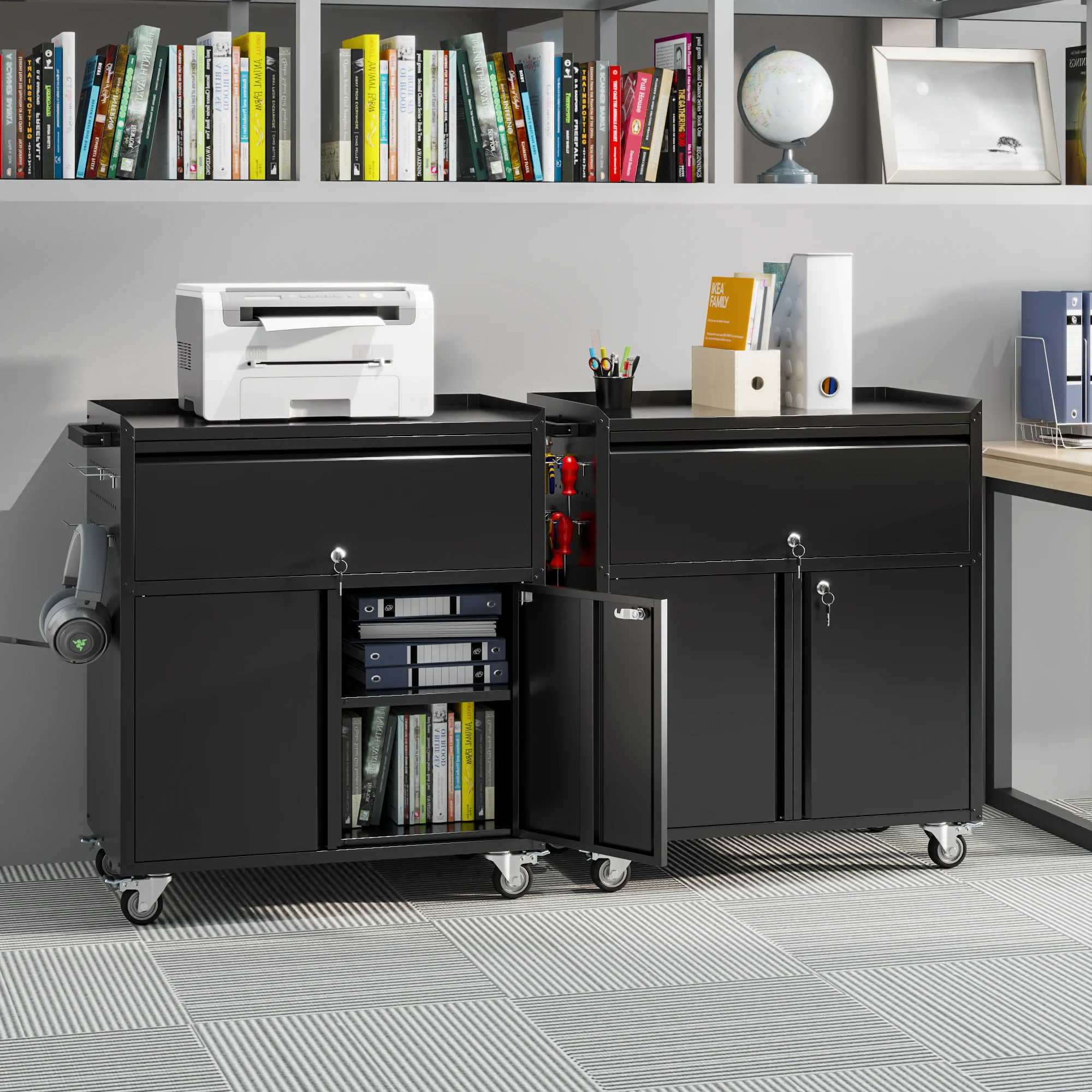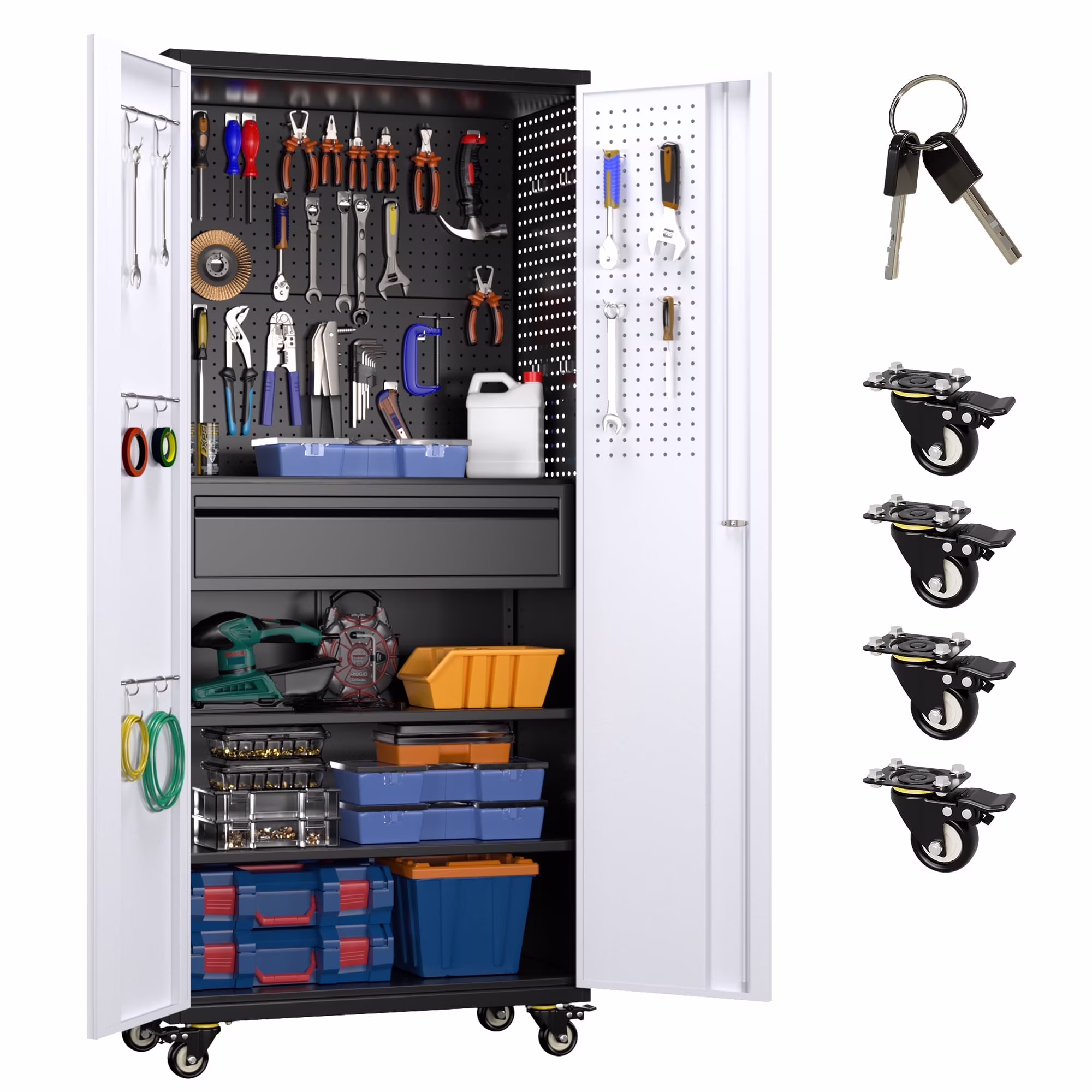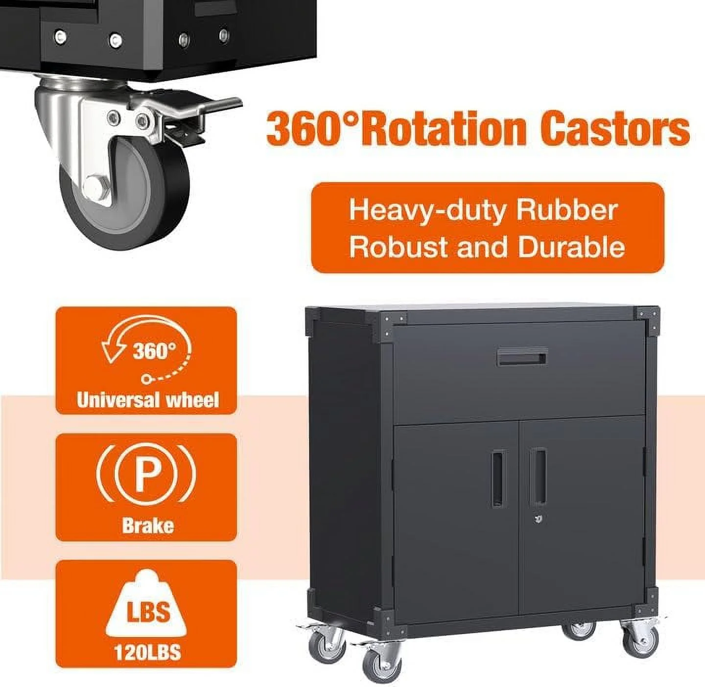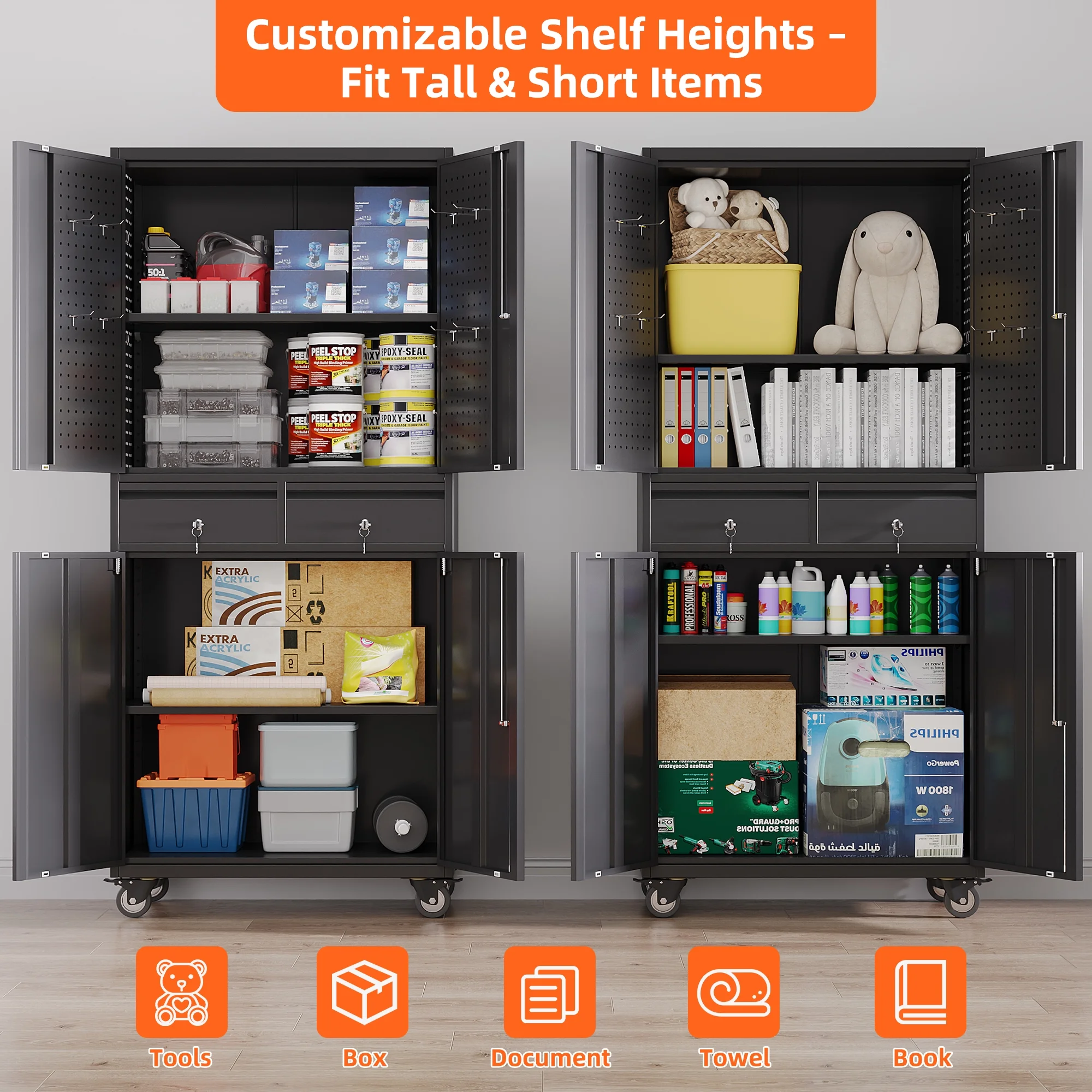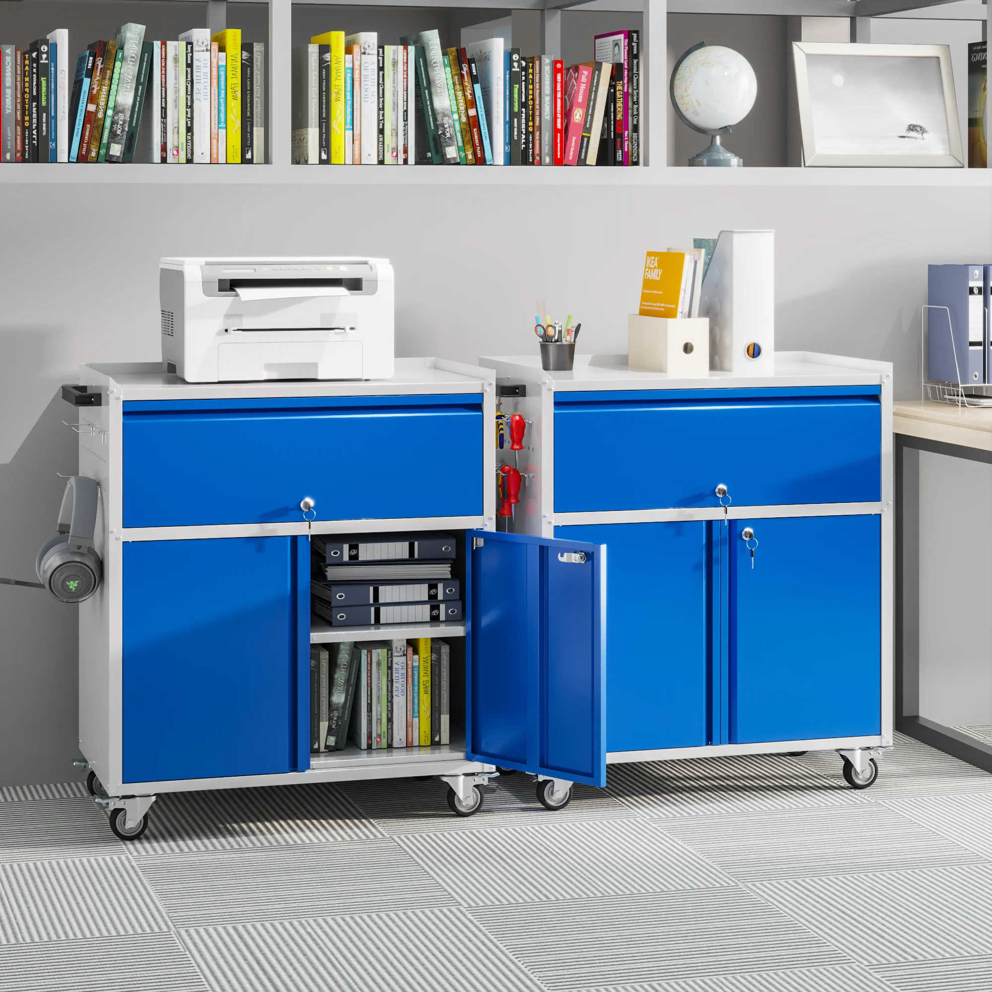 - ��Swivel Wheels with Lock��Metal storage cabinet with wheels has 4 lockable wheels,you can move them around as needed and the casters and wheels work great on all the different surfaces,besides the wheels can be locked and you can fix the cabinet where you want to place.