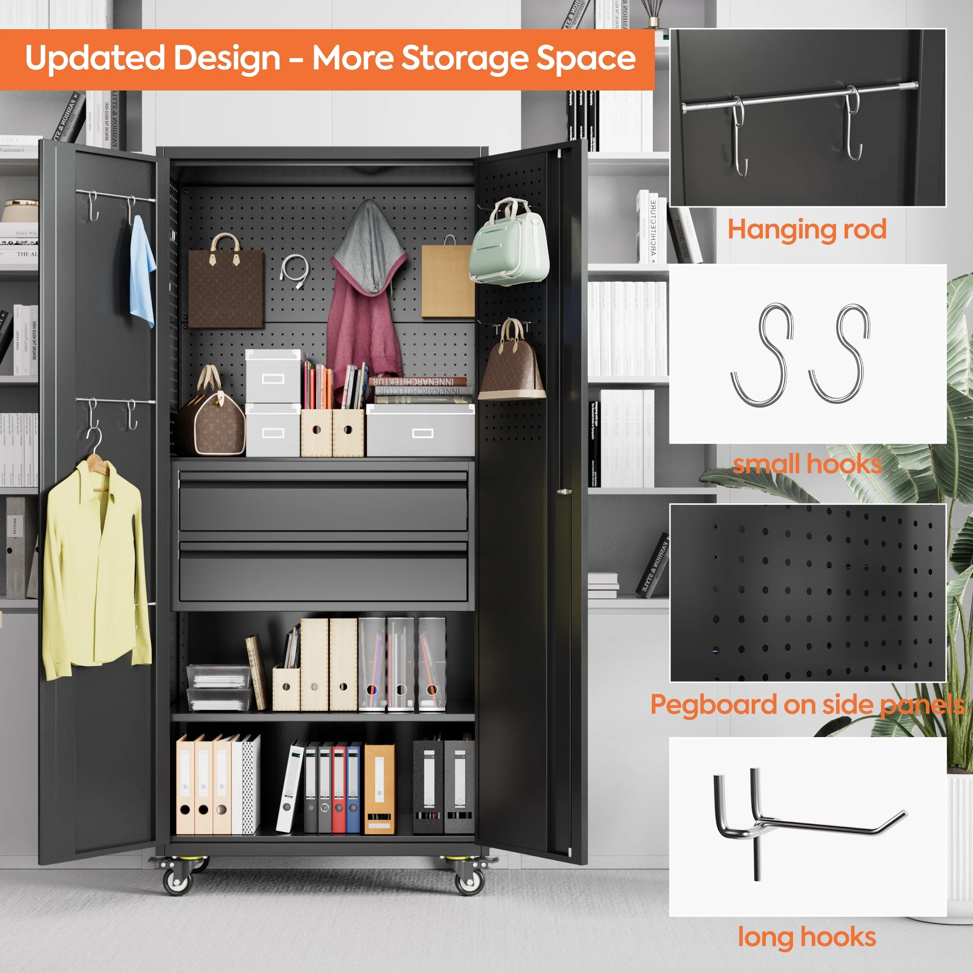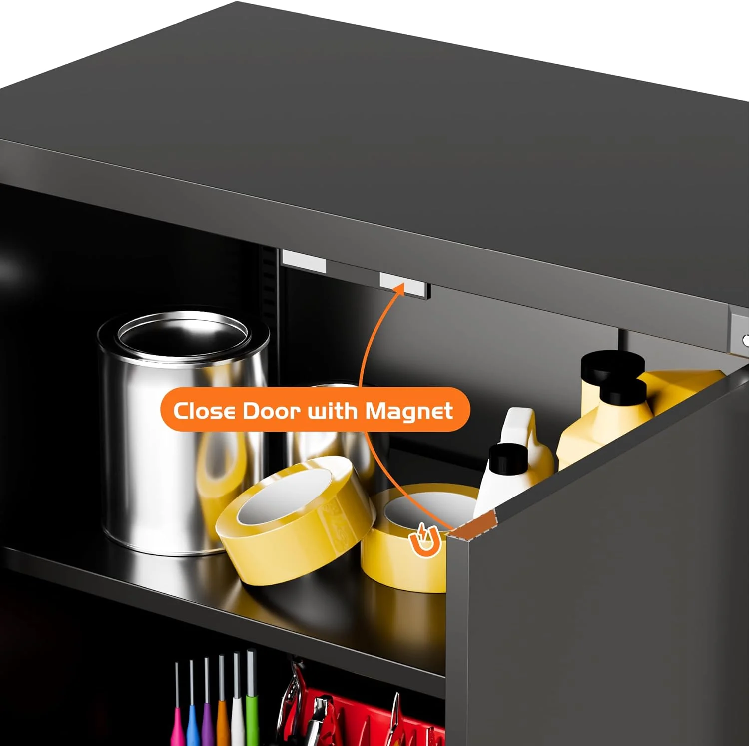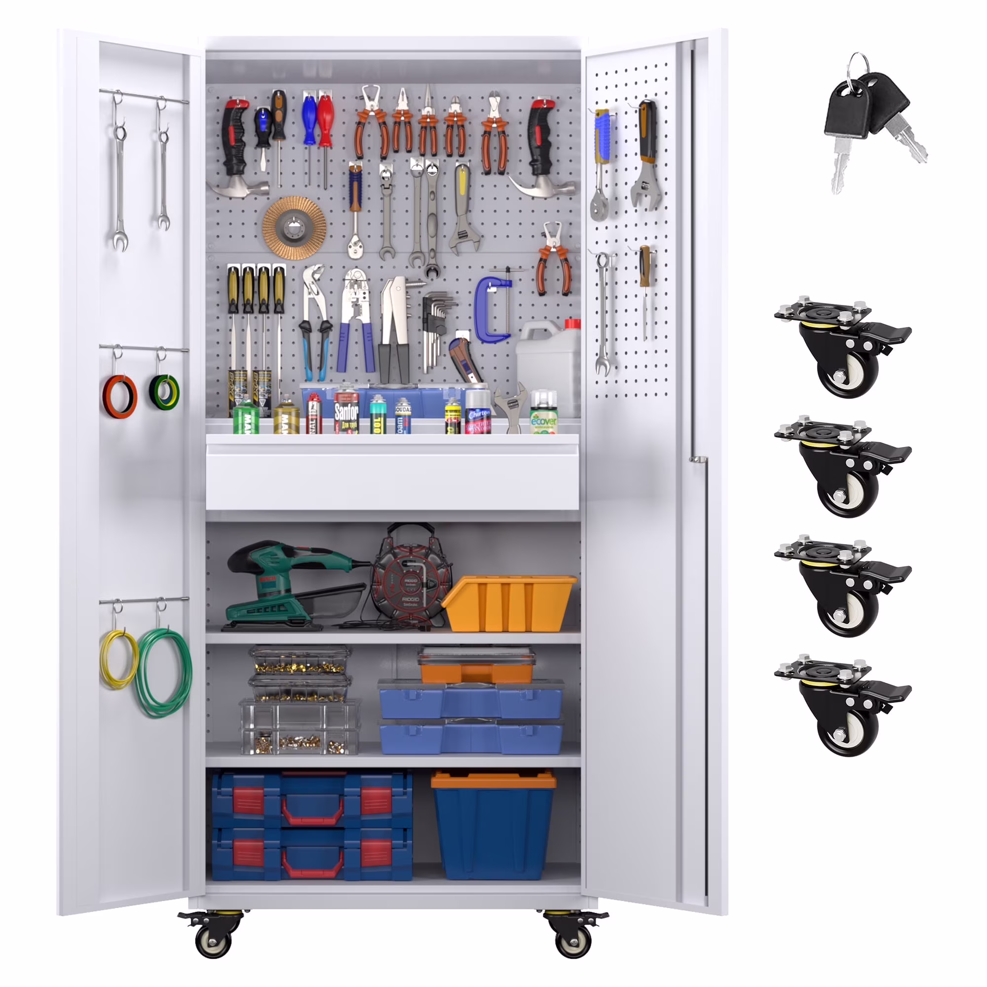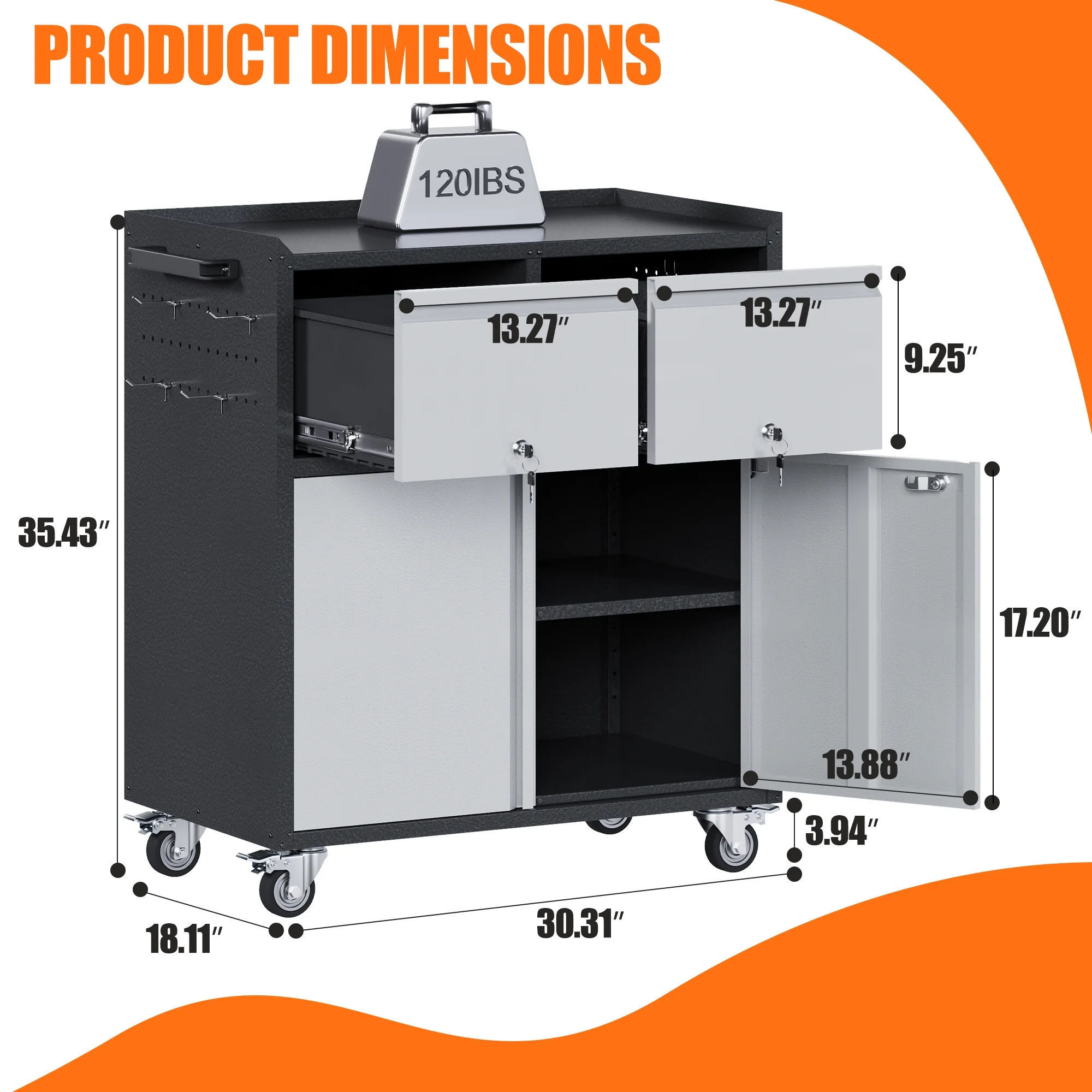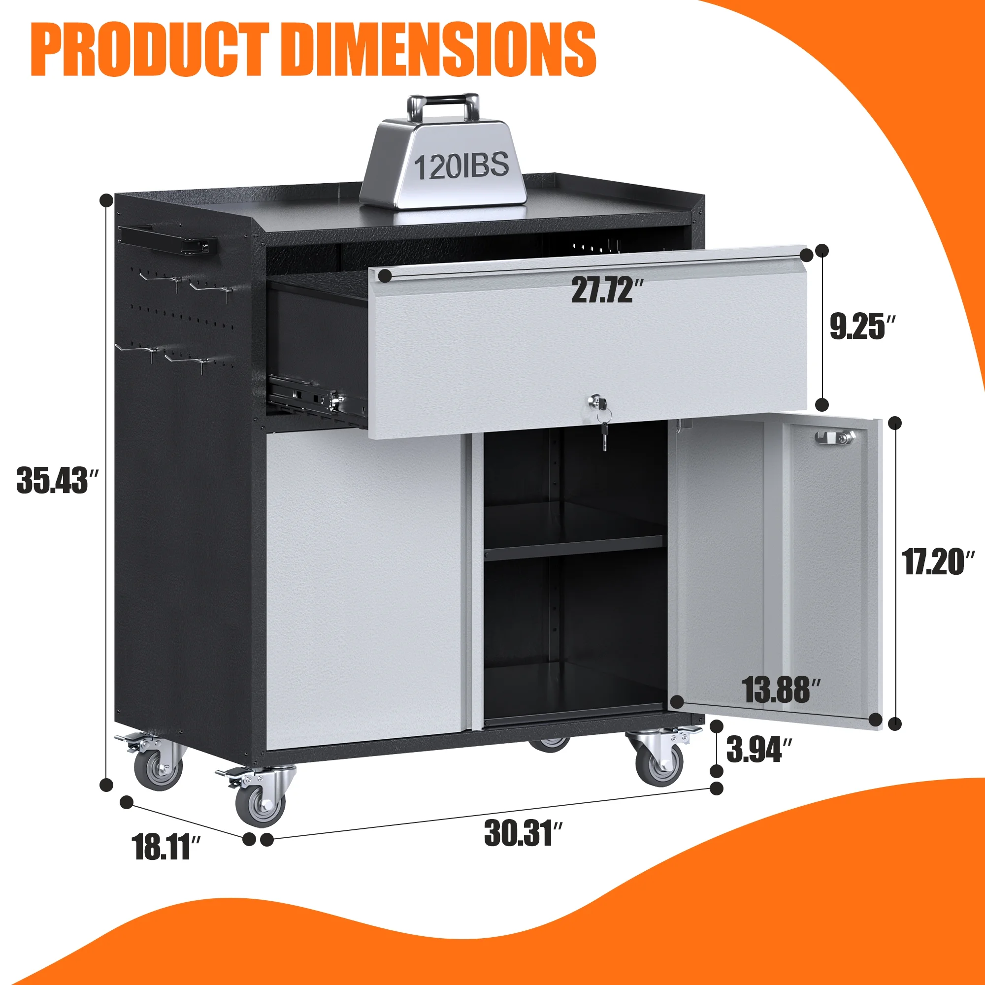 - ��Swivel Wheels with Lock��Metal storage cabinet with wheels has 4 lockable wheels,you can move them around as needed and the casters and wheels work great on all the different surfaces,besides the wheels can be locked and you can fix the cabinet where you want to place.