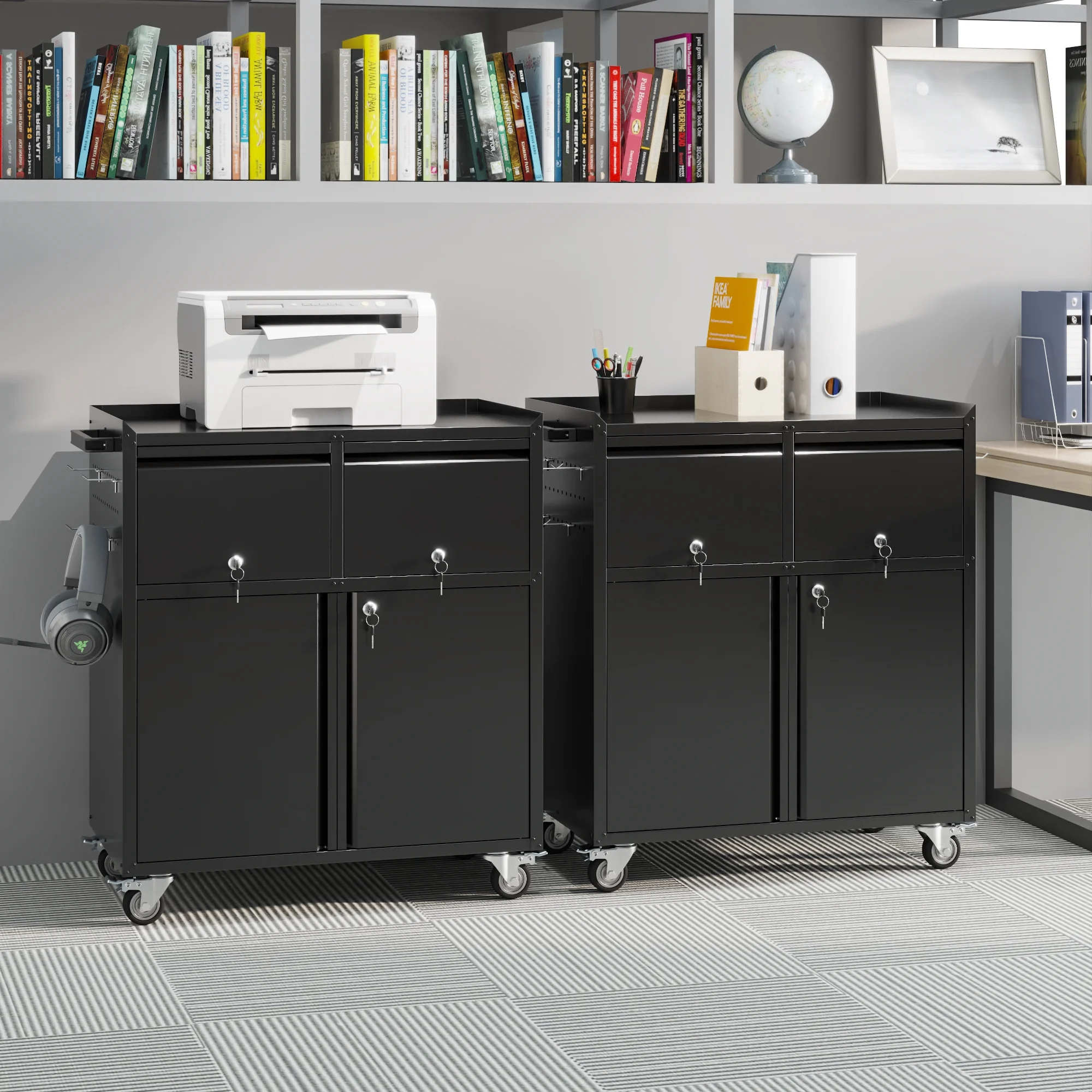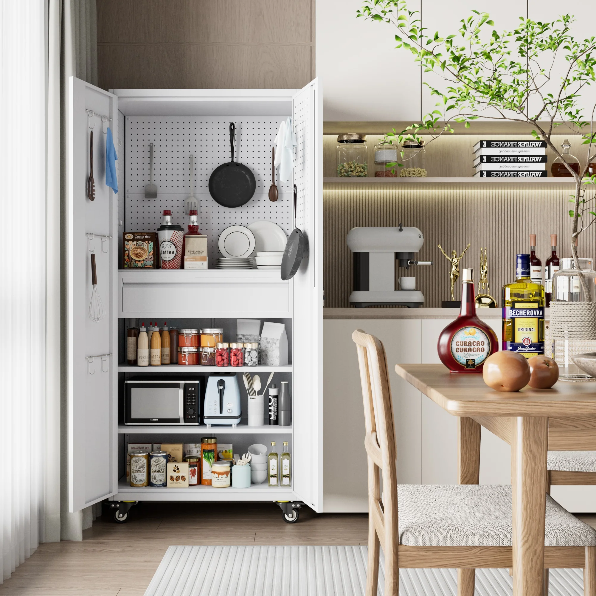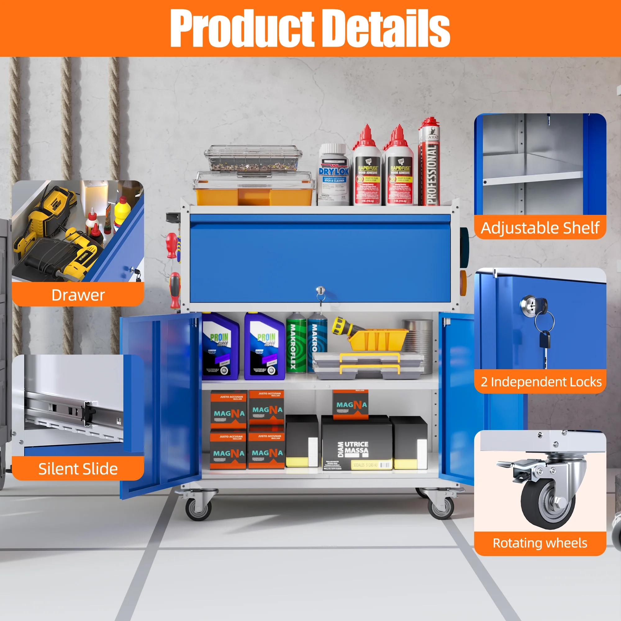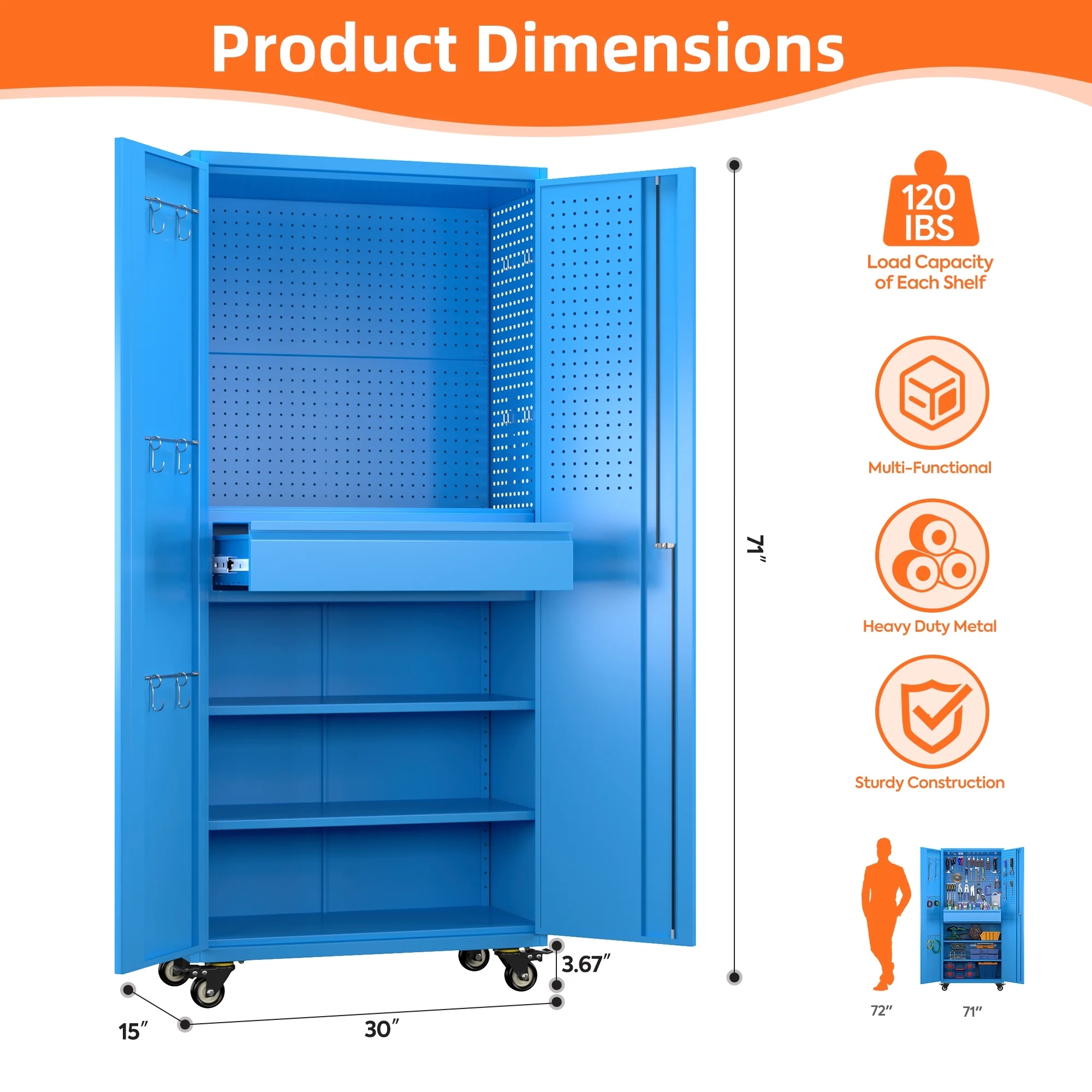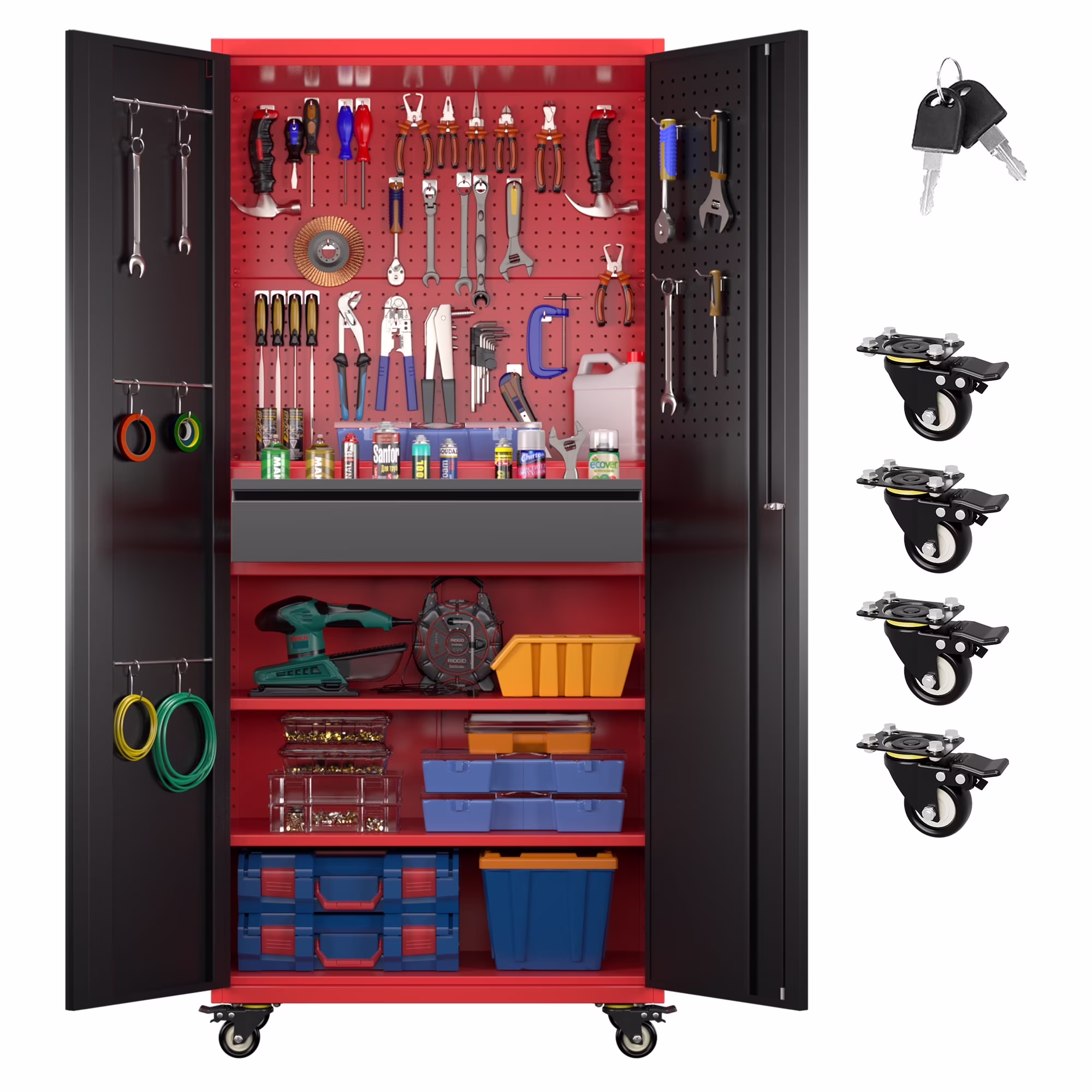 - ��Swivel Wheels with Lock��Metal storage cabinet with wheels has 4 lockable wheels,you can move them around as needed and the casters and wheels work great on all the different surfaces,besides the wheels can be locked and you can fix the cabinet where you want to place.