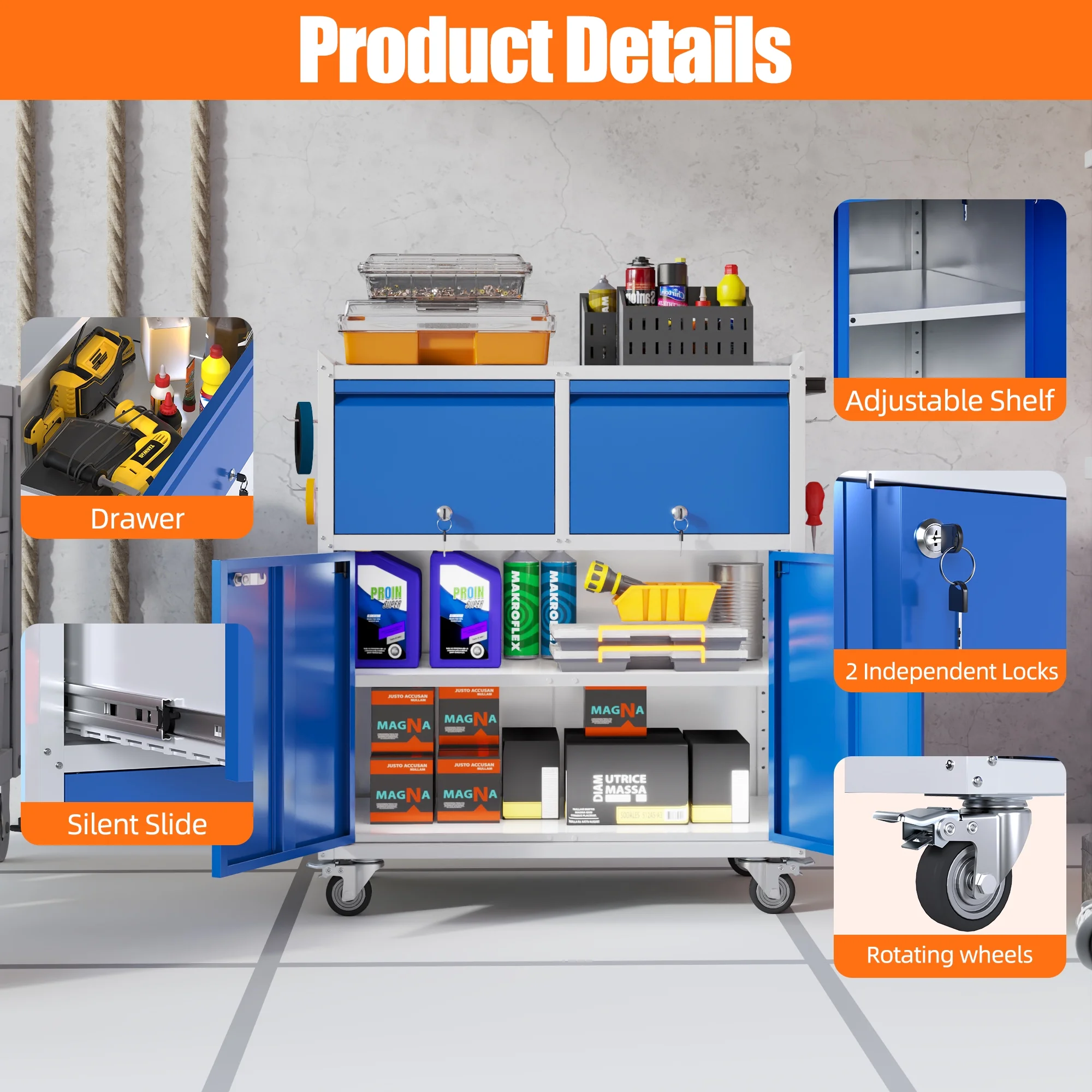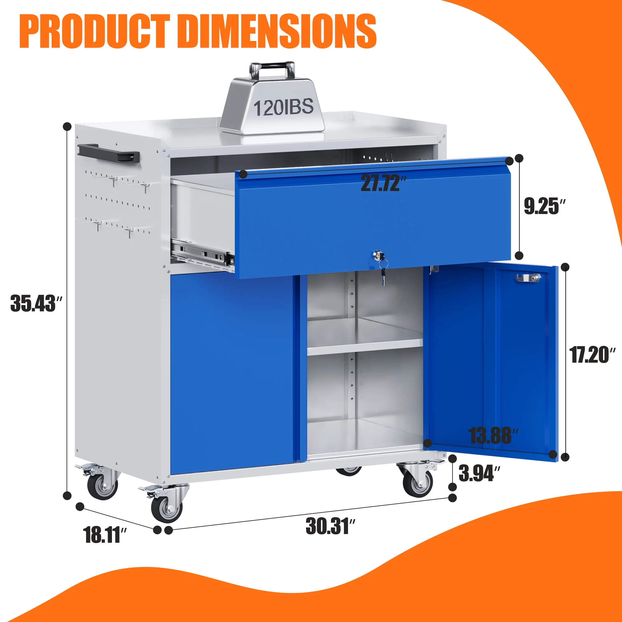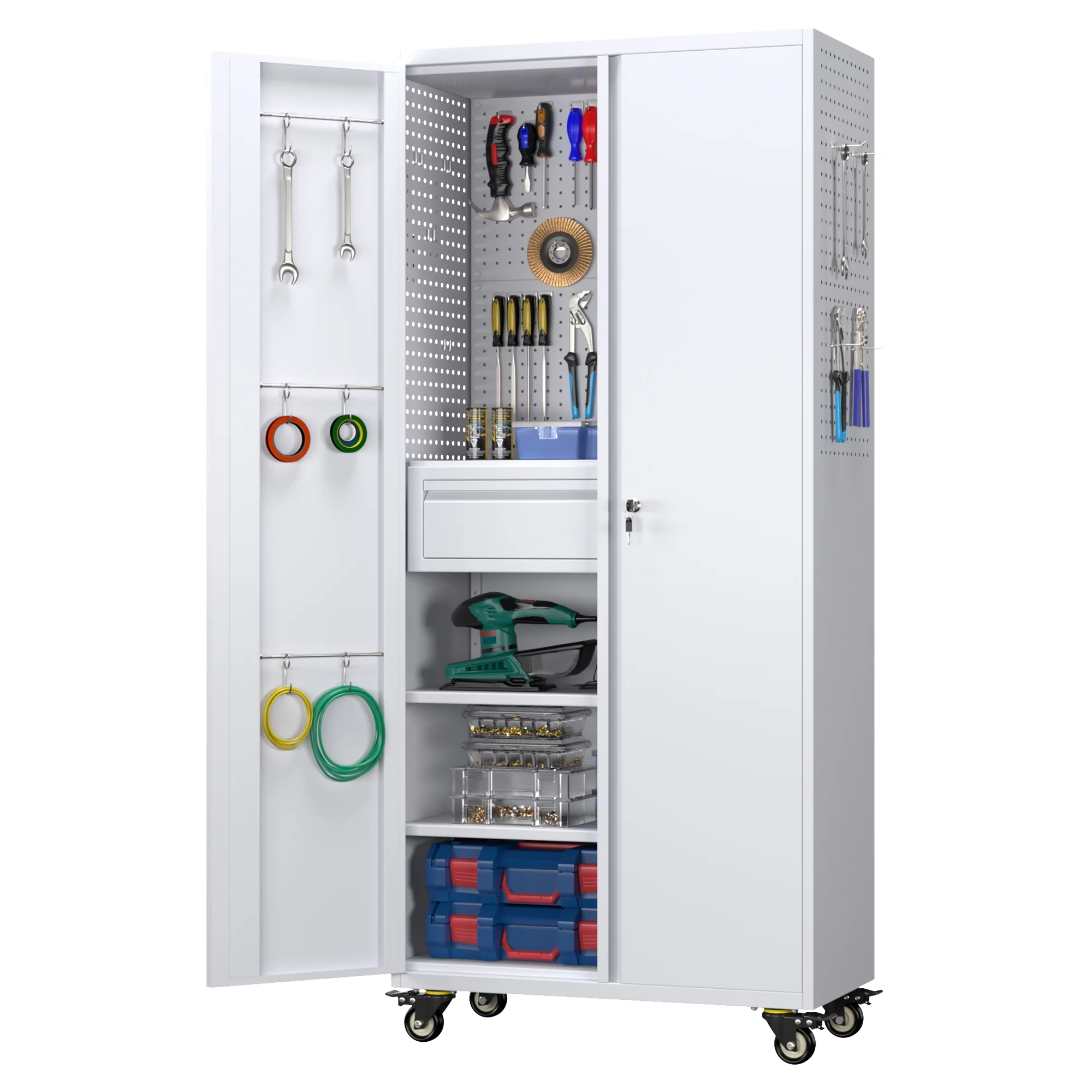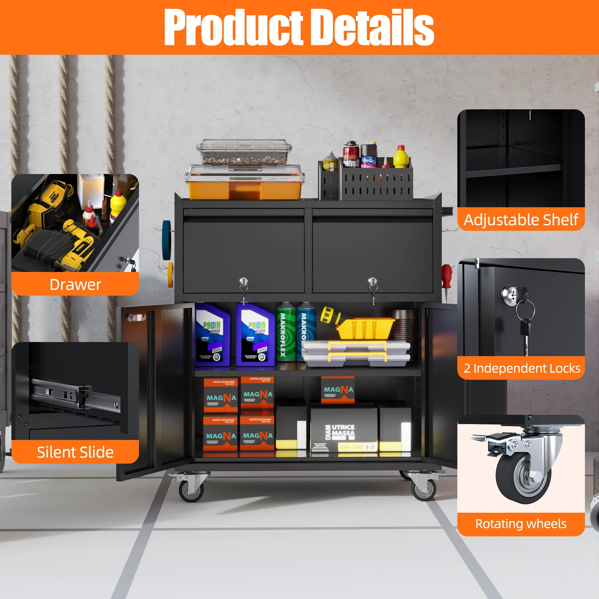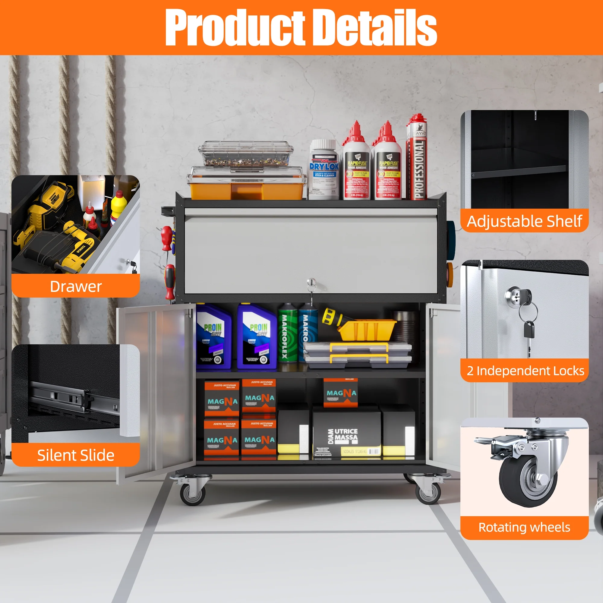 - ��Swivel Wheels with Lock��Metal storage cabinet with wheels has 4 lockable wheels,you can move them around as needed and the casters and wheels work great on all the different surfaces,besides the wheels can be locked and you can fix the cabinet where you want to place.