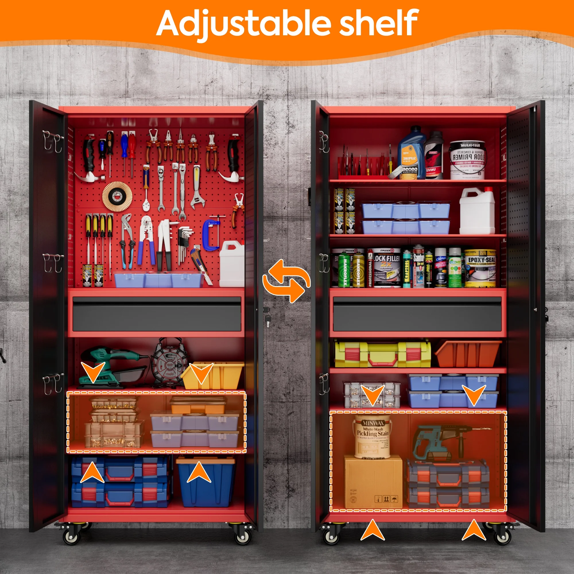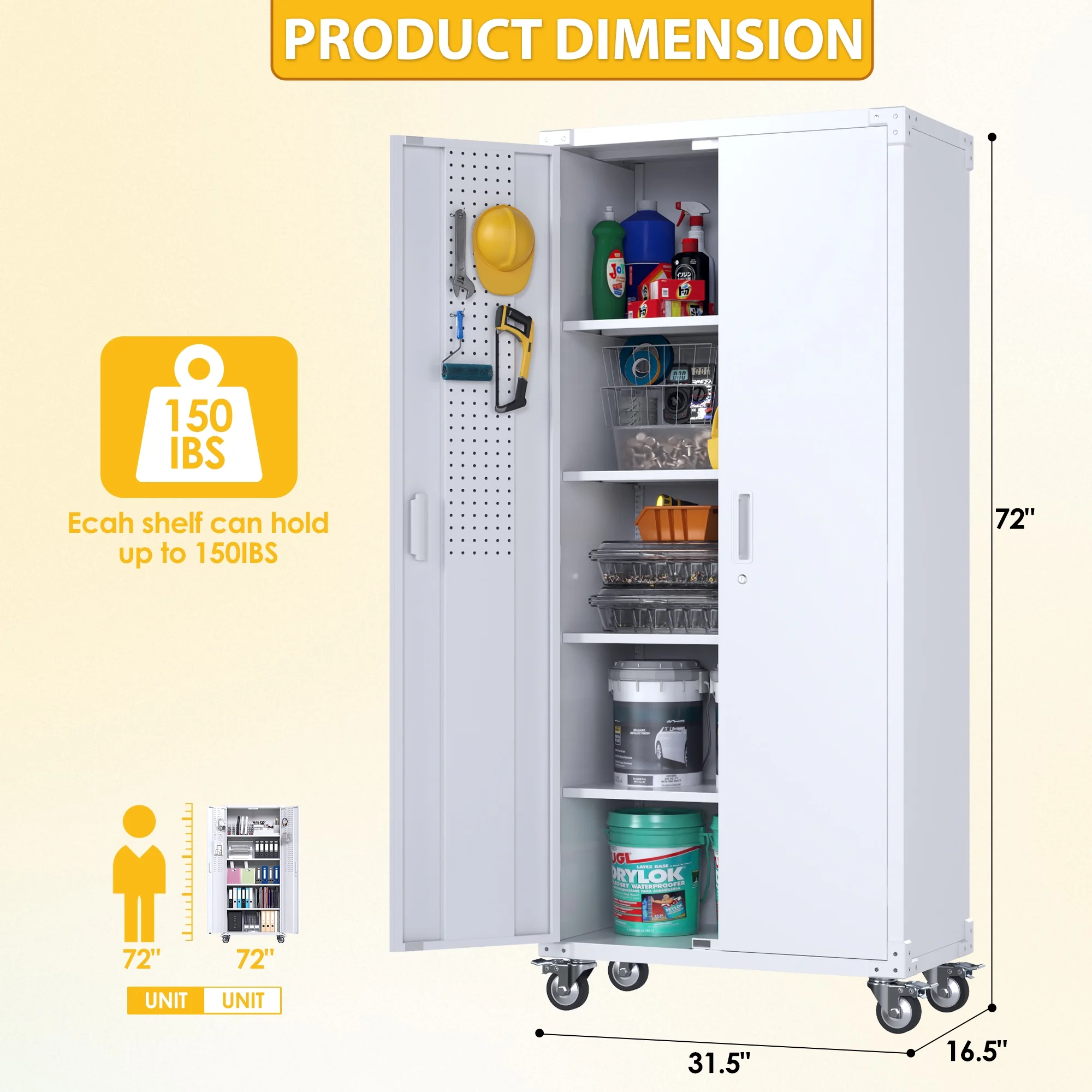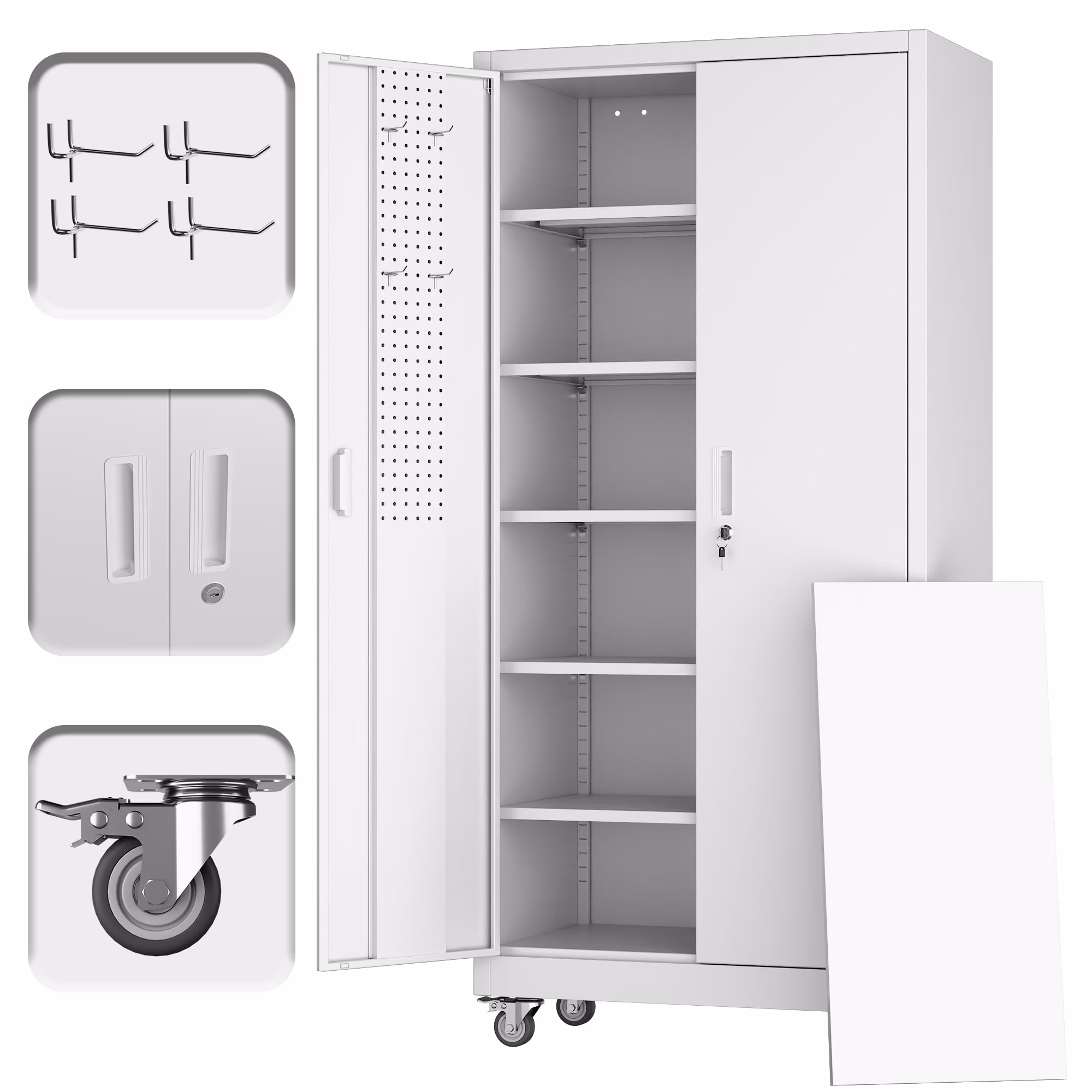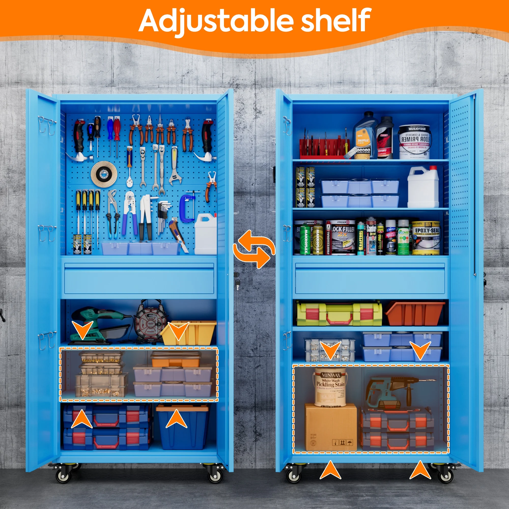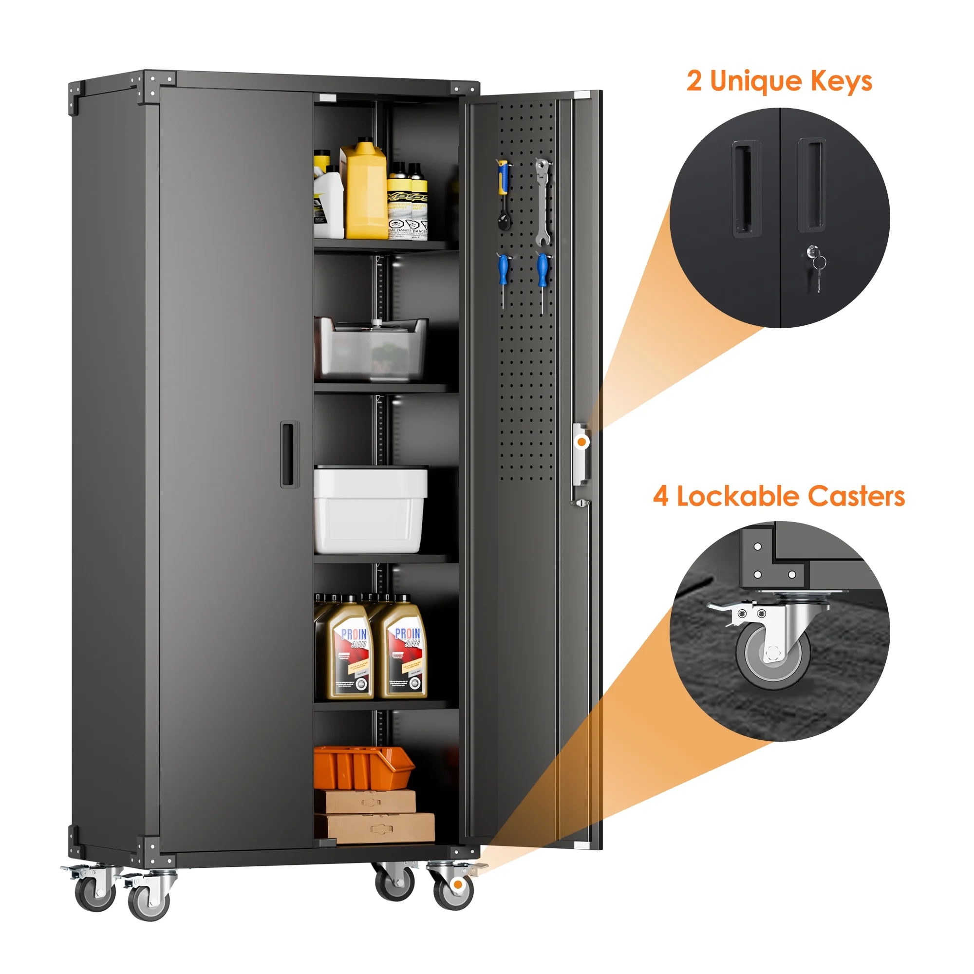 - ��Adjustable Shelves&Large Weight Capacity��The metal storage cabinet with wheels has 5 adjustable and removable shelves, which can offer you flexible space. Each shelf of the storage cabinet on wheels can hold up to 120lbs. you can add lighting by yourself on top of the cabinet if it was dark where you keep it.