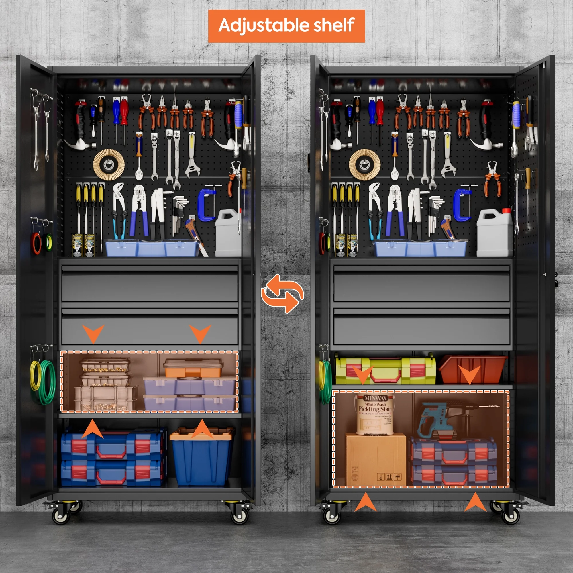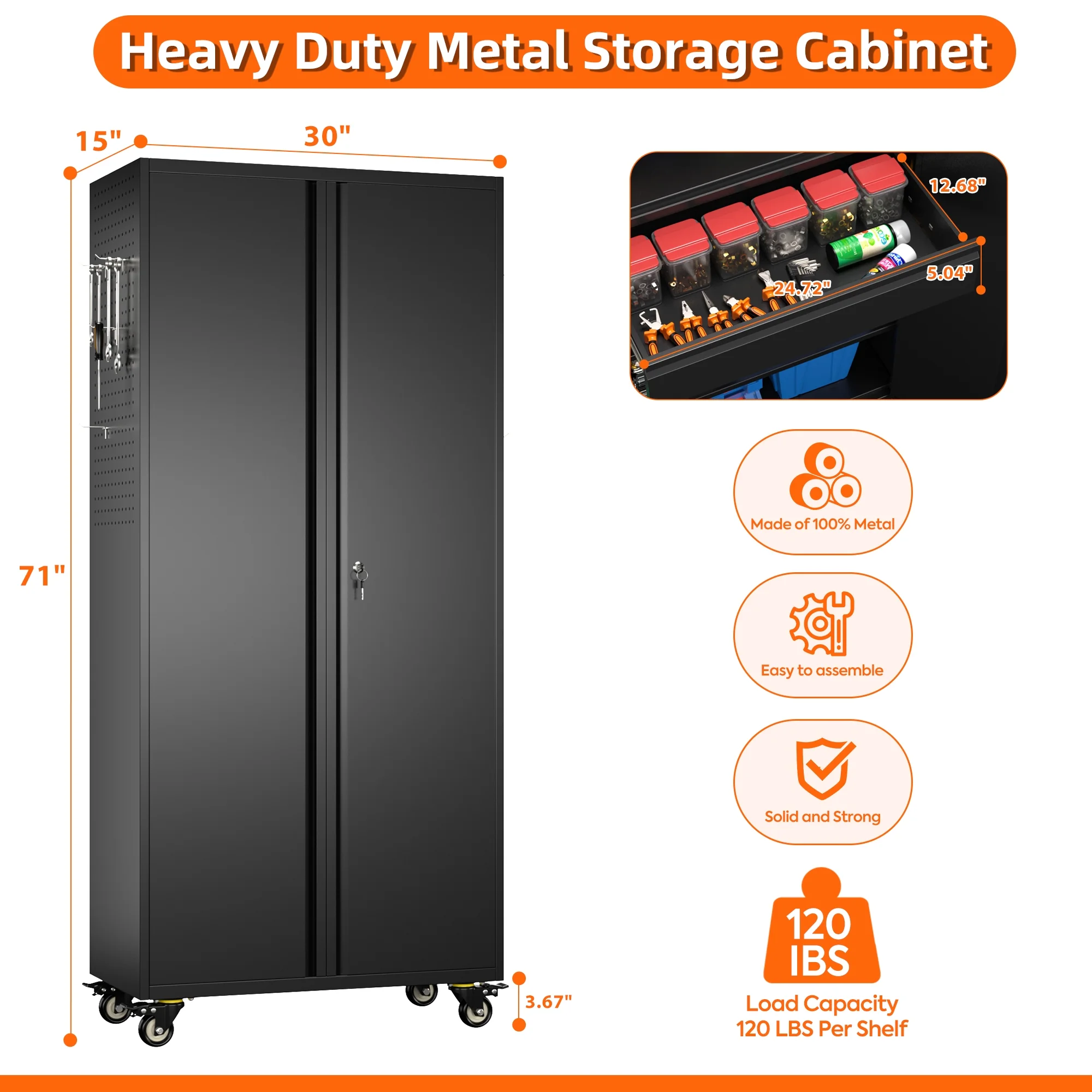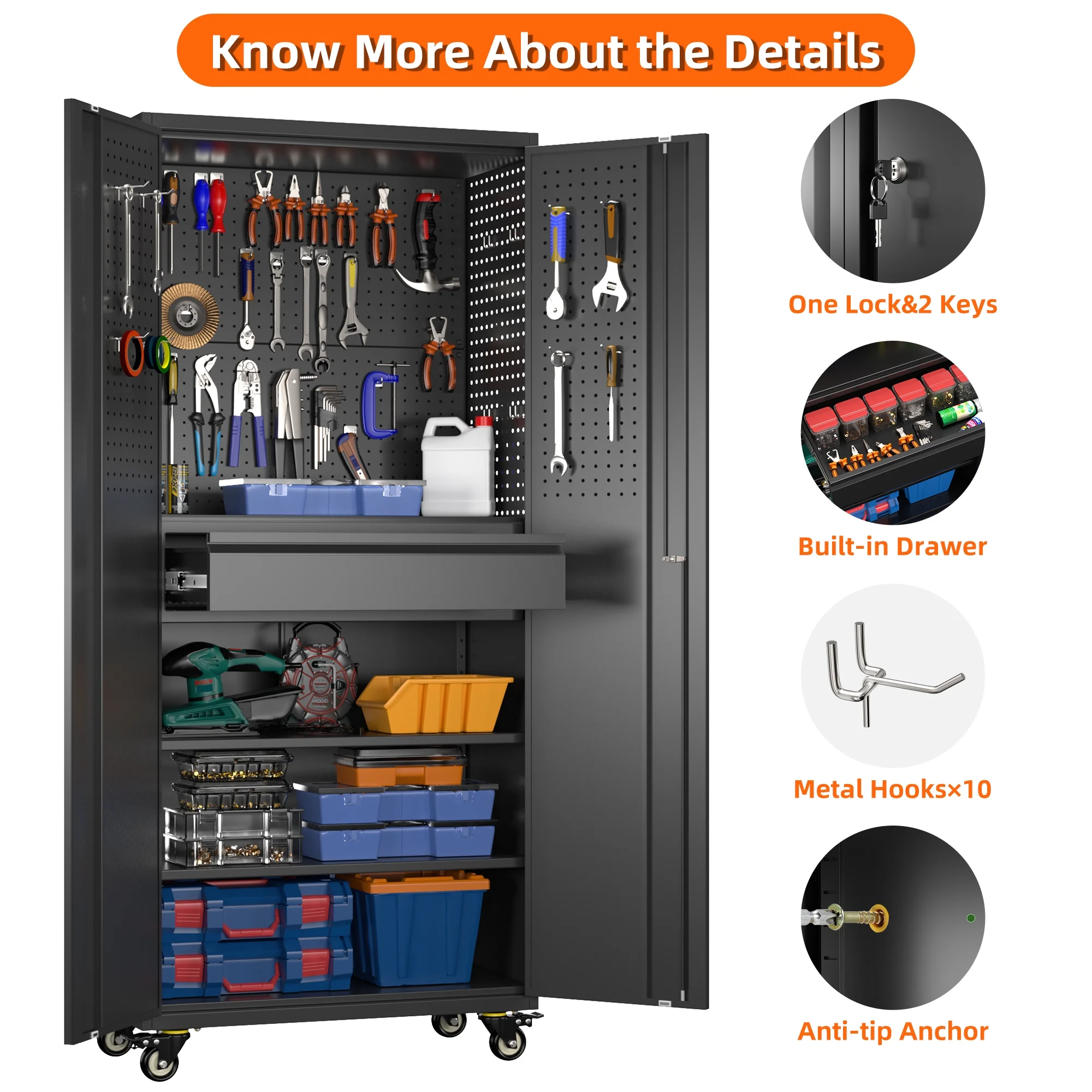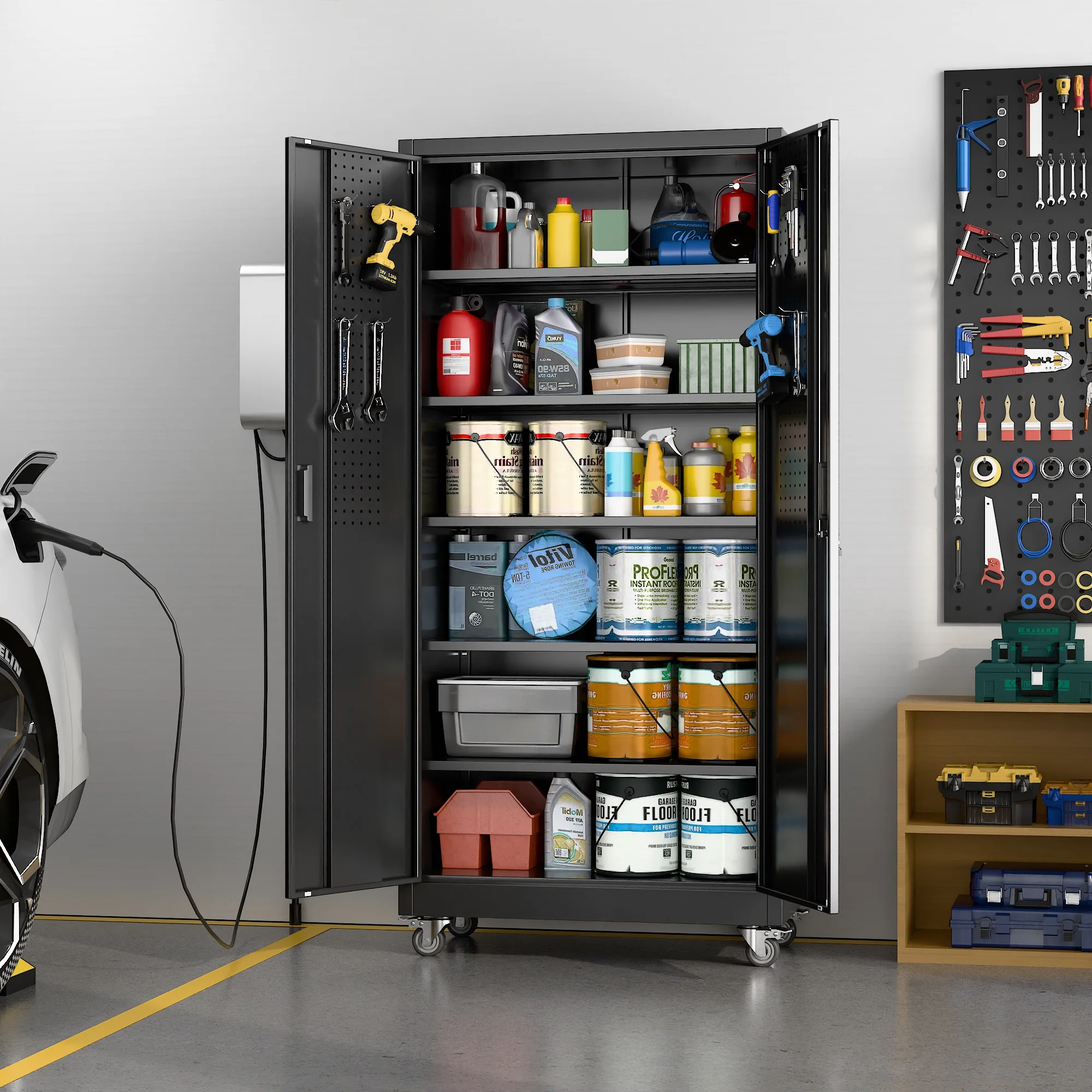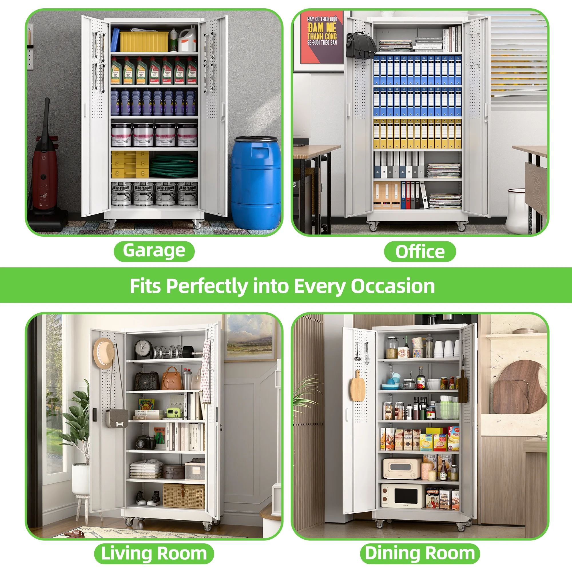 - ��Adjustable Shelves&Large Weight Capacity��The metal storage cabinet with wheels has 5 adjustable and removable shelves, which can offer you flexible space. Each shelf of the storage cabinet on wheels can hold up to 120lbs. you can add lighting by yourself on top of the cabinet if it was dark where you keep it.