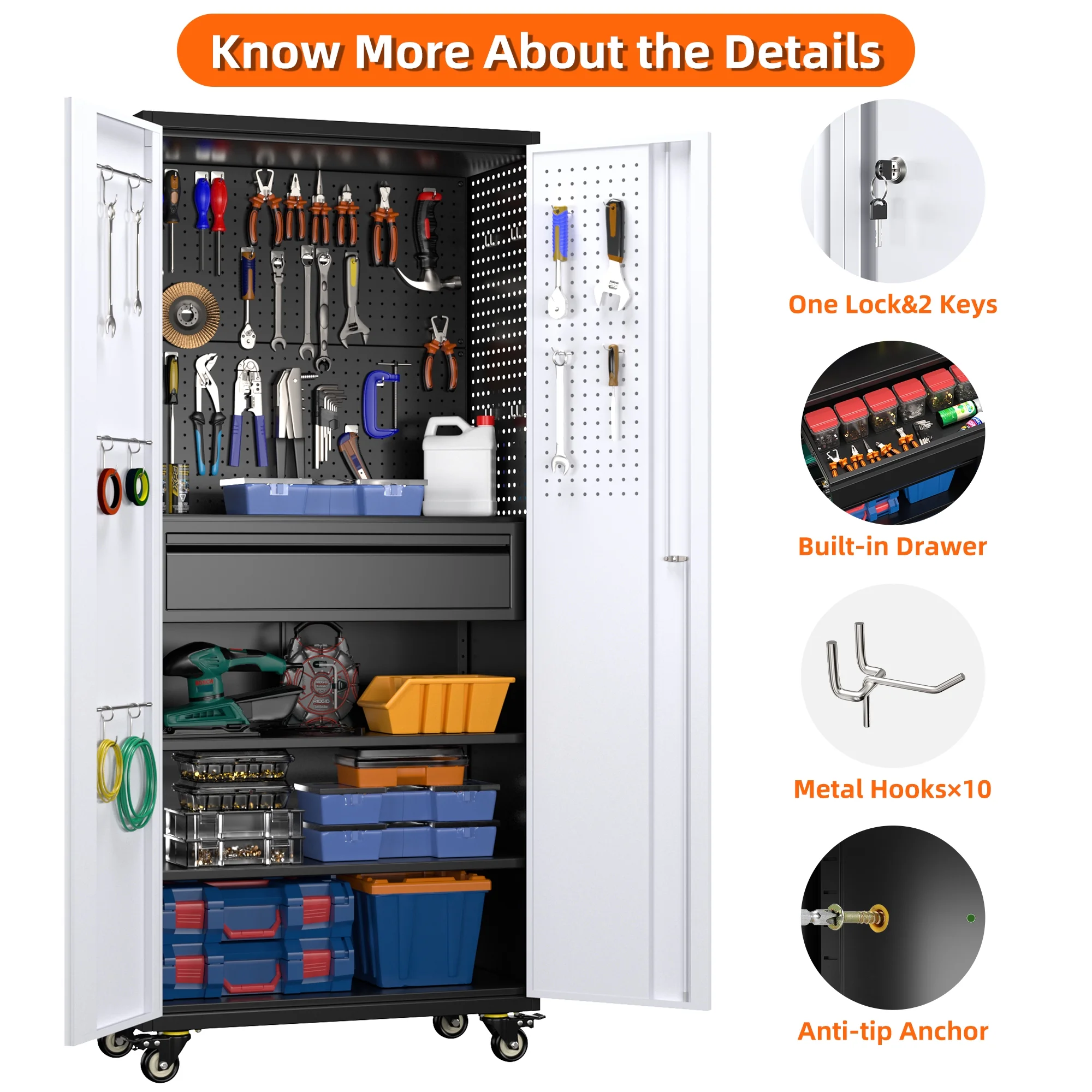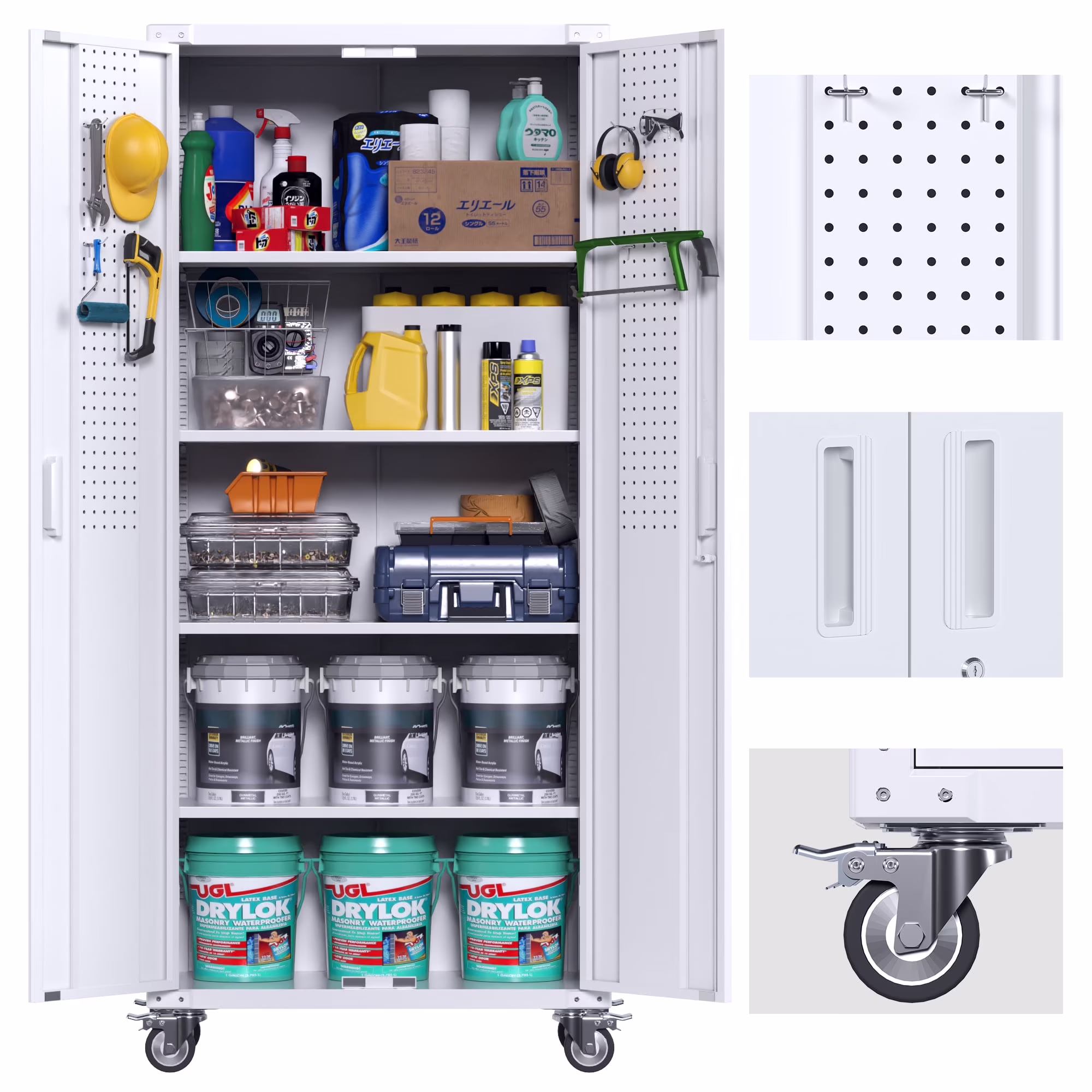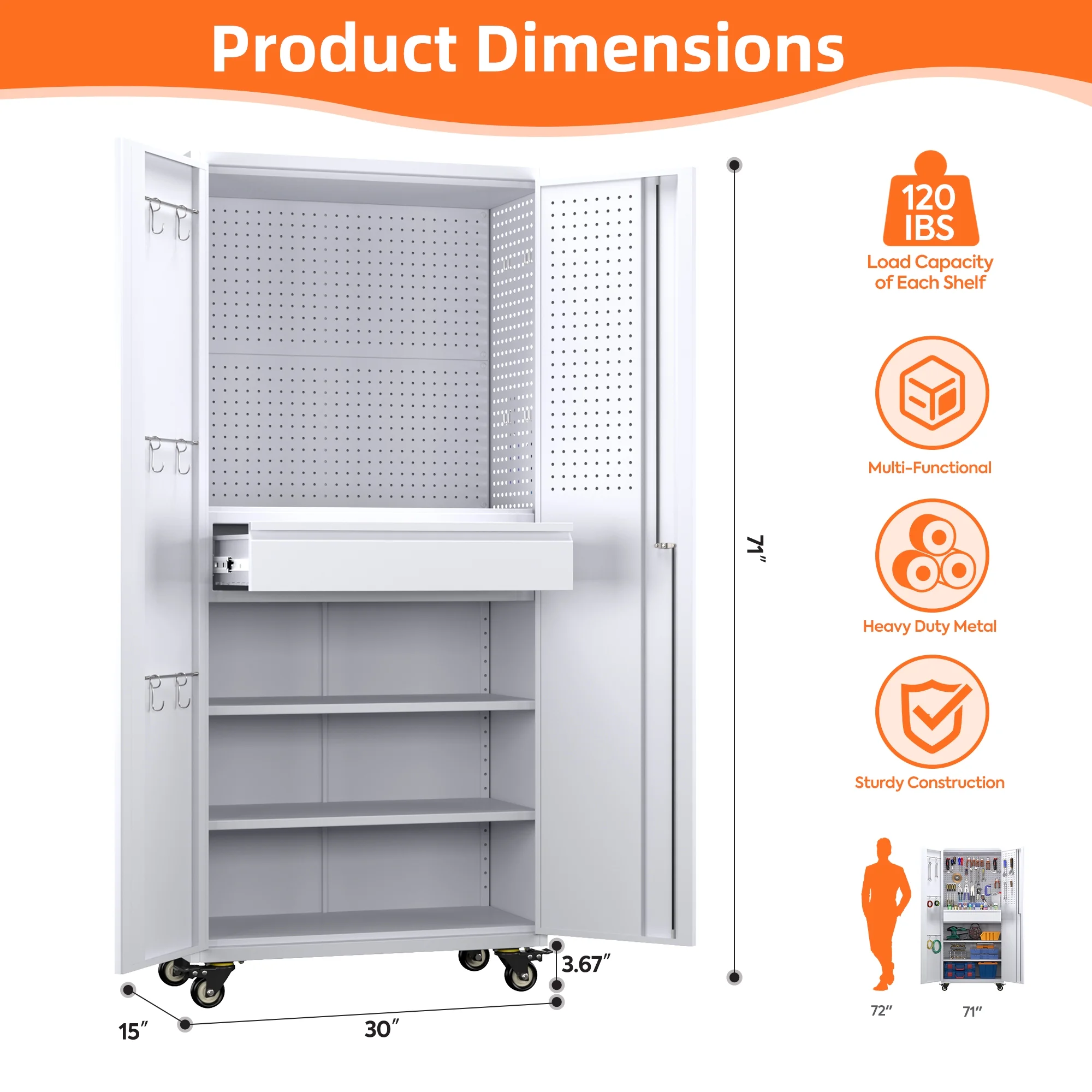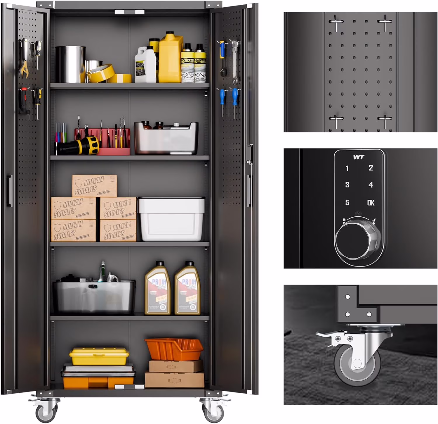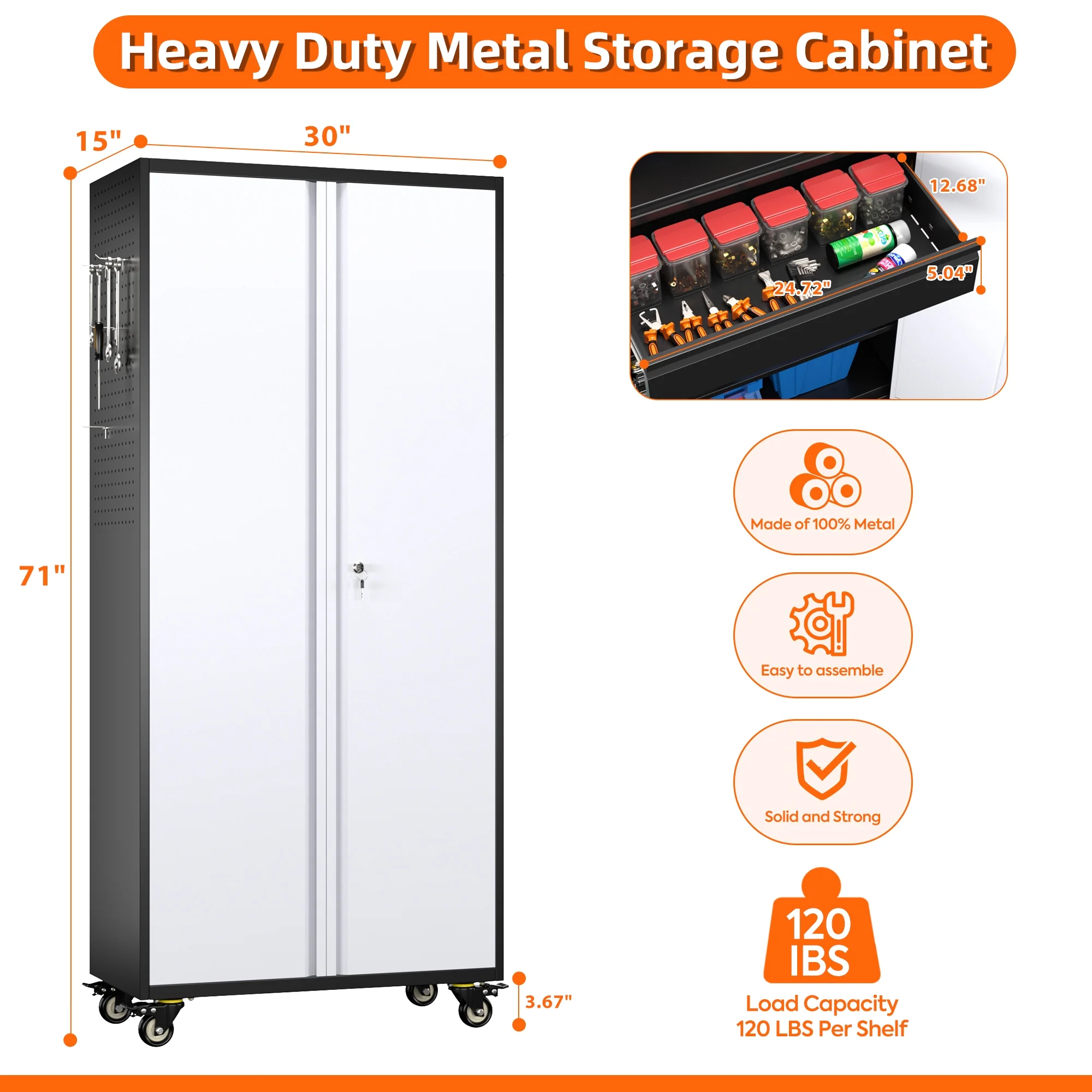 - ��Adjustable Shelves&Large Weight Capacity��The metal storage cabinet with wheels has 5 adjustable and removable shelves, which can offer you flexible space. Each shelf of the storage cabinet on wheels can hold up to 120lbs. you can add lighting by yourself on top of the cabinet if it was dark where you keep it.