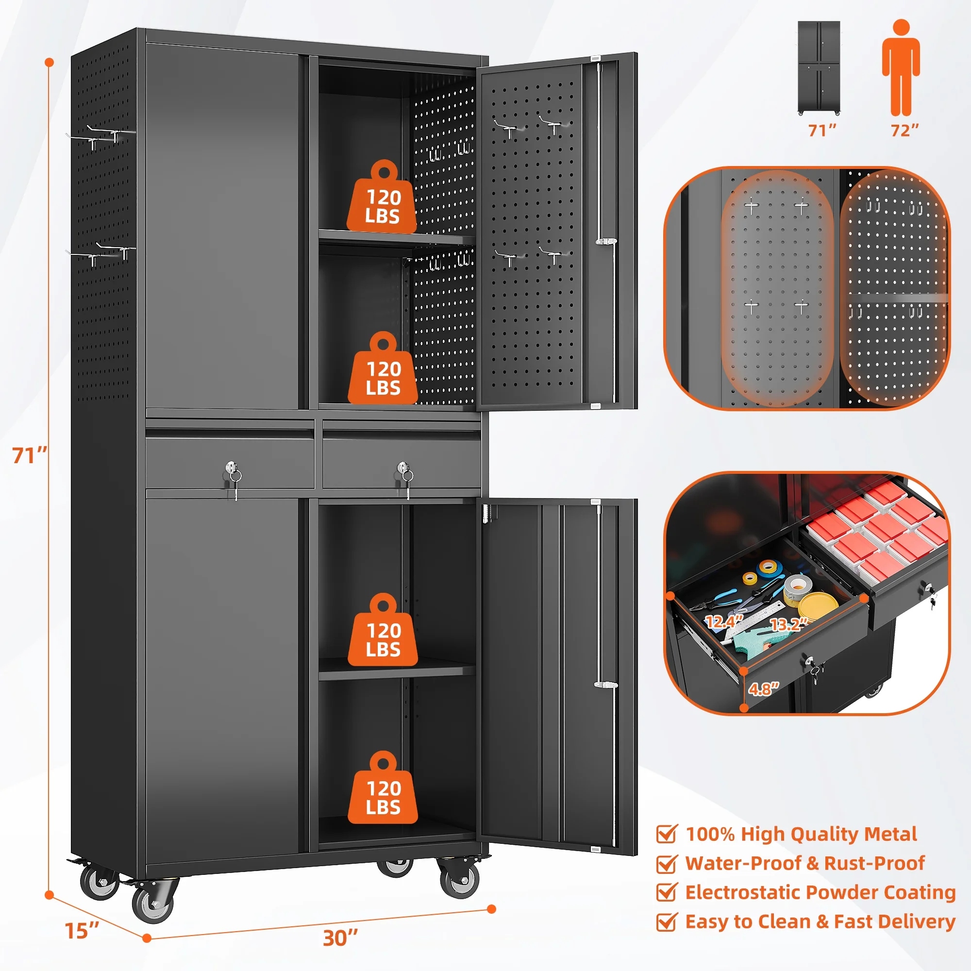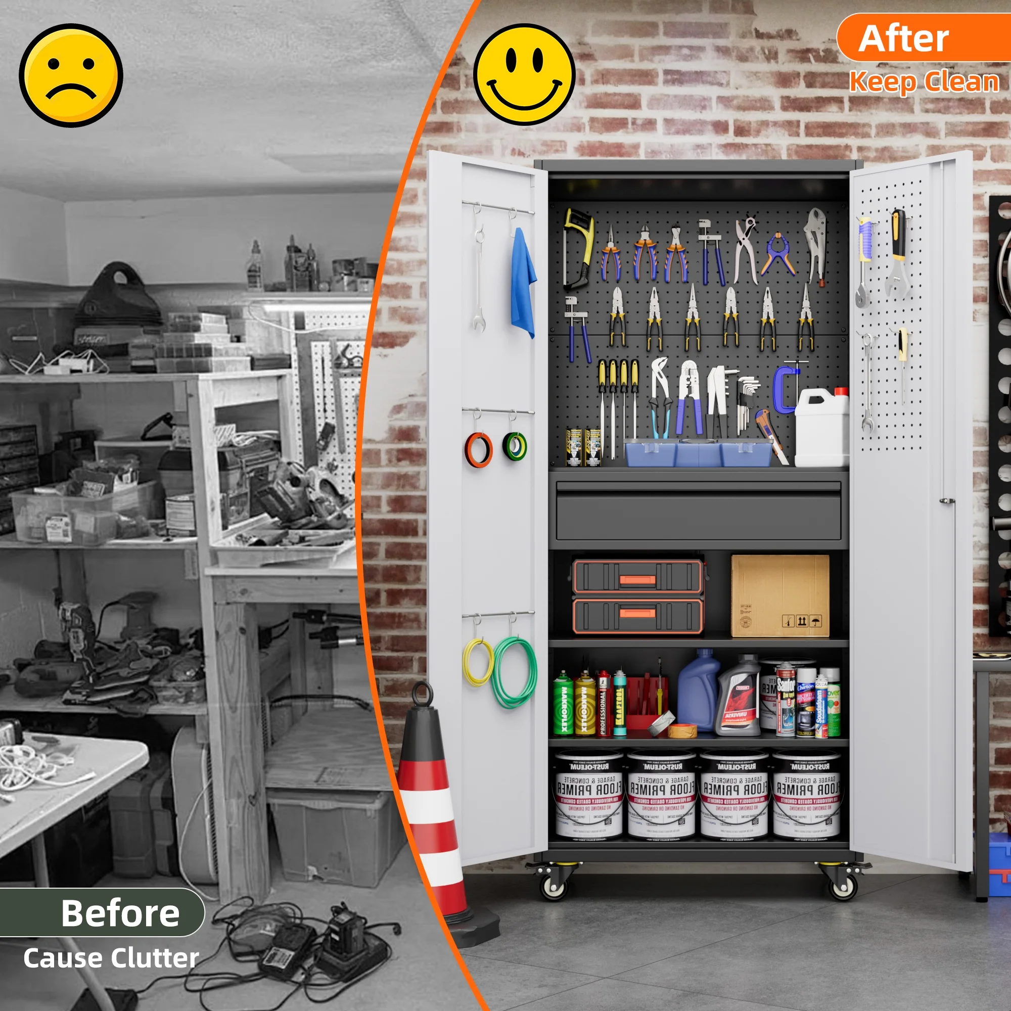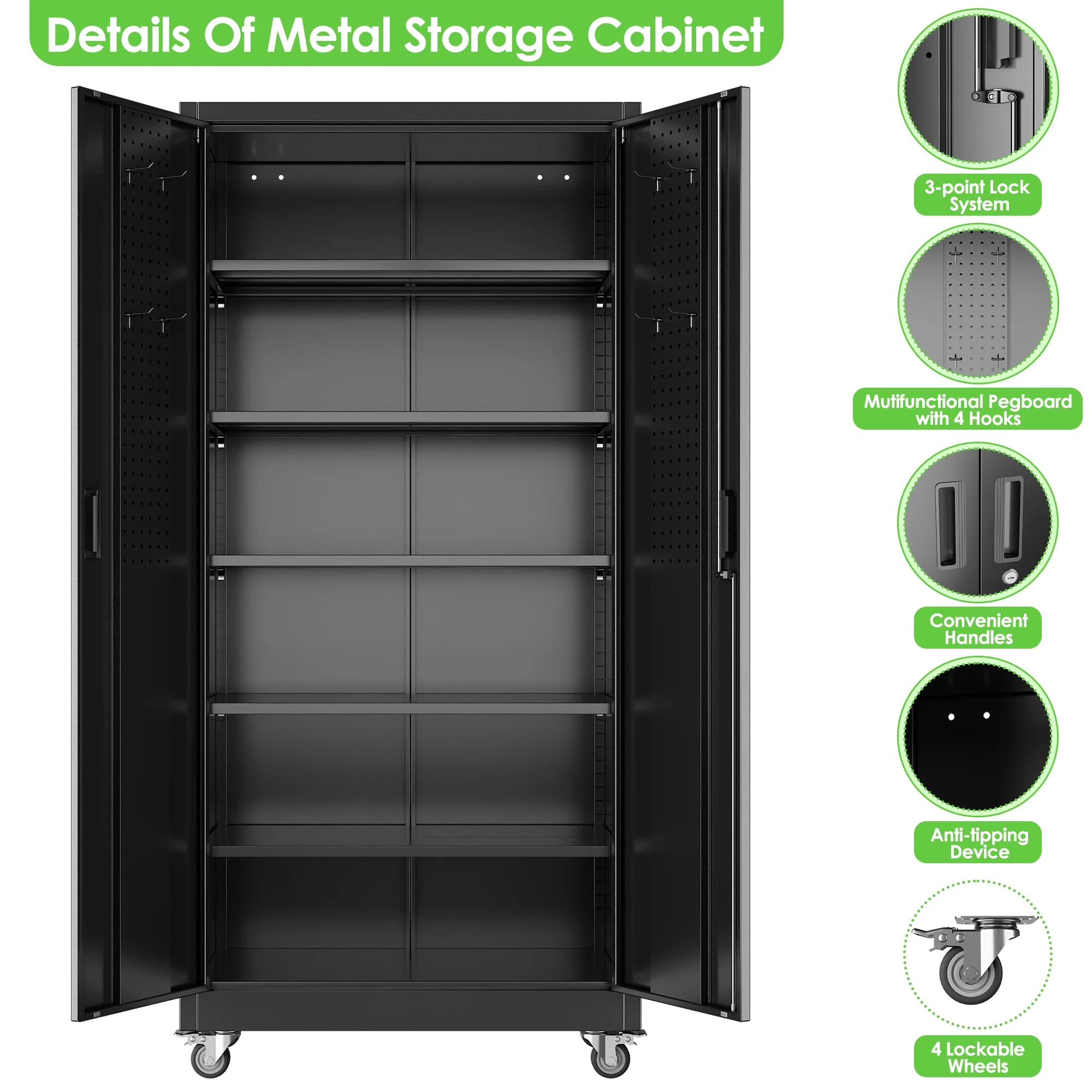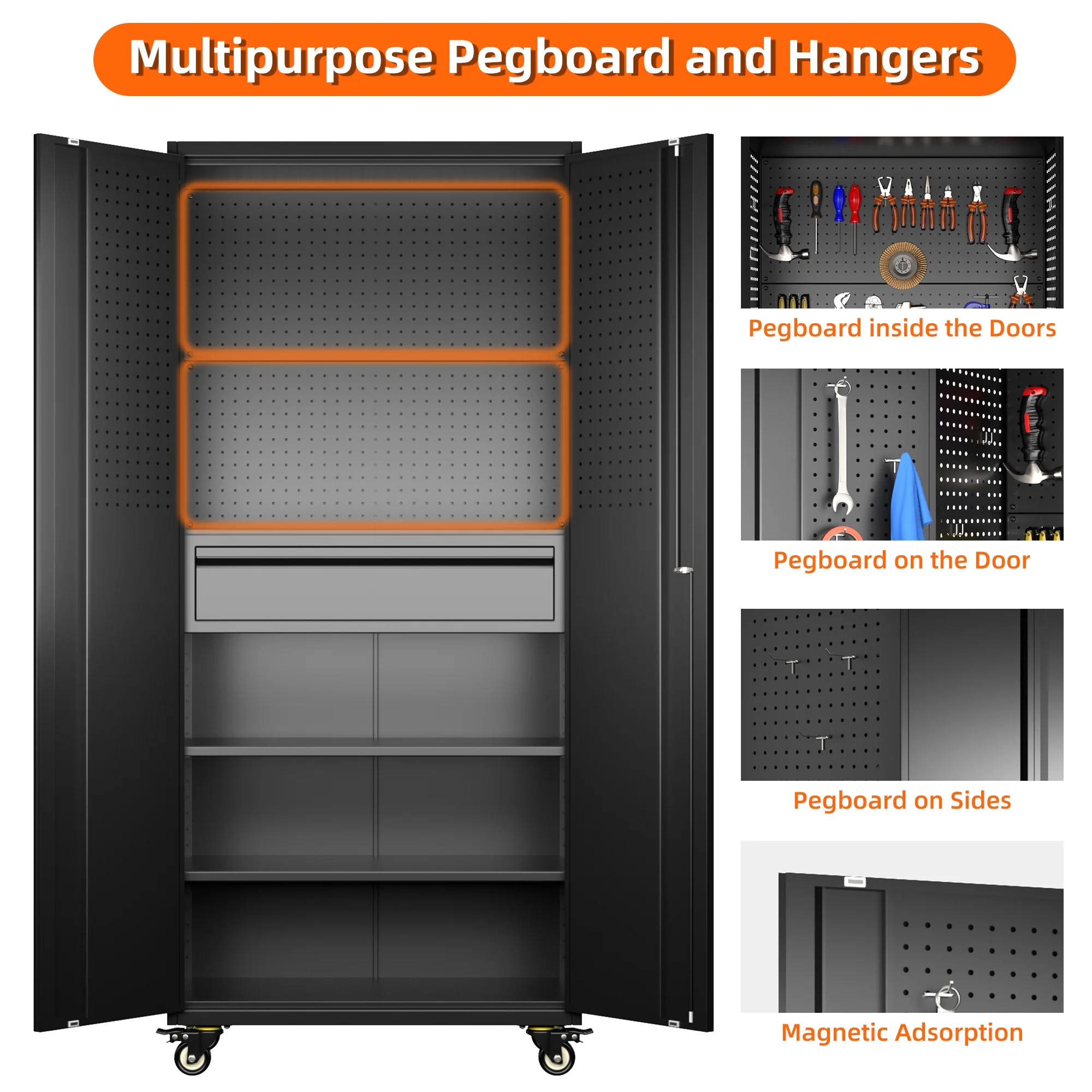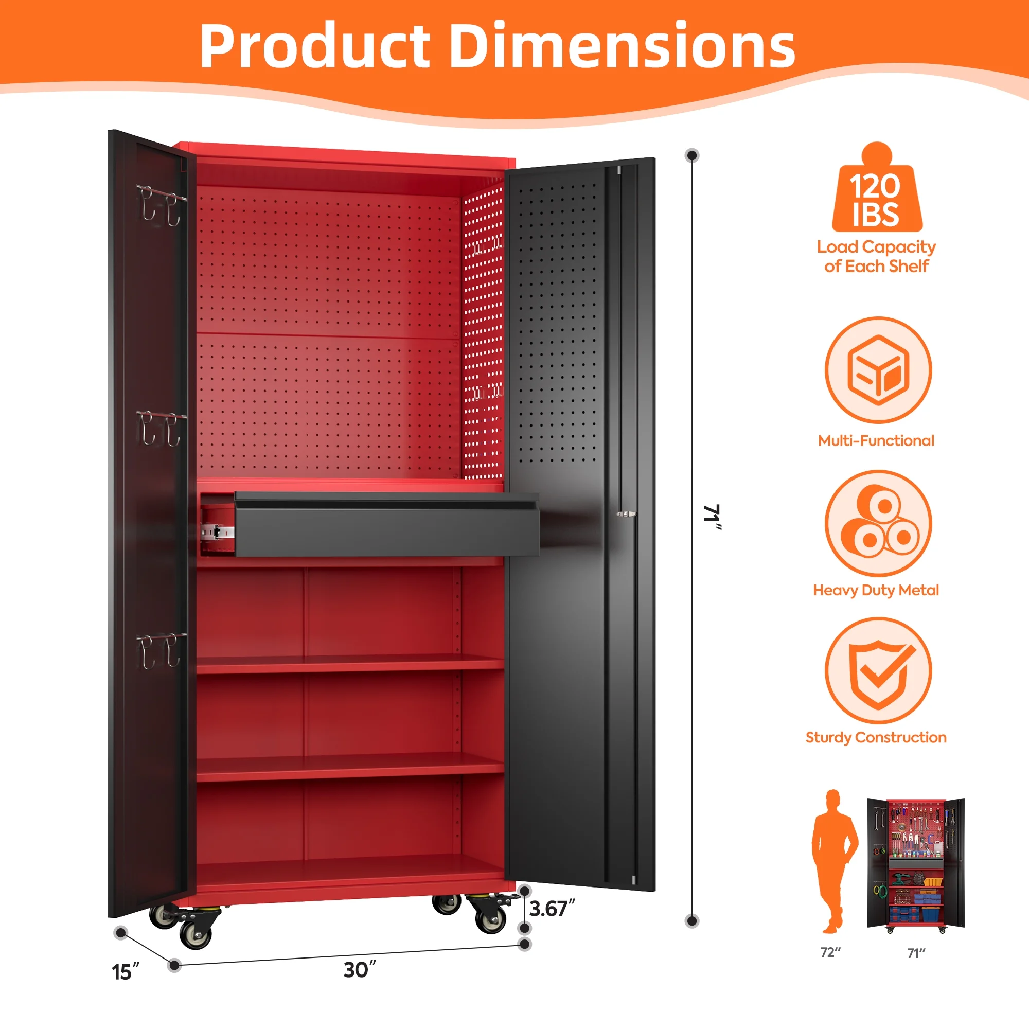 - ��Adjustable Shelves&Large Weight Capacity��The metal storage cabinet with wheels has 5 adjustable and removable shelves, which can offer you flexible space. Each shelf of the storage cabinet on wheels can hold up to 120lbs. you can add lighting by yourself on top of the cabinet if it was dark where you keep it.