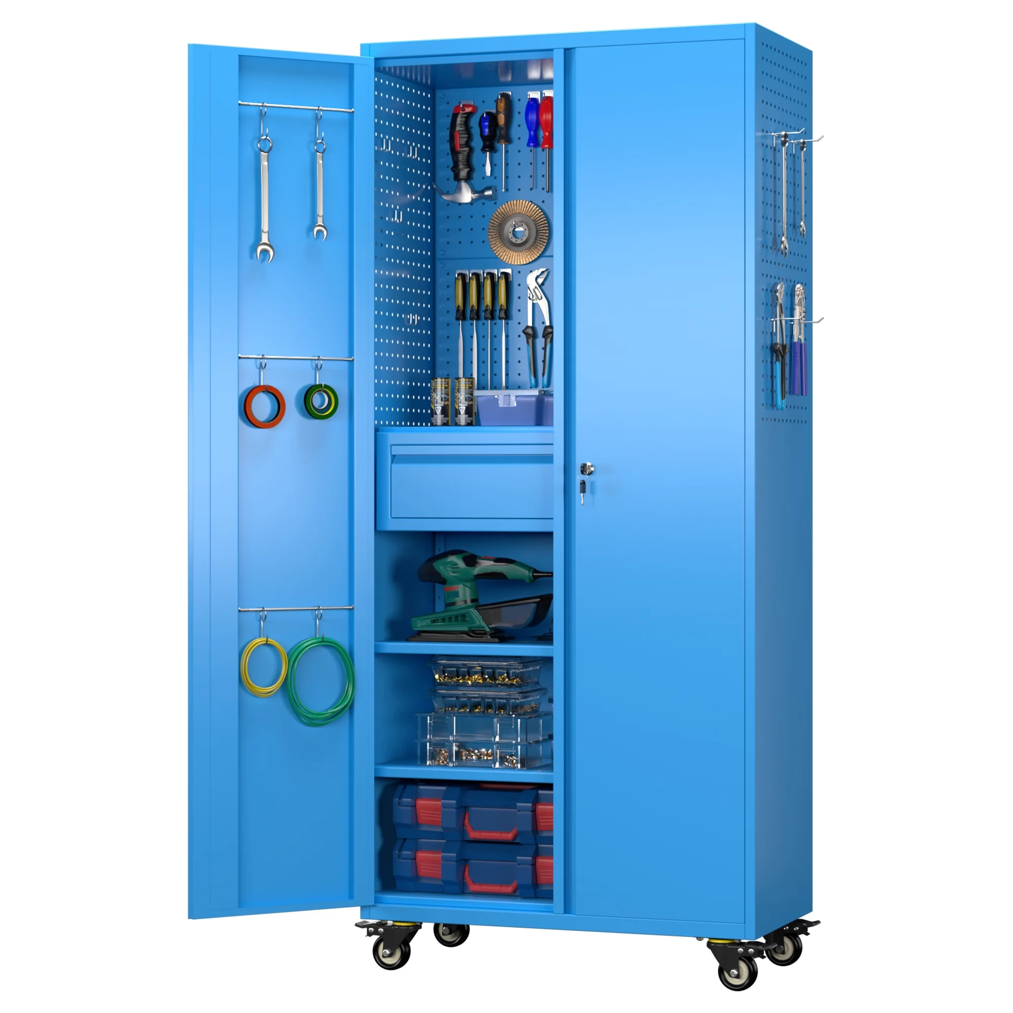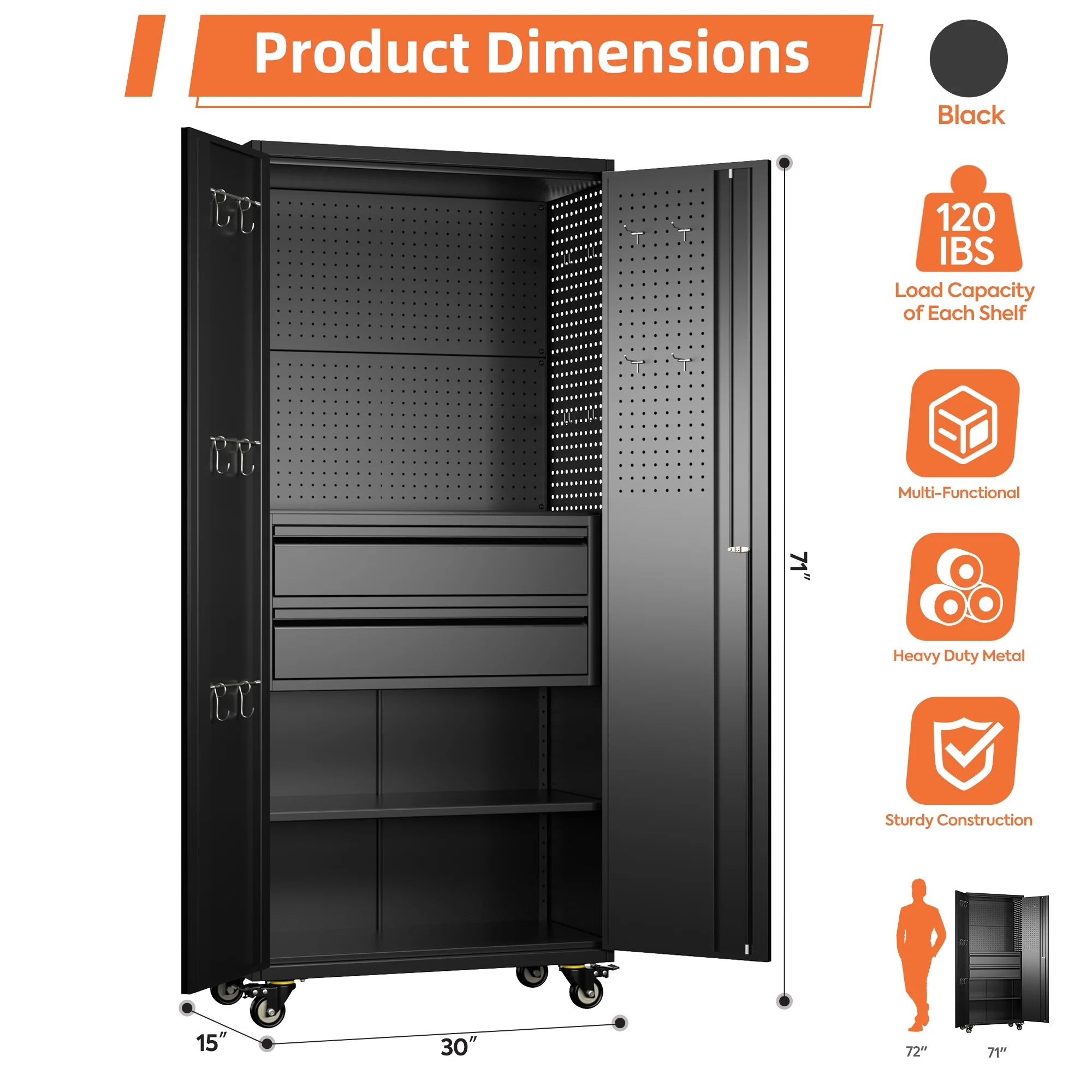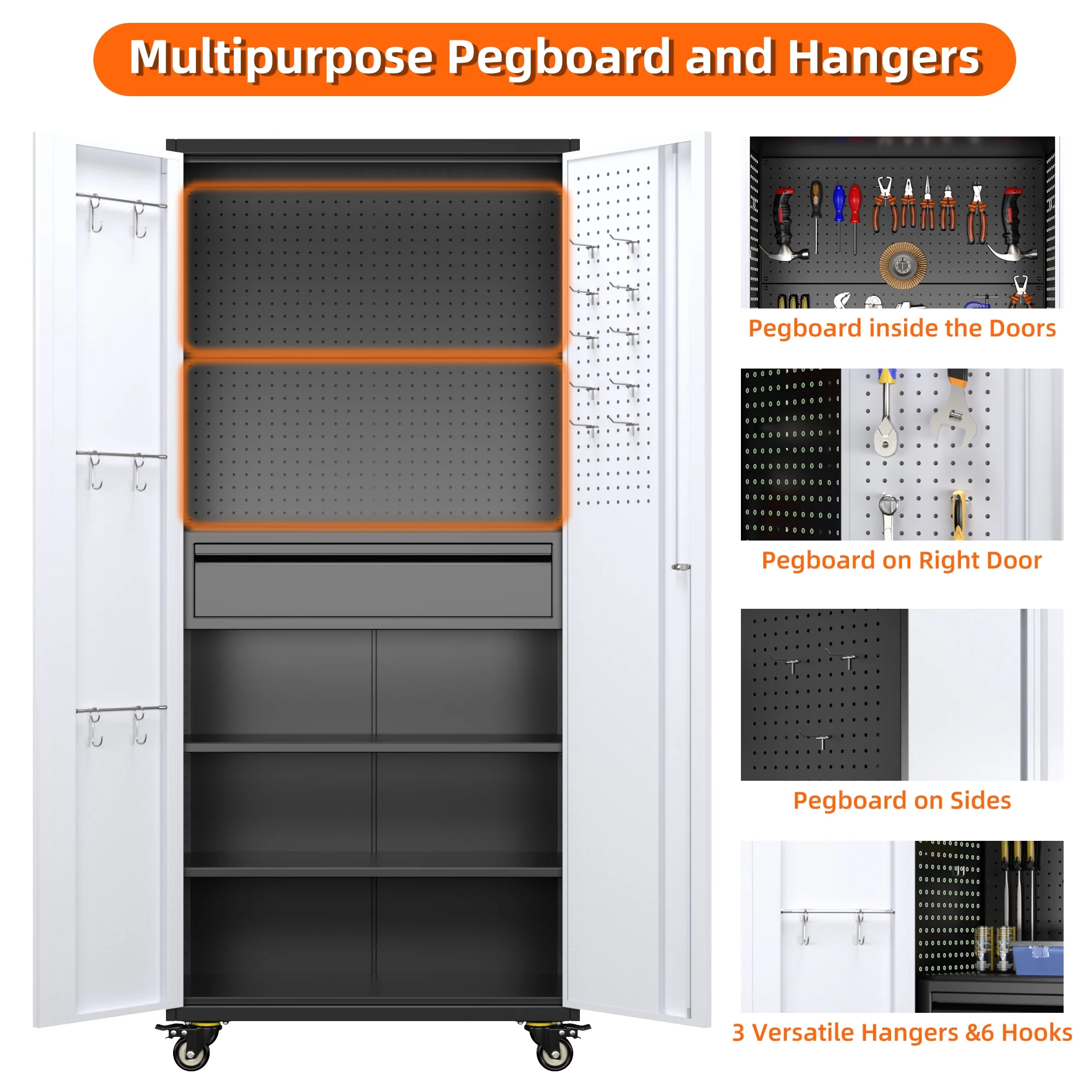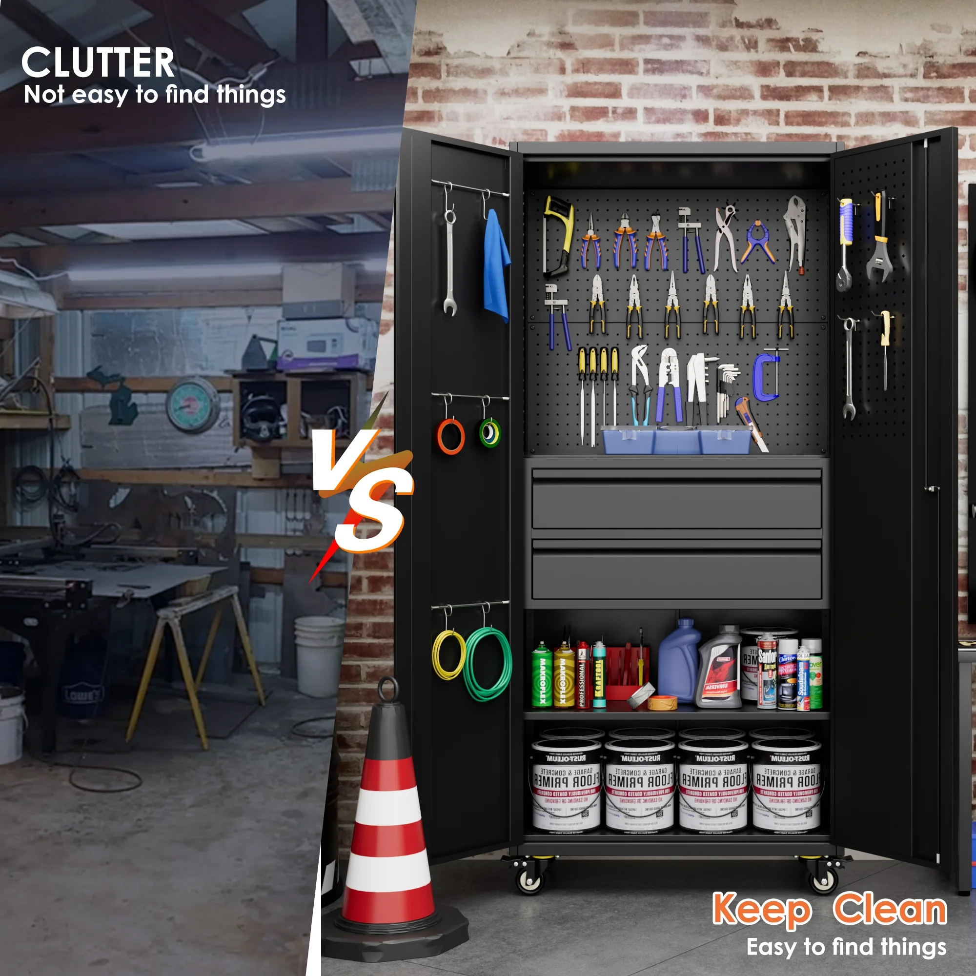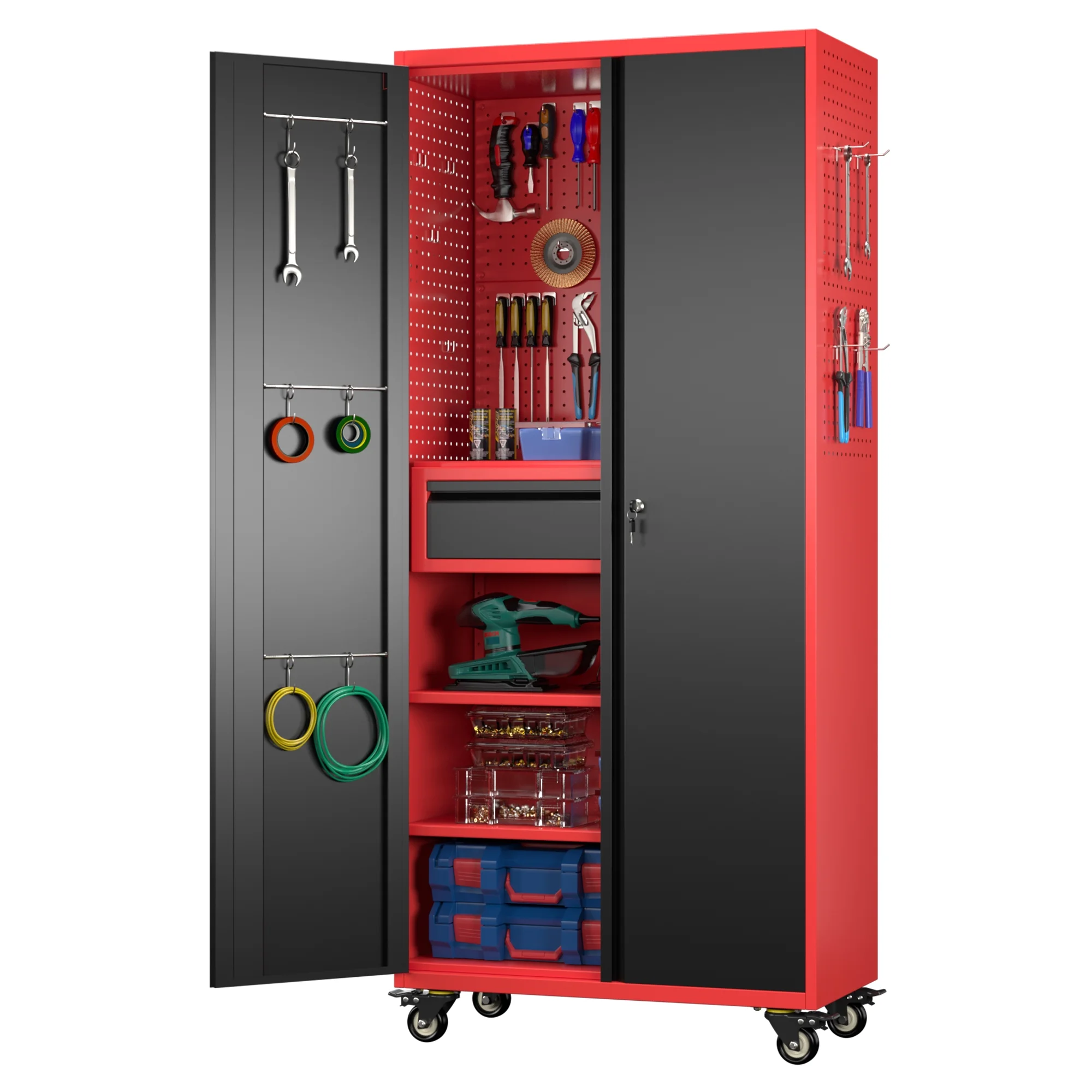 - ��Adjustable Shelves&Large Weight Capacity��The metal storage cabinet with wheels has 5 adjustable and removable shelves, which can offer you flexible space. Each shelf of the storage cabinet on wheels can hold up to 120lbs. you can add lighting by yourself on top of the cabinet if it was dark where you keep it.
