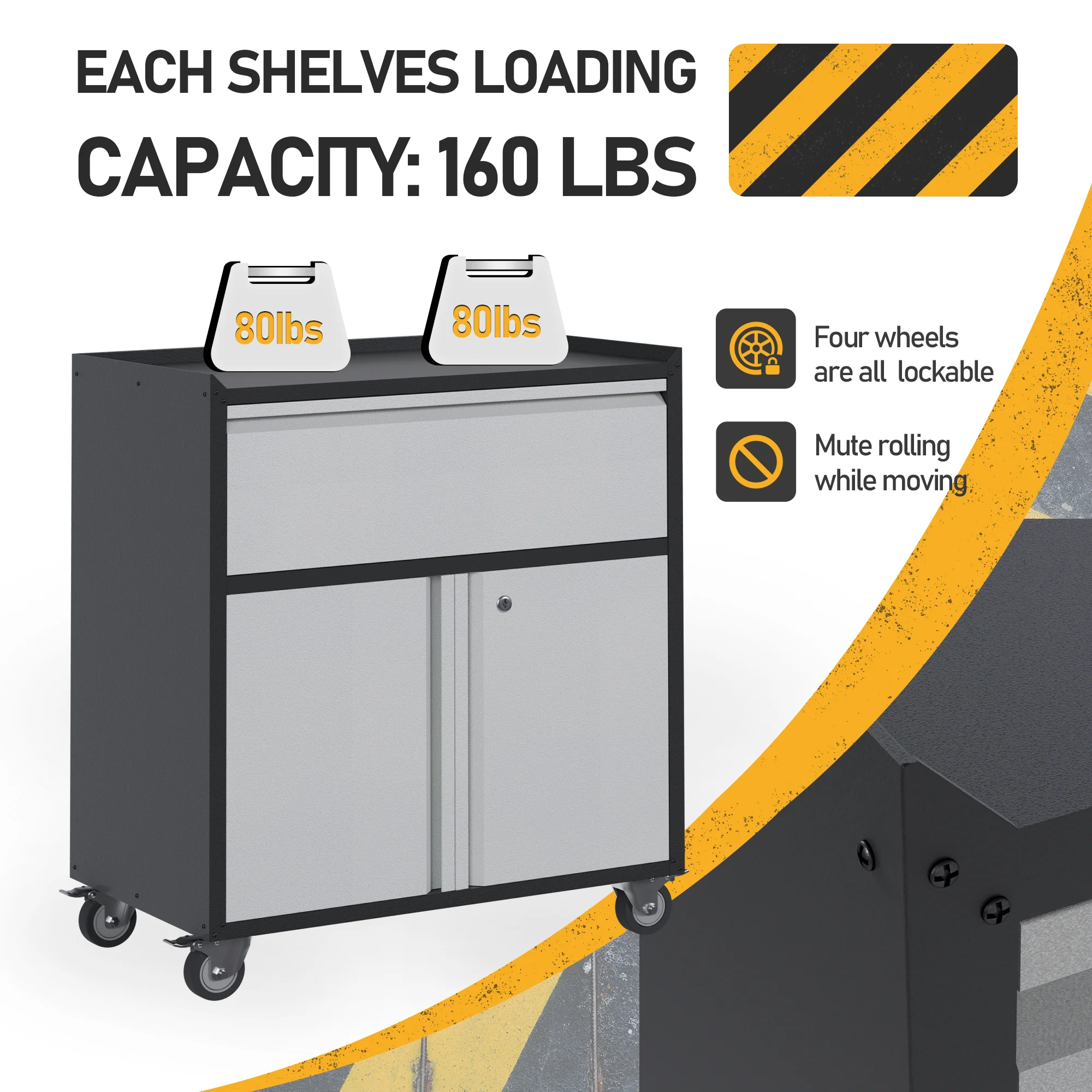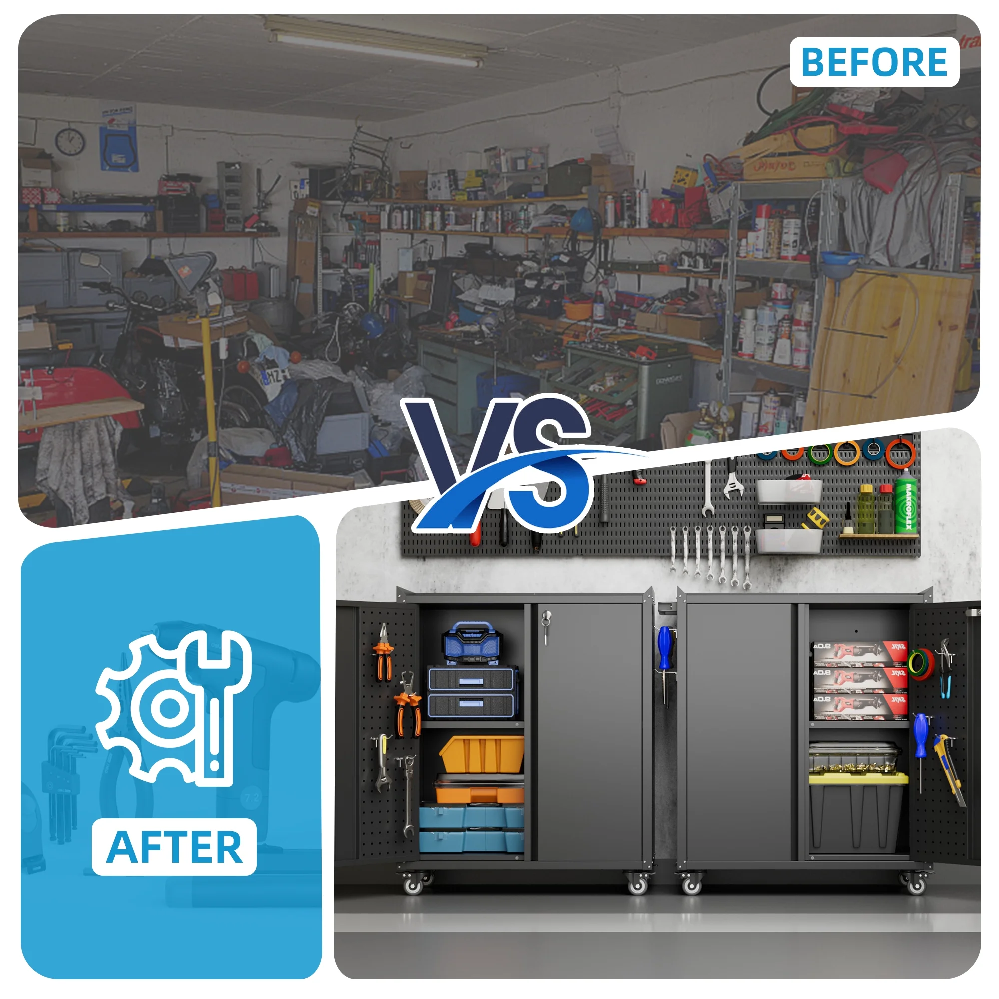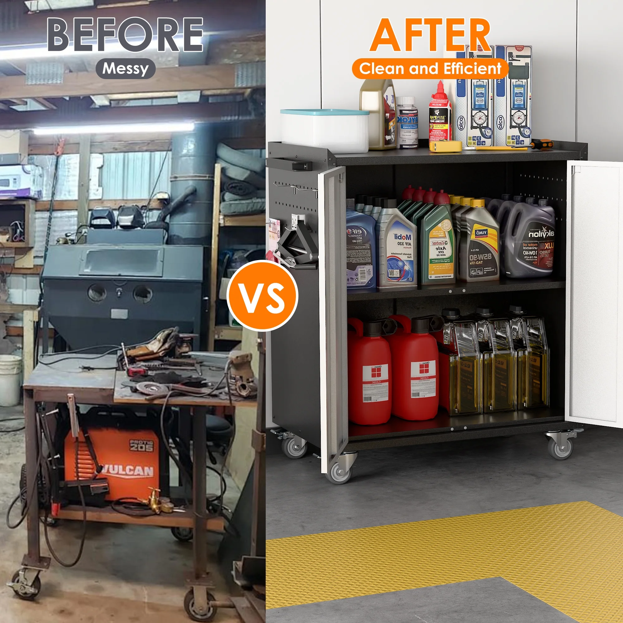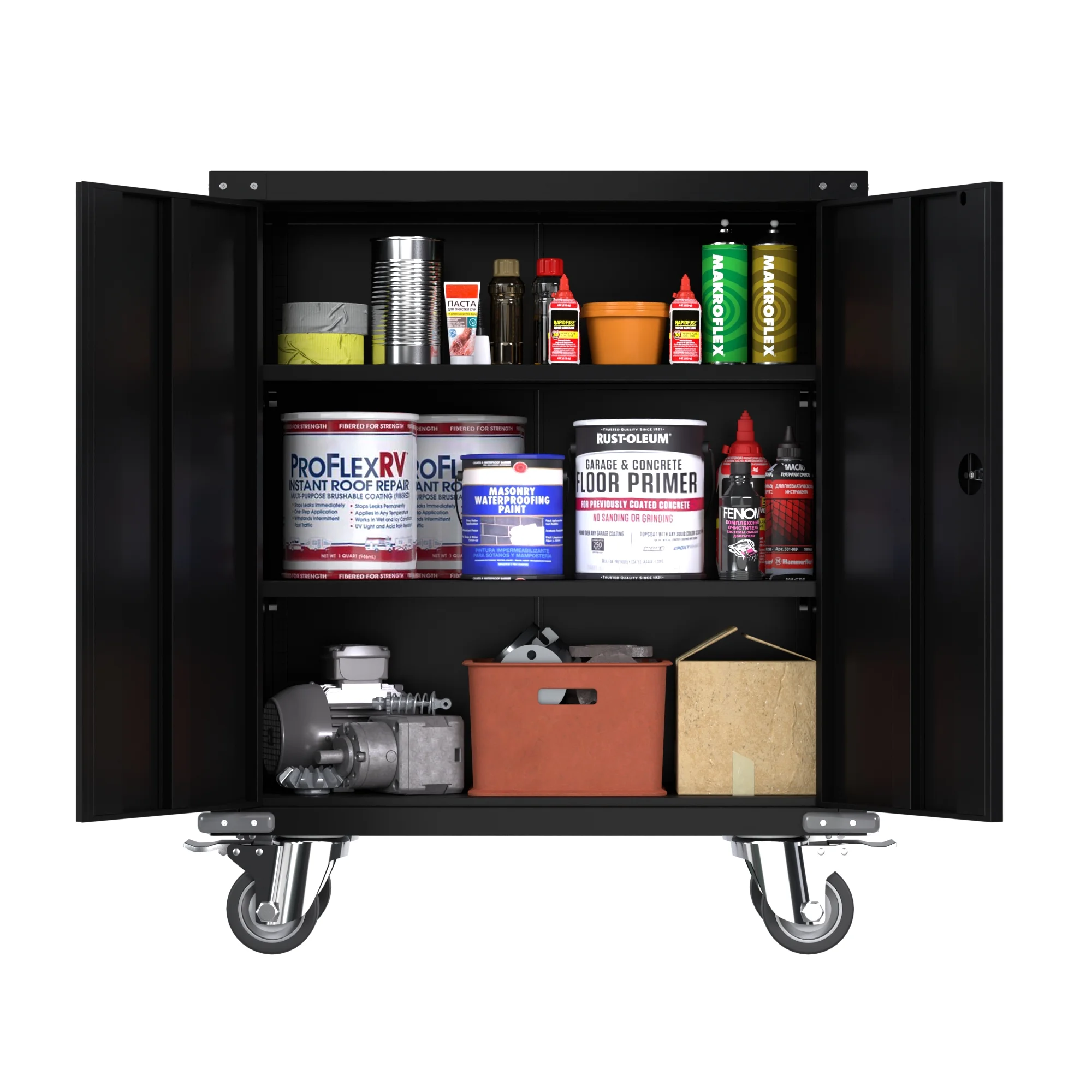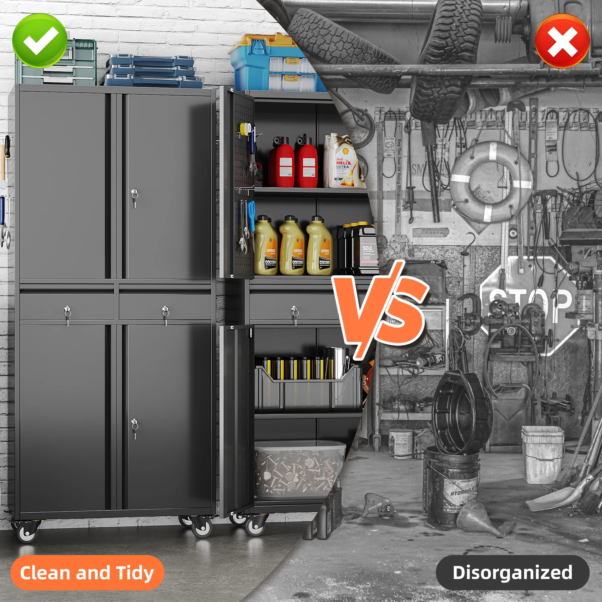 - ��Great Garage Storage Cabinet��Plenty of storage. "great garage cleanup". You can move them around as needed and the casters and wheels work great on all the different surfaces inyour garage. Extra storage strong and fit your needs, it is sufficient for garage use.
