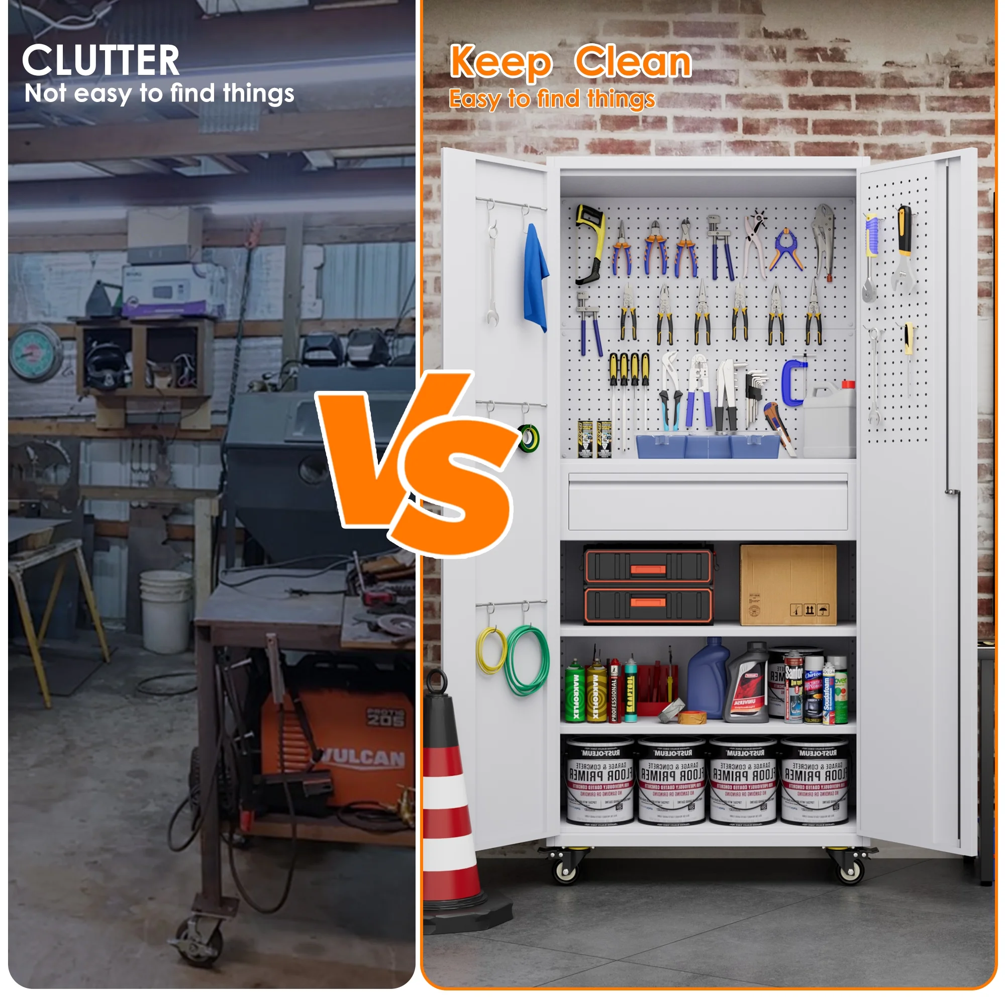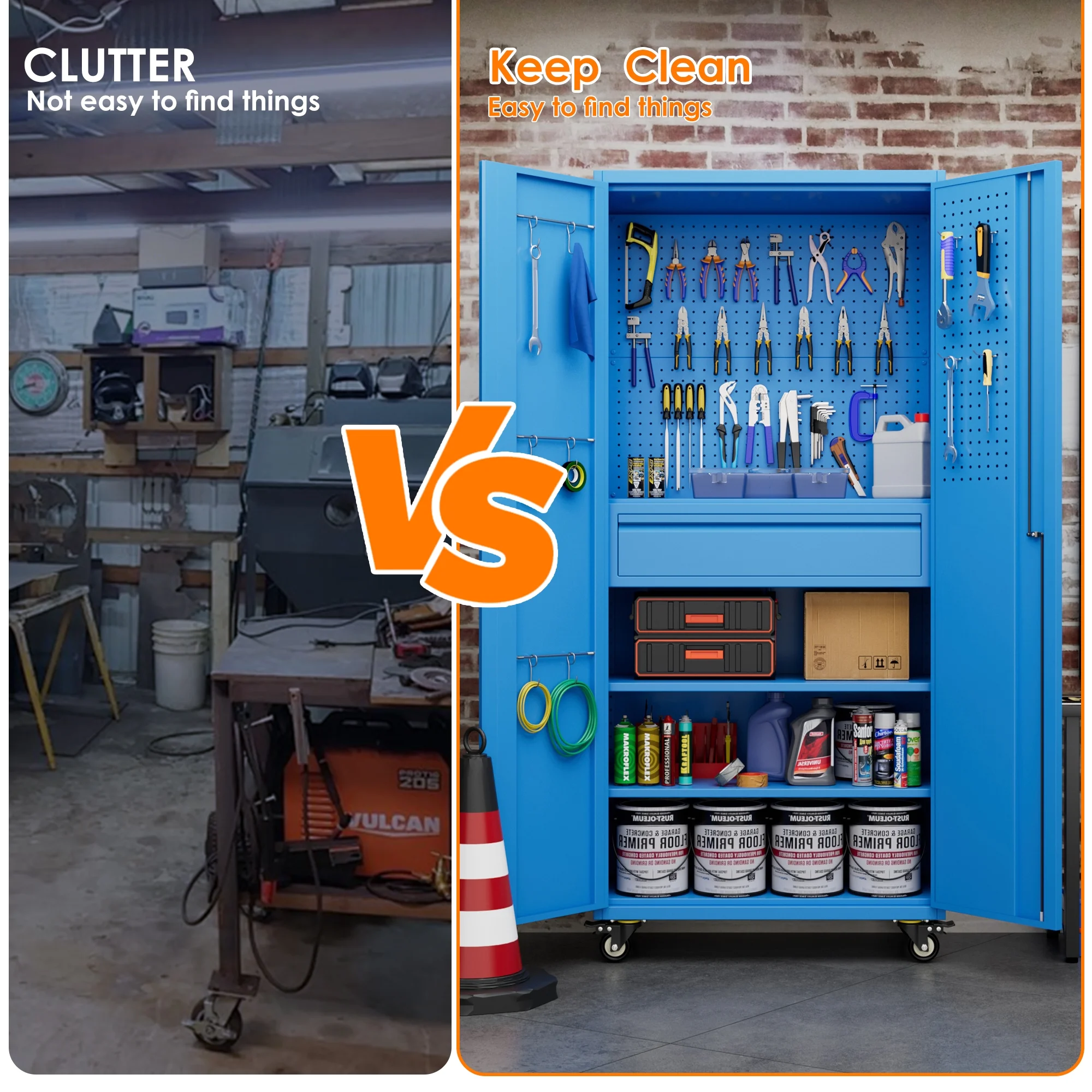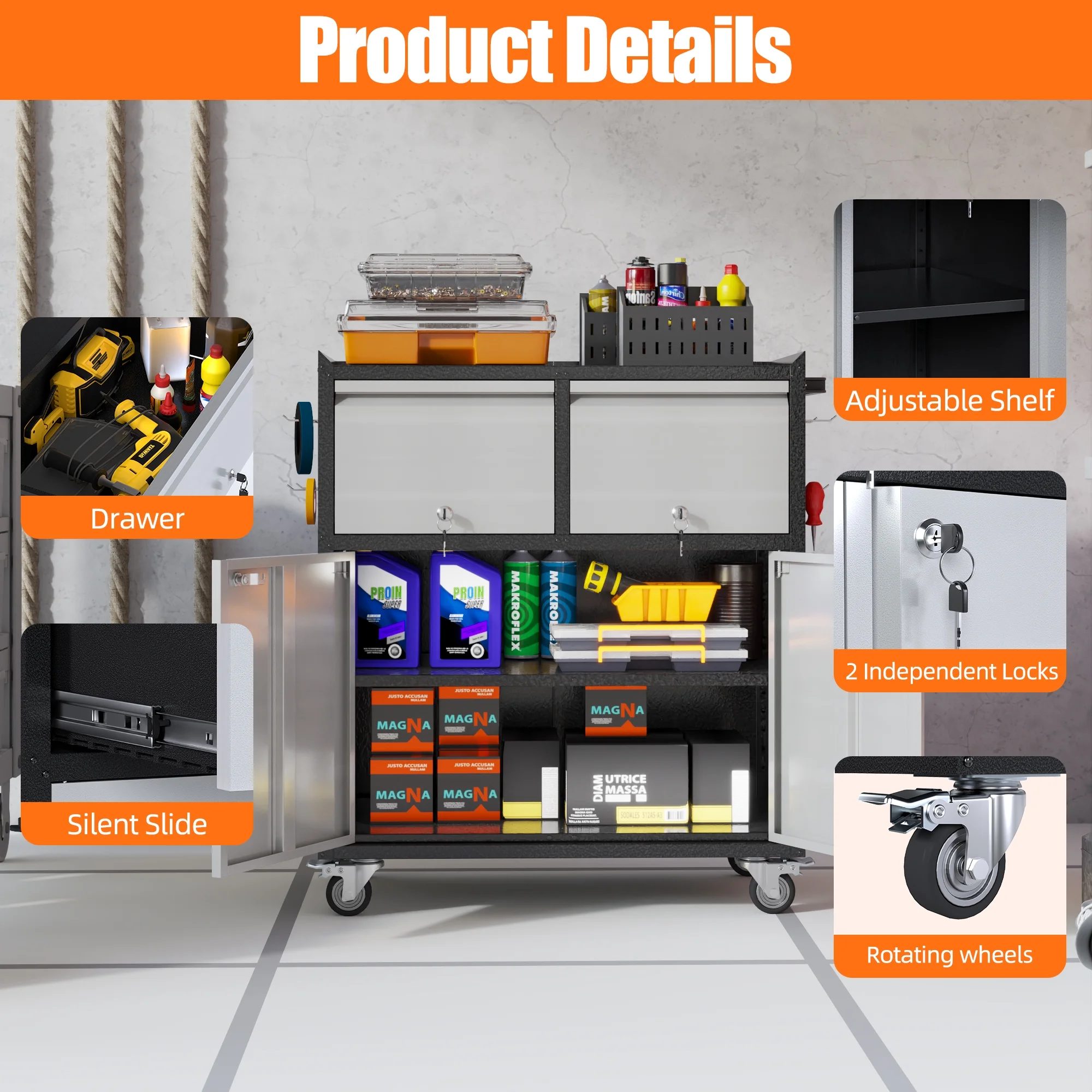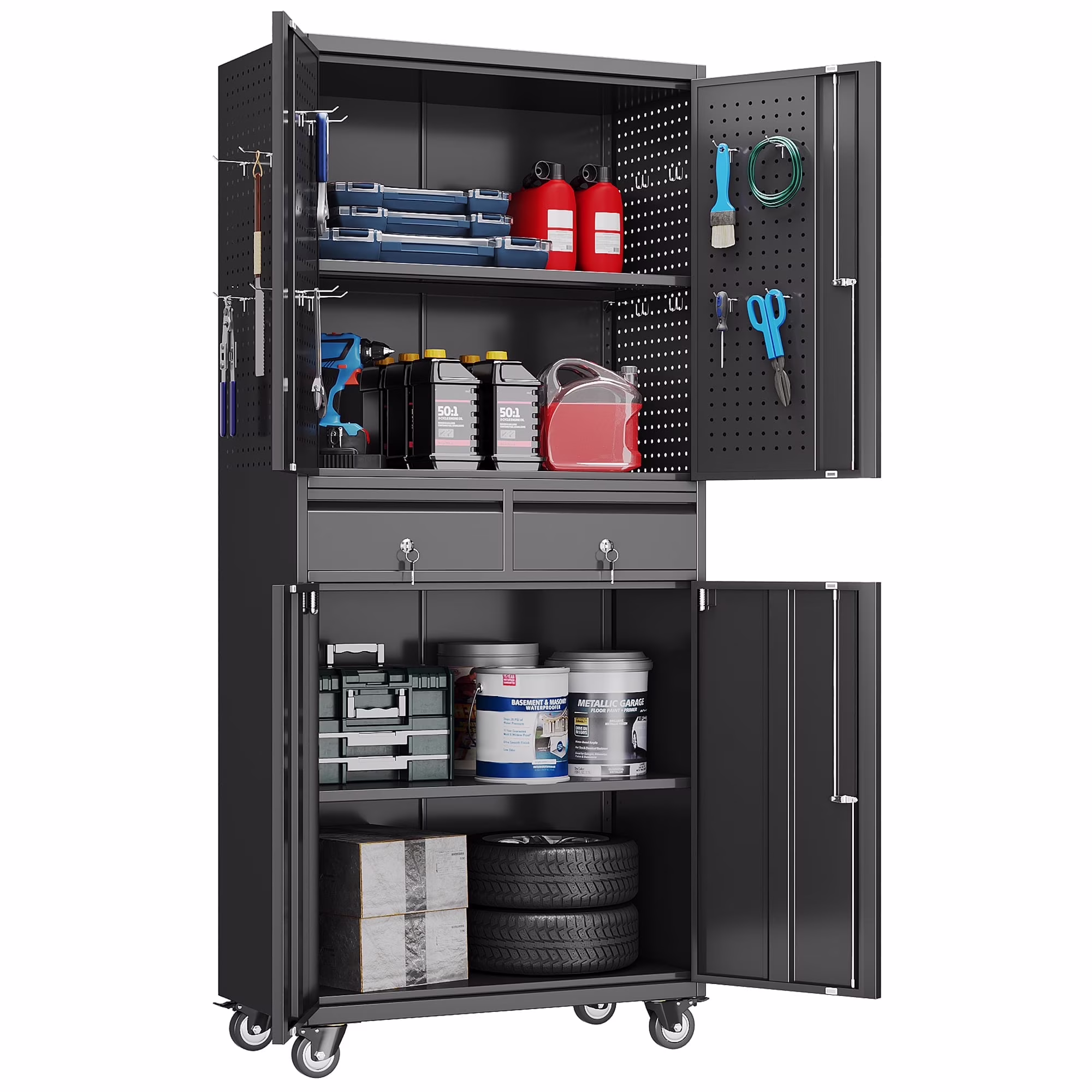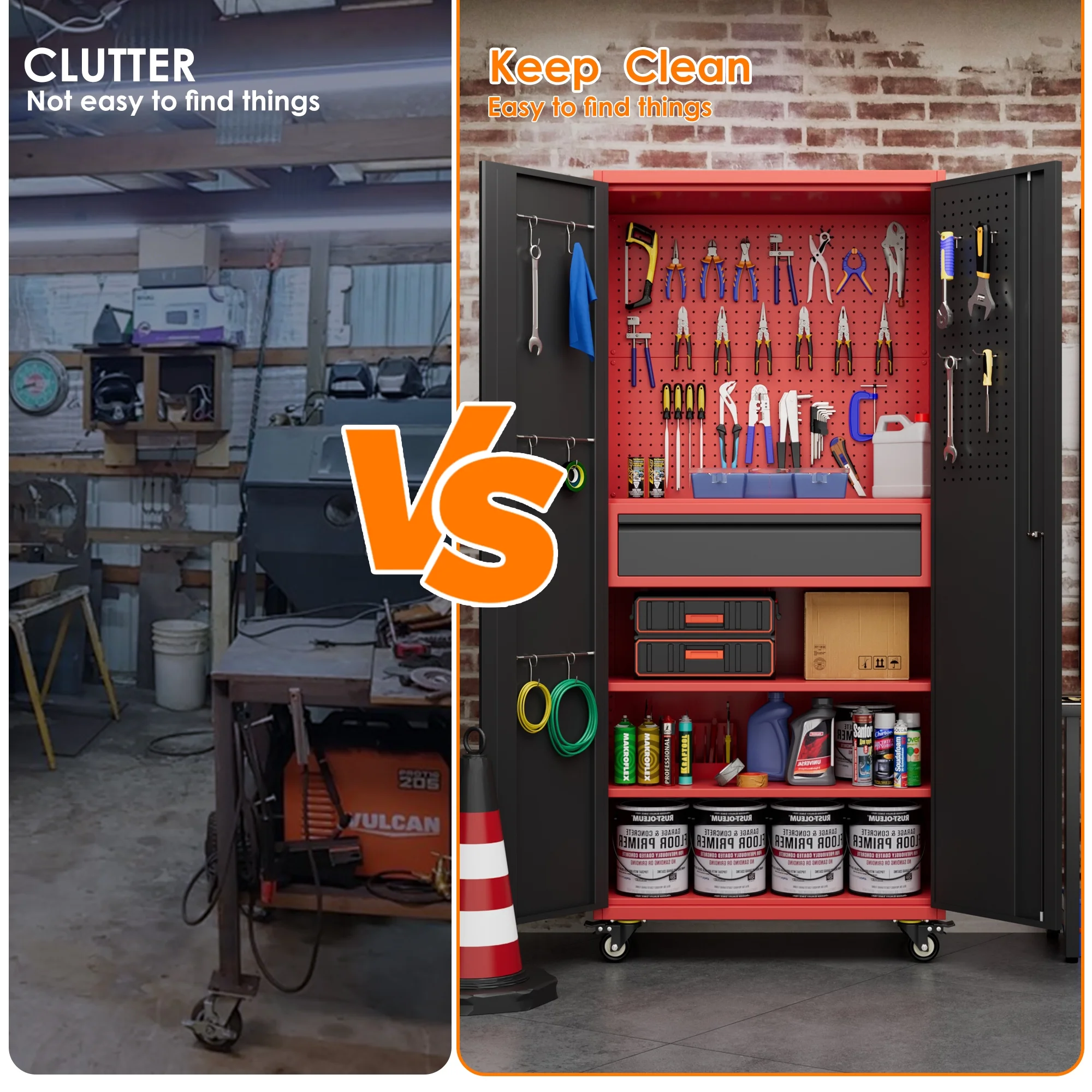 - ��Great Garage Storage Cabinet��Plenty of storage. "great garage cleanup". You can move them around as needed and the casters and wheels work great on all the different surfaces inyour garage. Extra storage strong and fit your needs, it is sufficient for garage use.