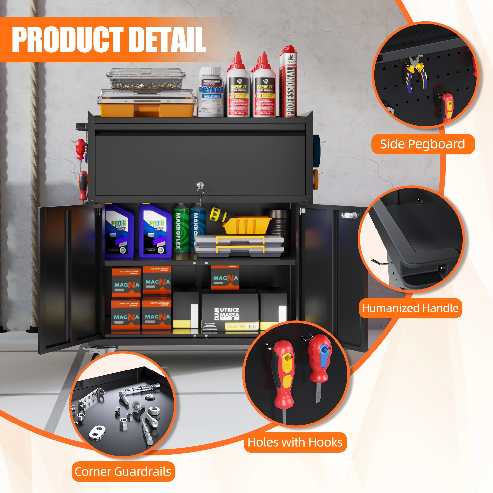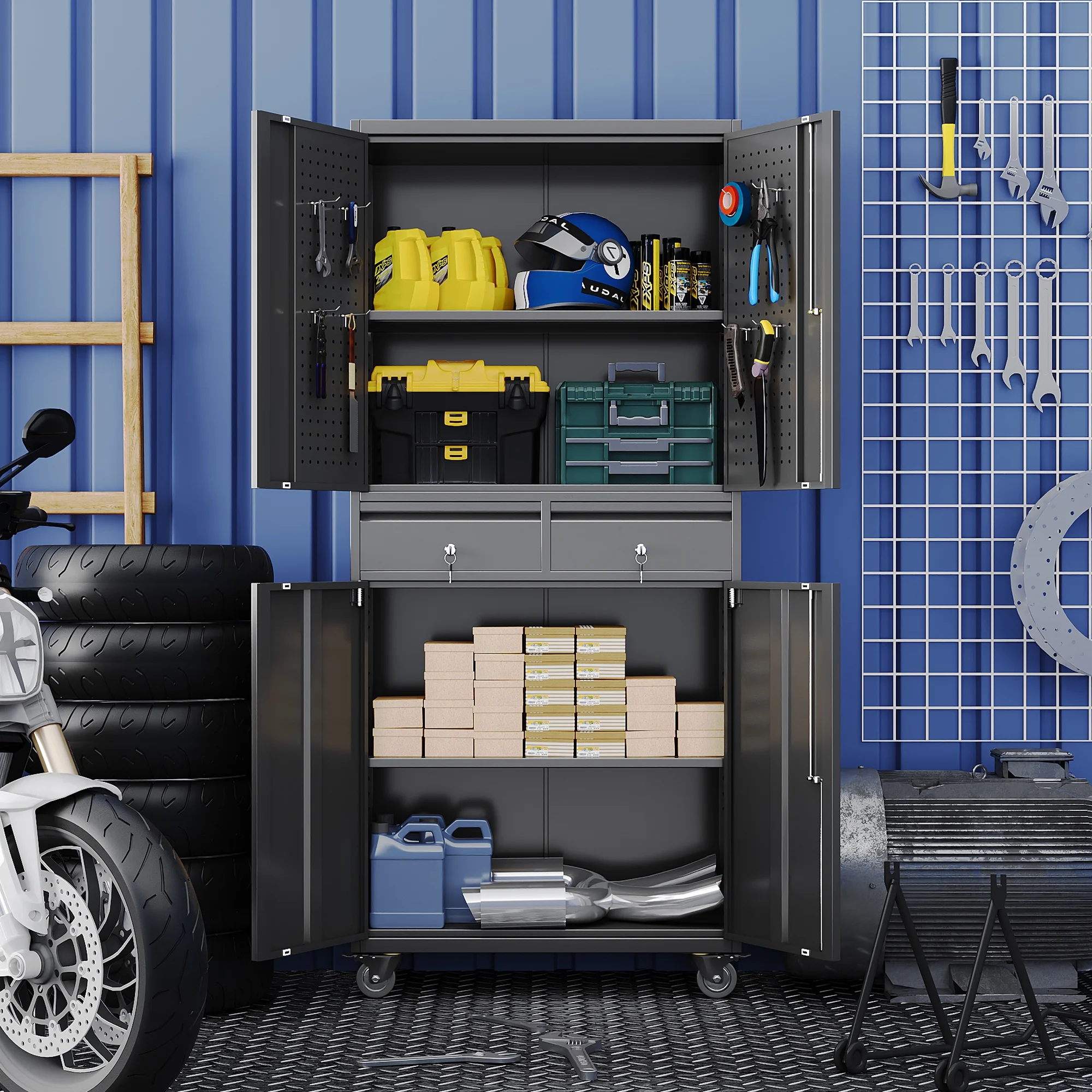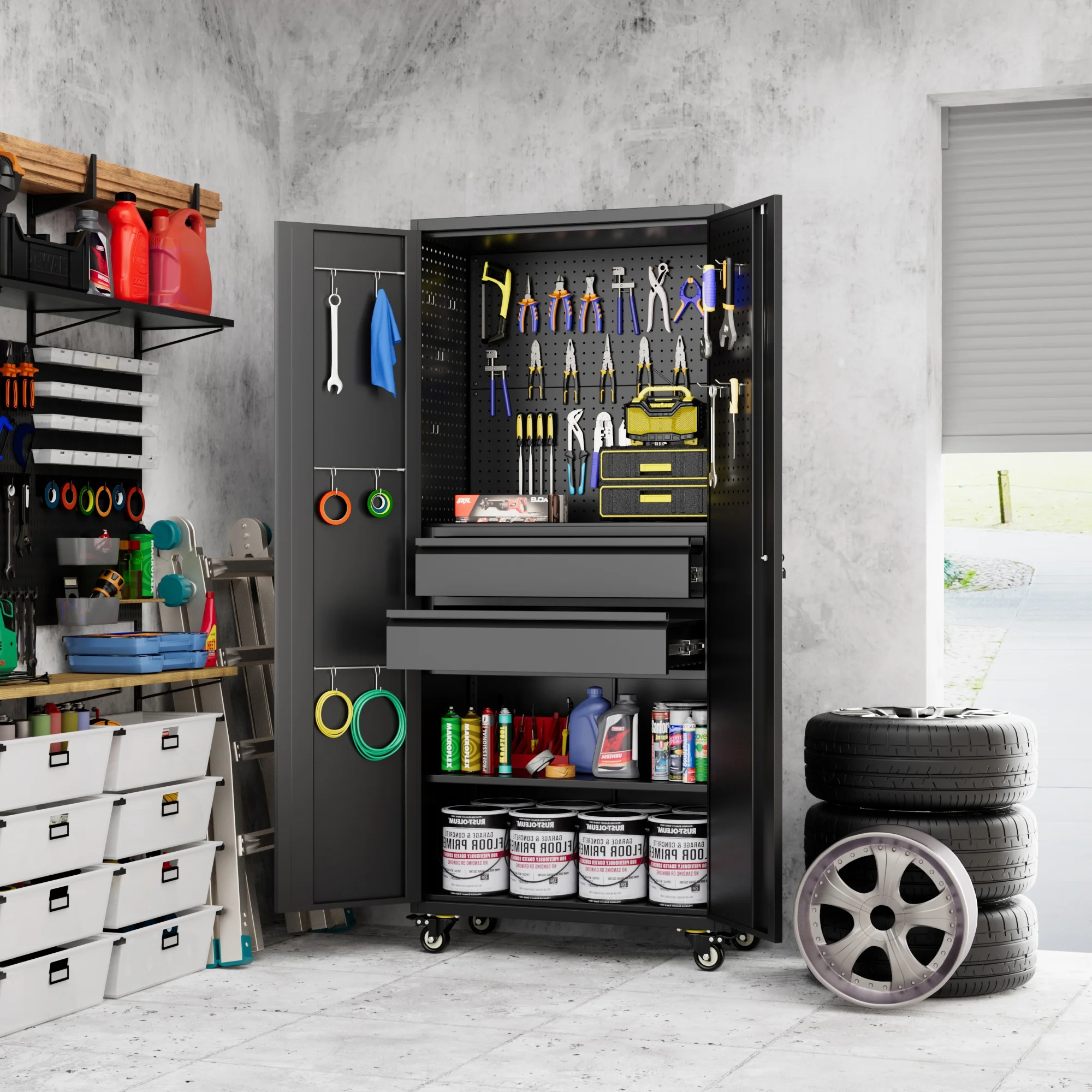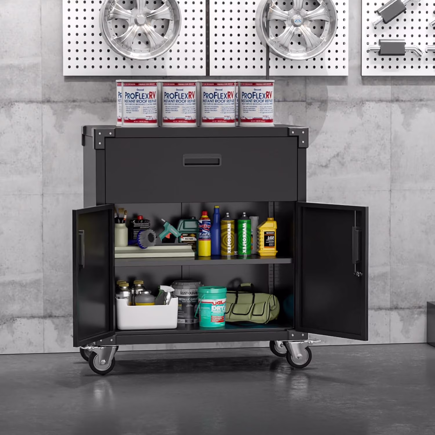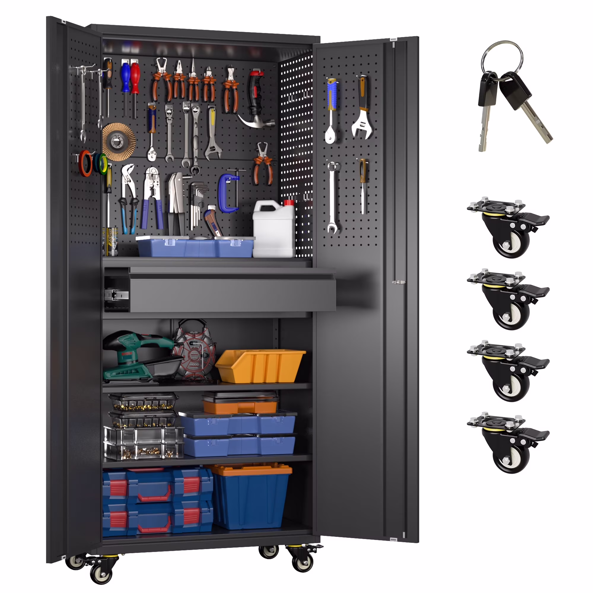 - ��Great Garage Storage Cabinet��Plenty of storage. "great garage cleanup". You can move them around as needed and the casters and wheels work great on all the different surfaces inyour garage. Extra storage strong and fit your needs, it is sufficient for garage use.