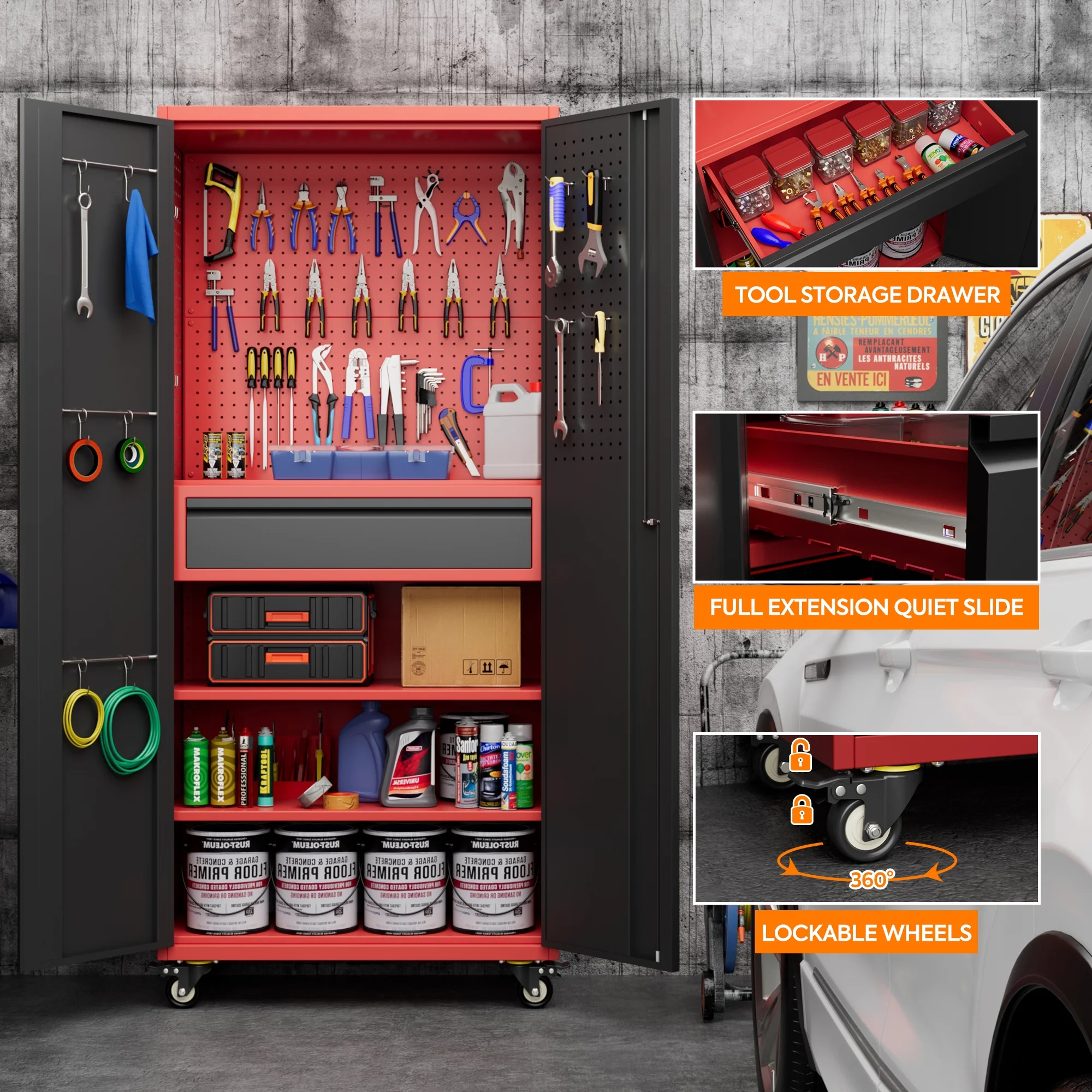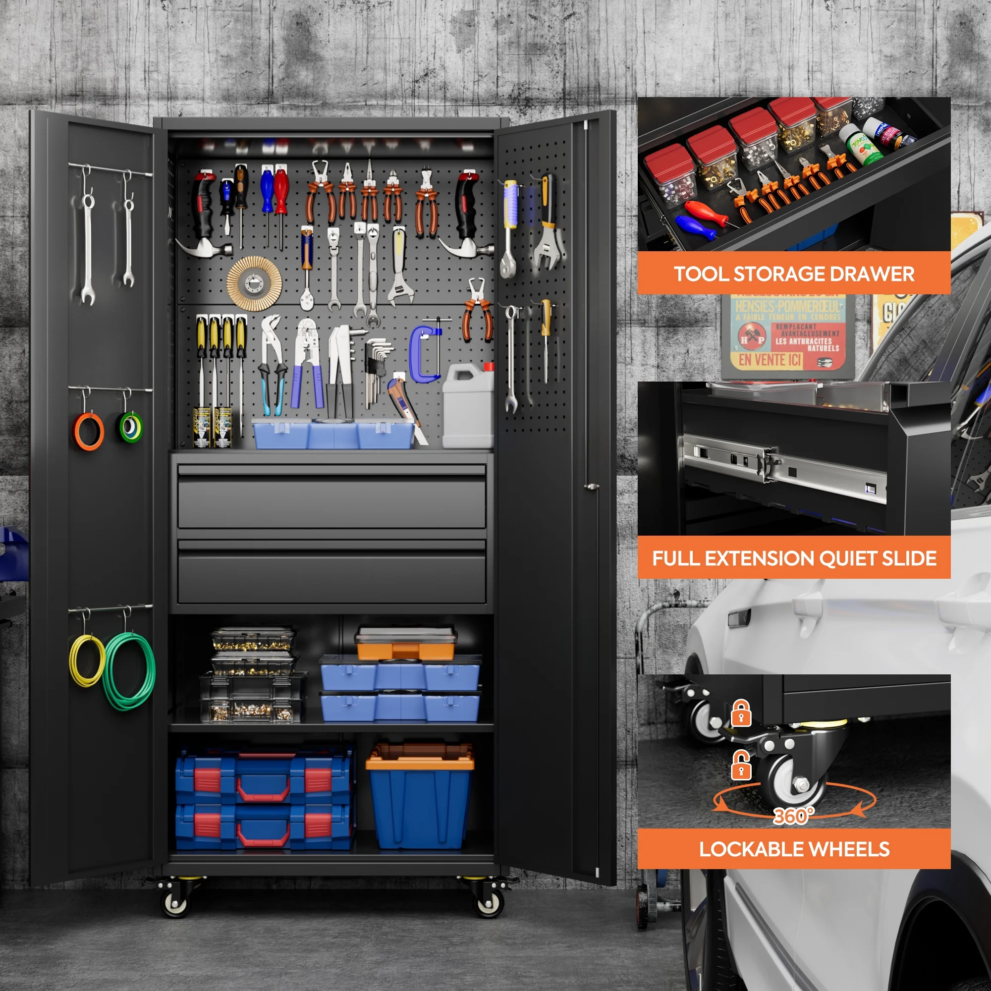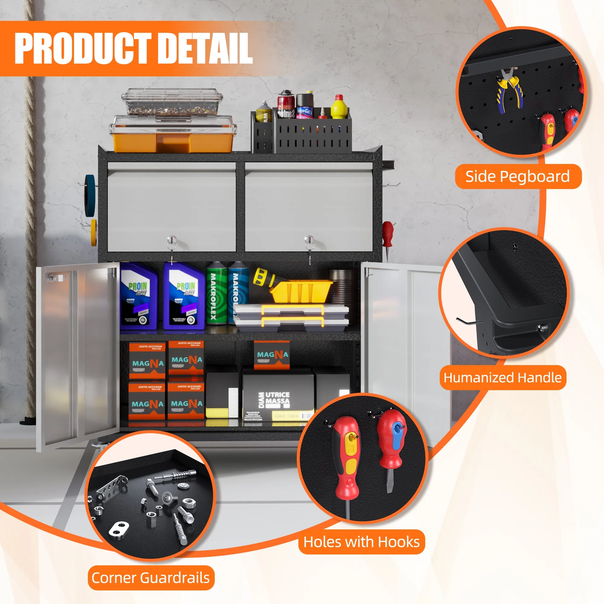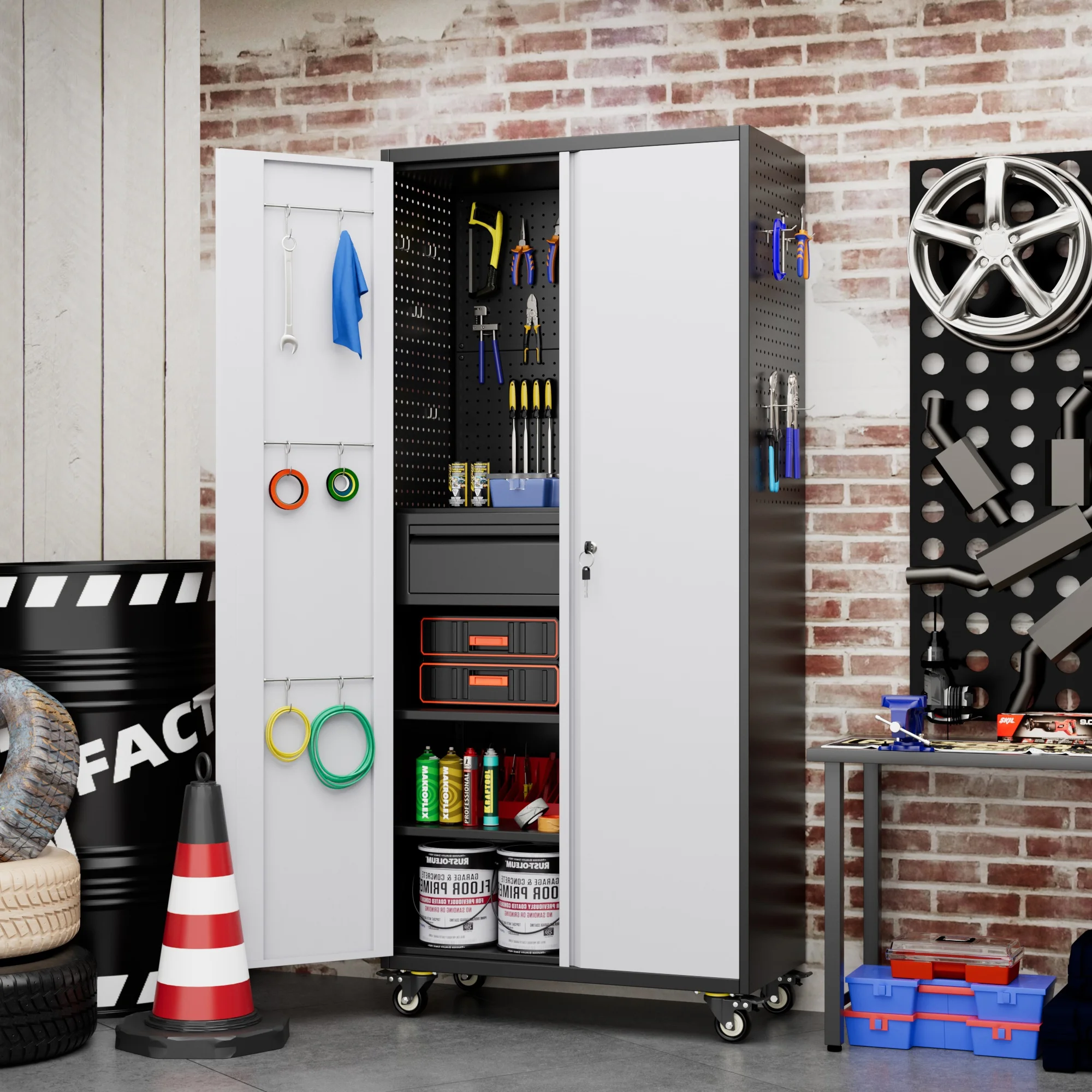 - ��Great Garage Storage Cabinet��Plenty of storage. "great garage cleanup". You can move them around as needed and the casters and wheels work great on all the different surfaces inyour garage. Extra storage strong and fit your needs, it is sufficient for garage use.