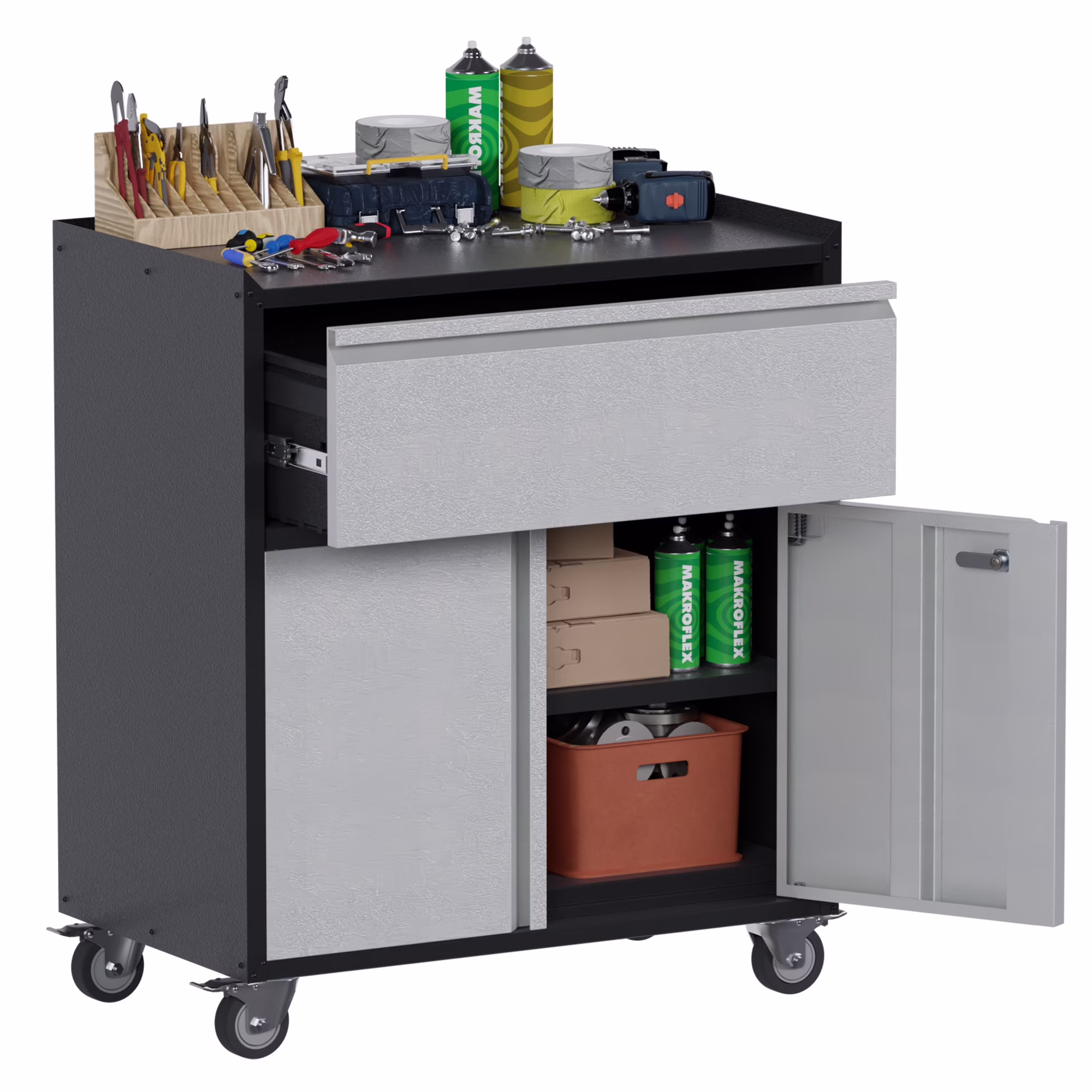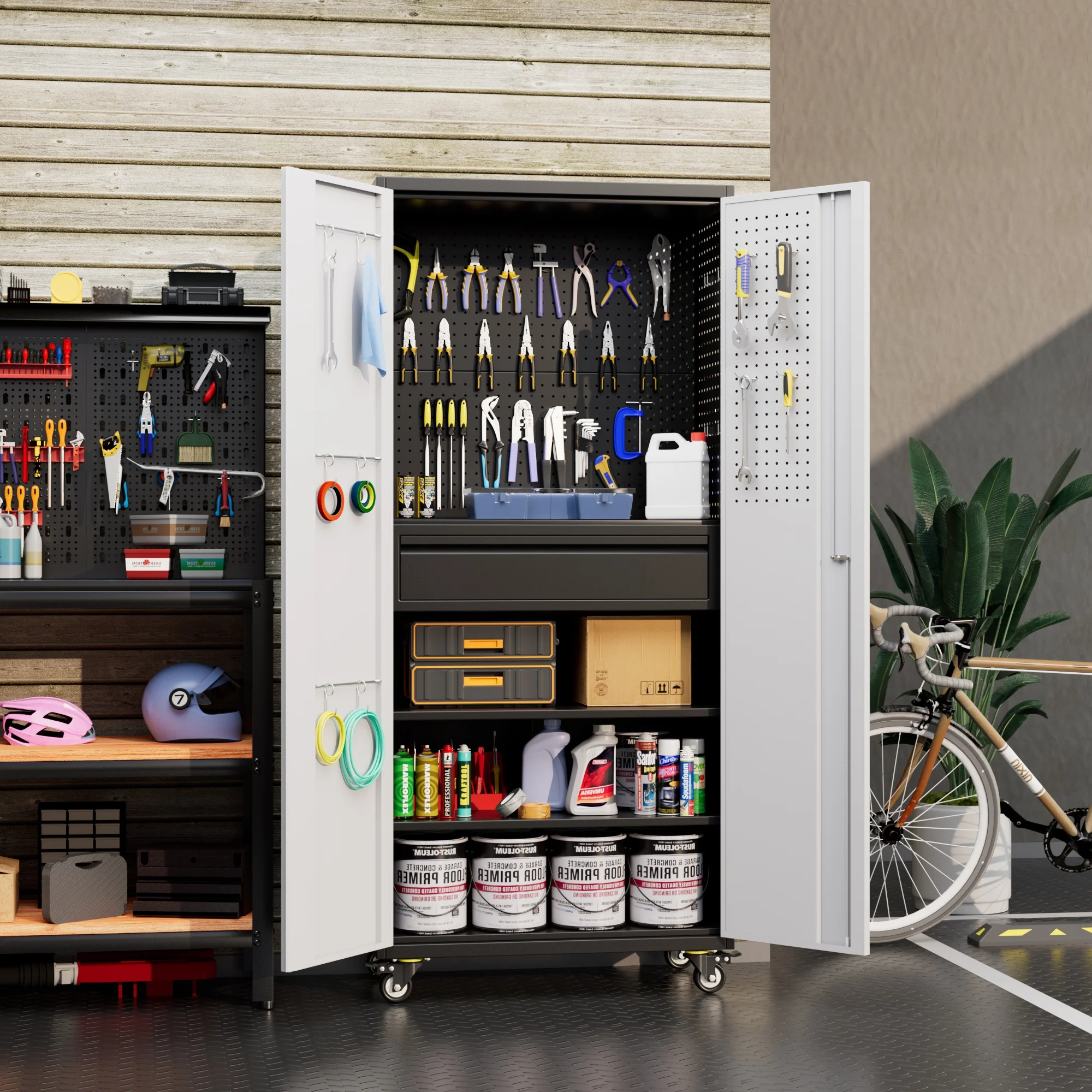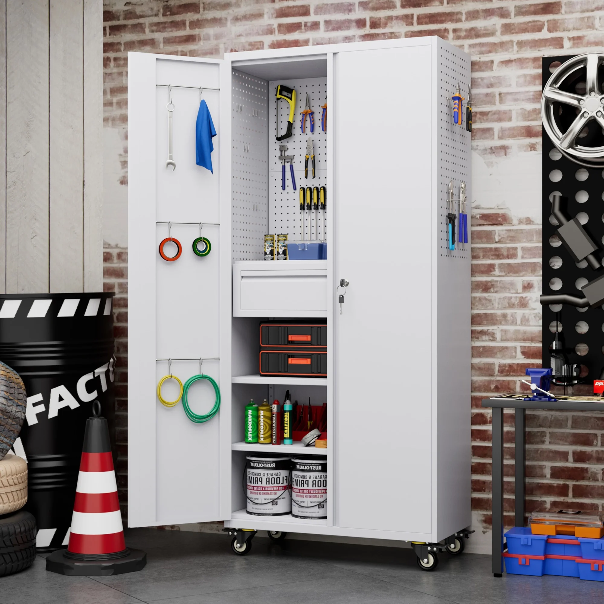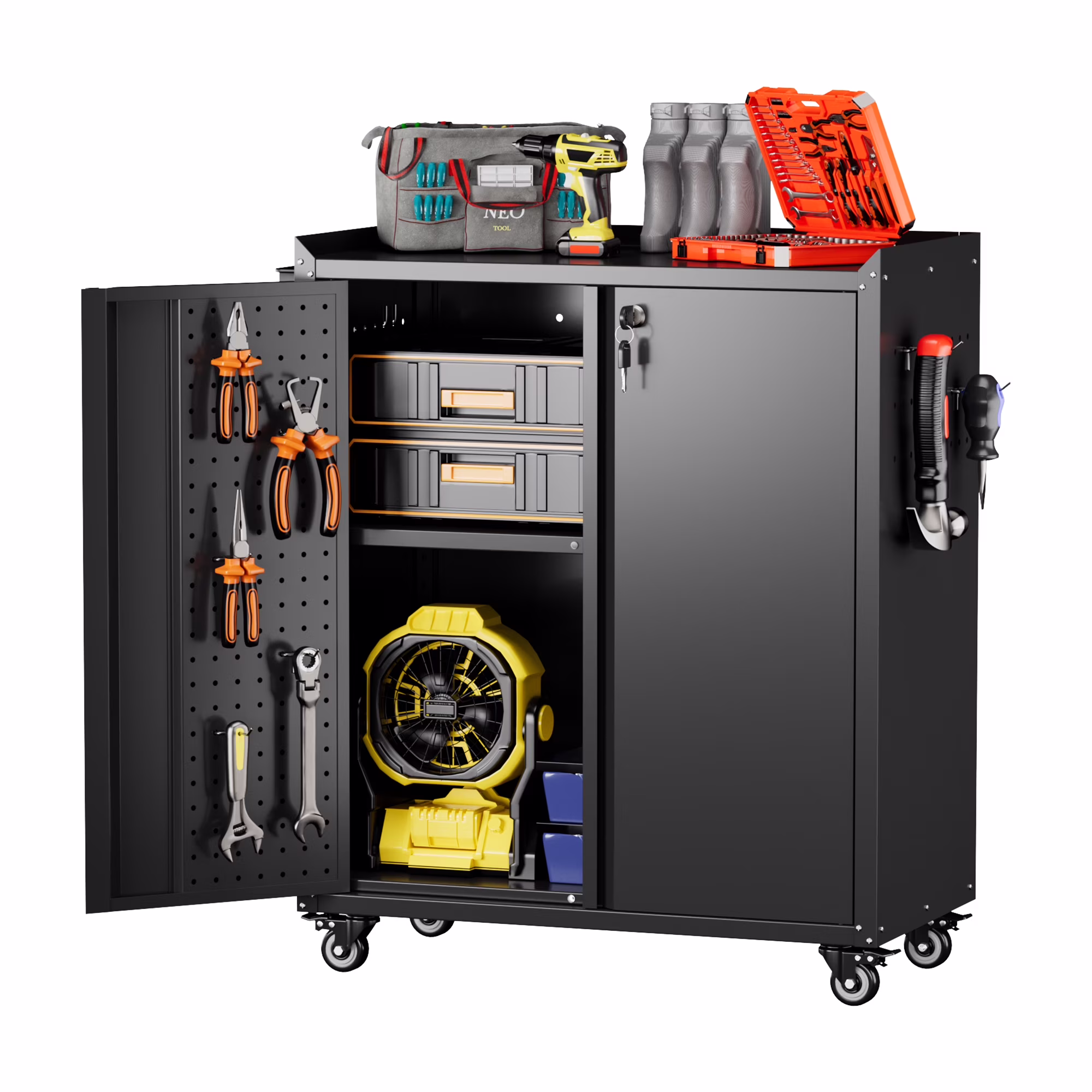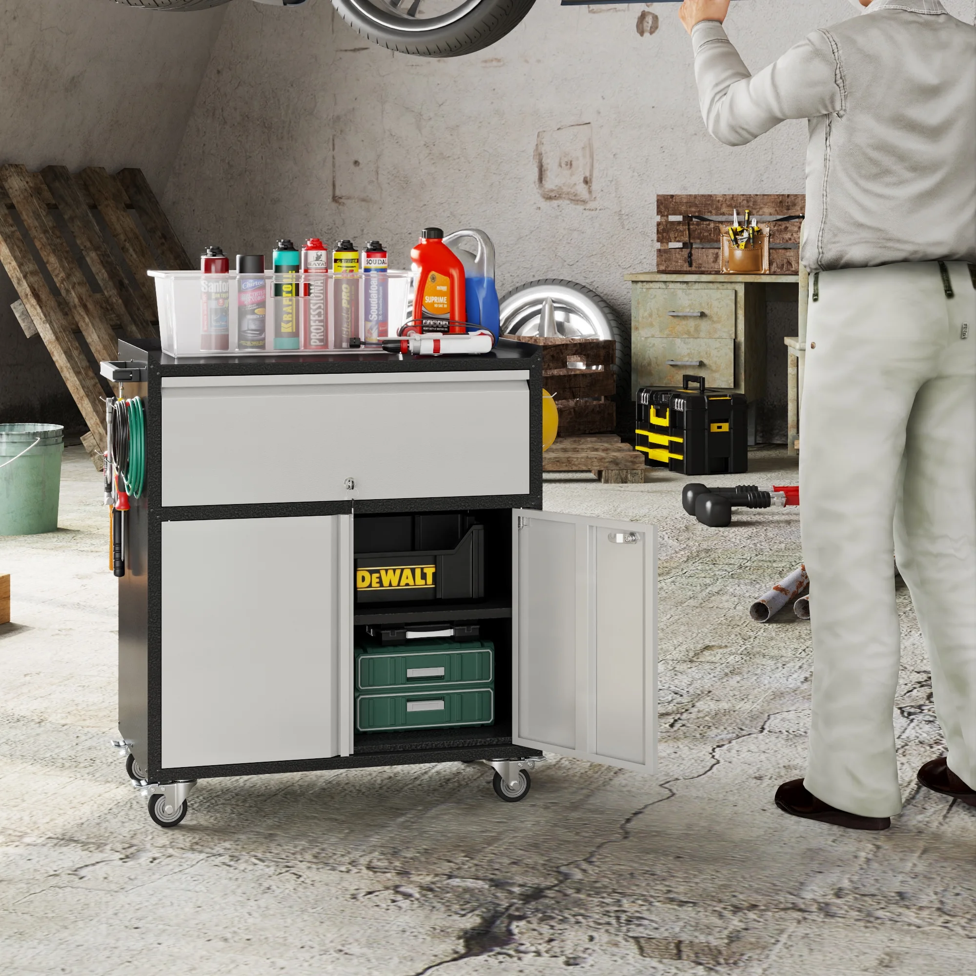 - ��Great Garage Storage Cabinet��Plenty of storage. "great garage cleanup". You can move them around as needed and the casters and wheels work great on all the different surfaces inyour garage. Extra storage strong and fit your needs, it is sufficient for garage use.