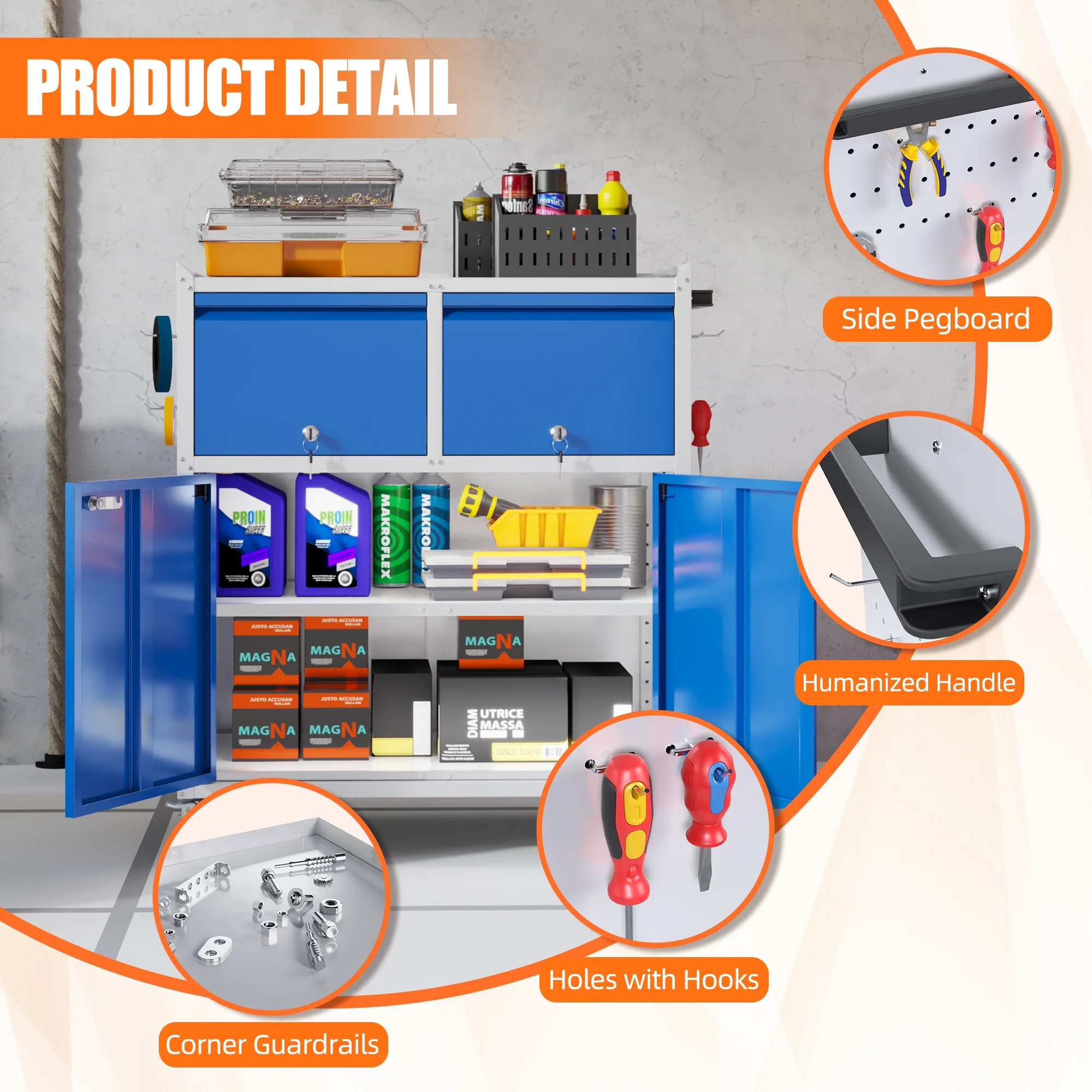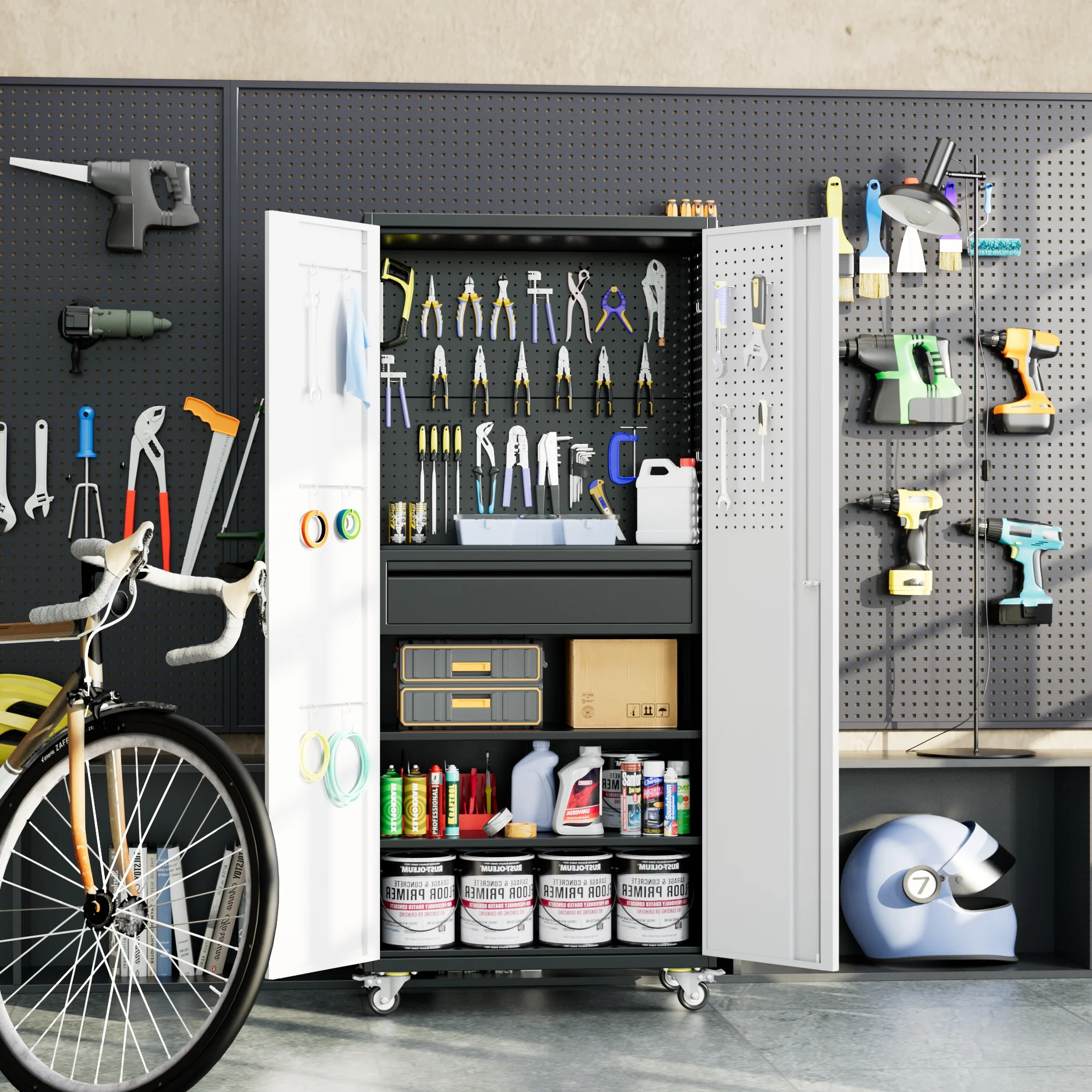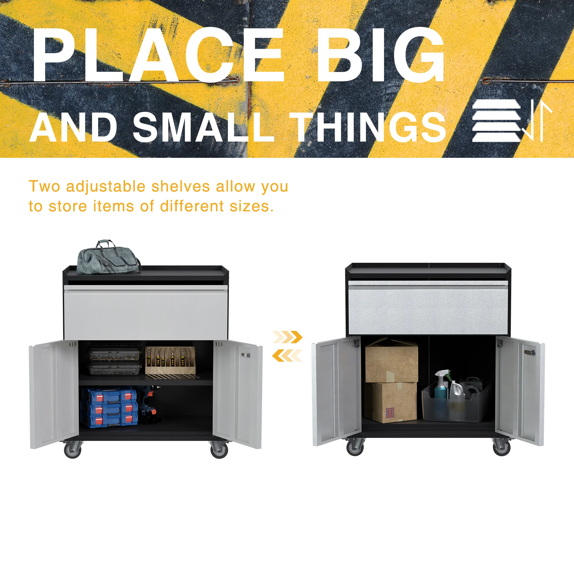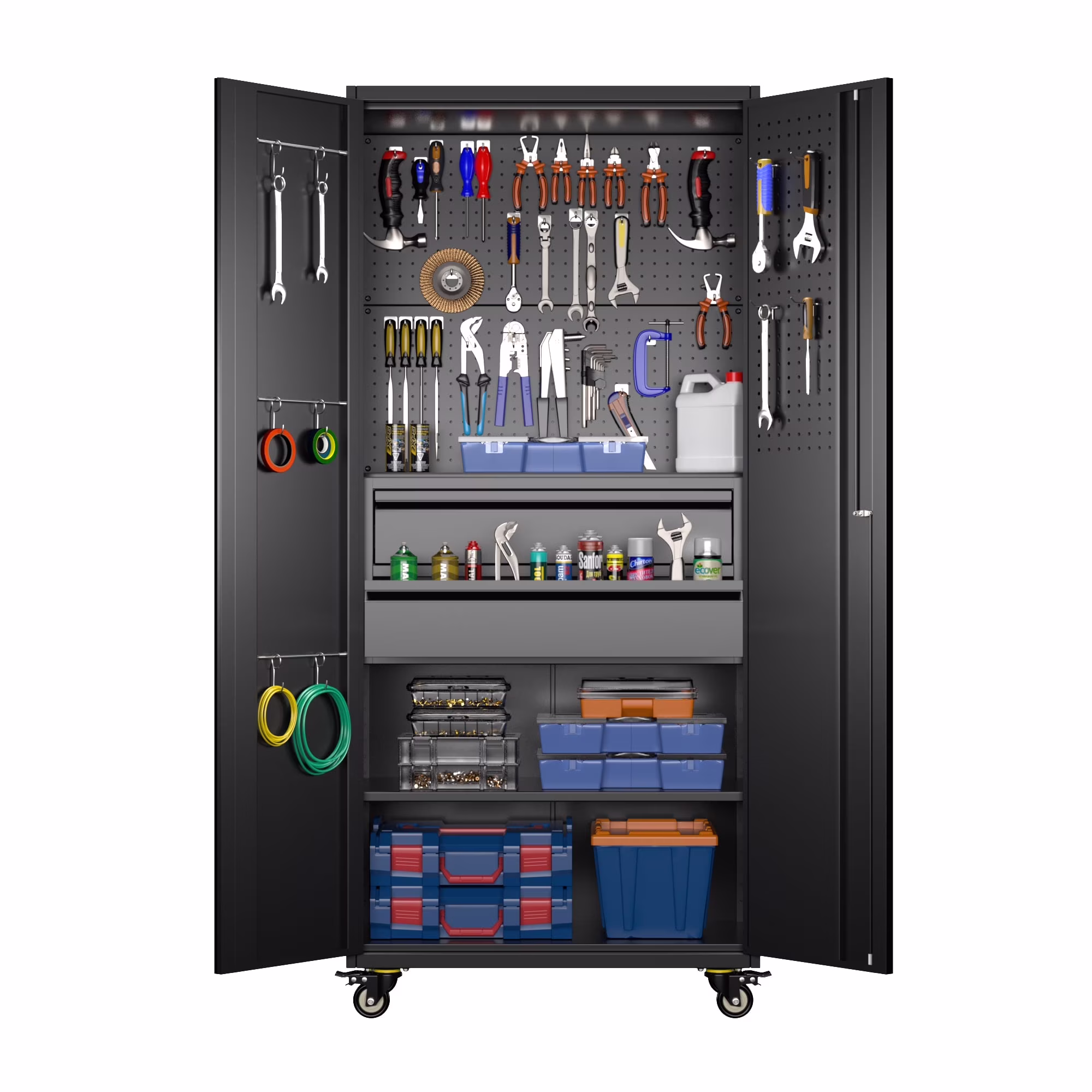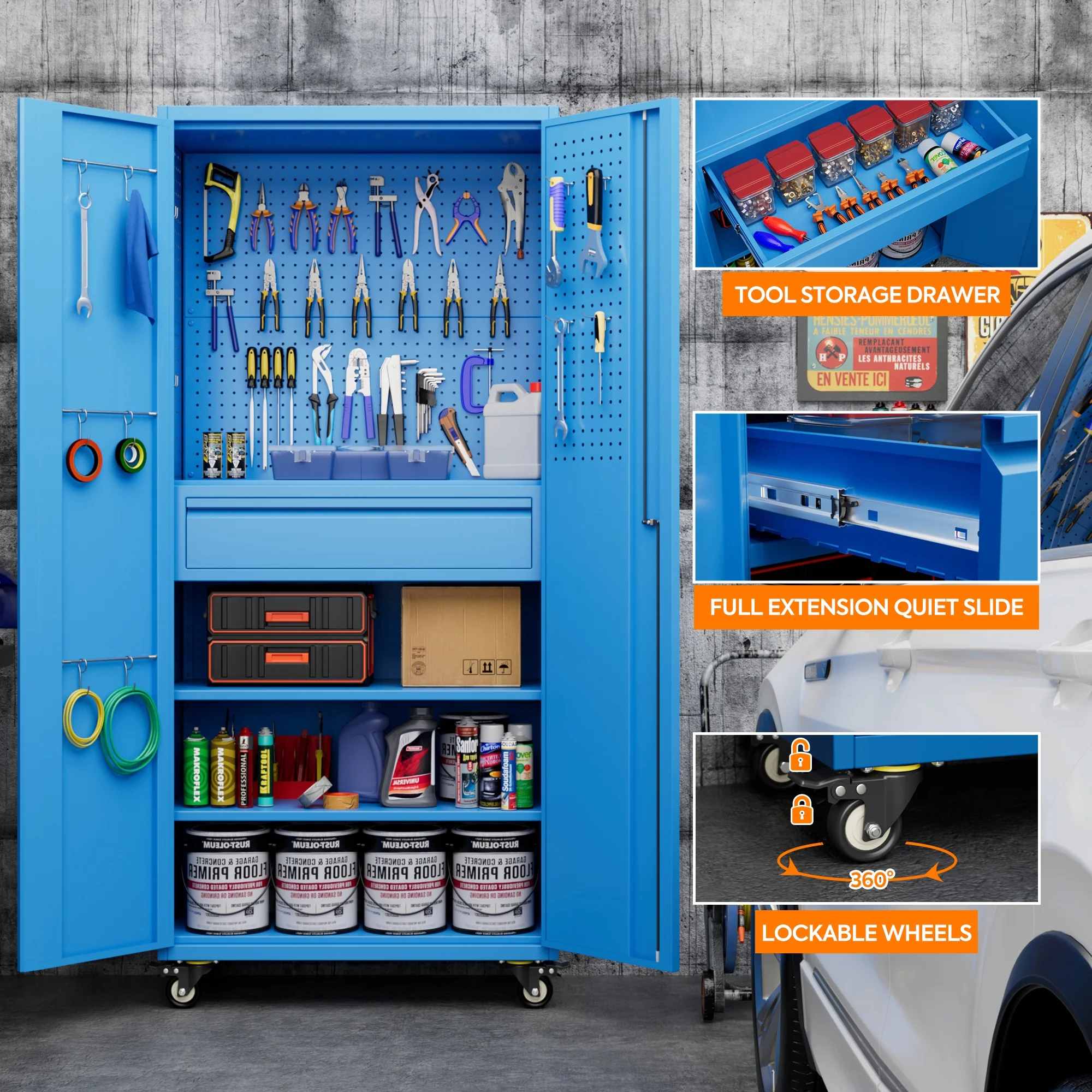 - ��Great Garage Storage Cabinet��Plenty of storage. "great garage cleanup". You can move them around as needed and the casters and wheels work great on all the different surfaces inyour garage. Extra storage strong and fit your needs, it is sufficient for garage use.