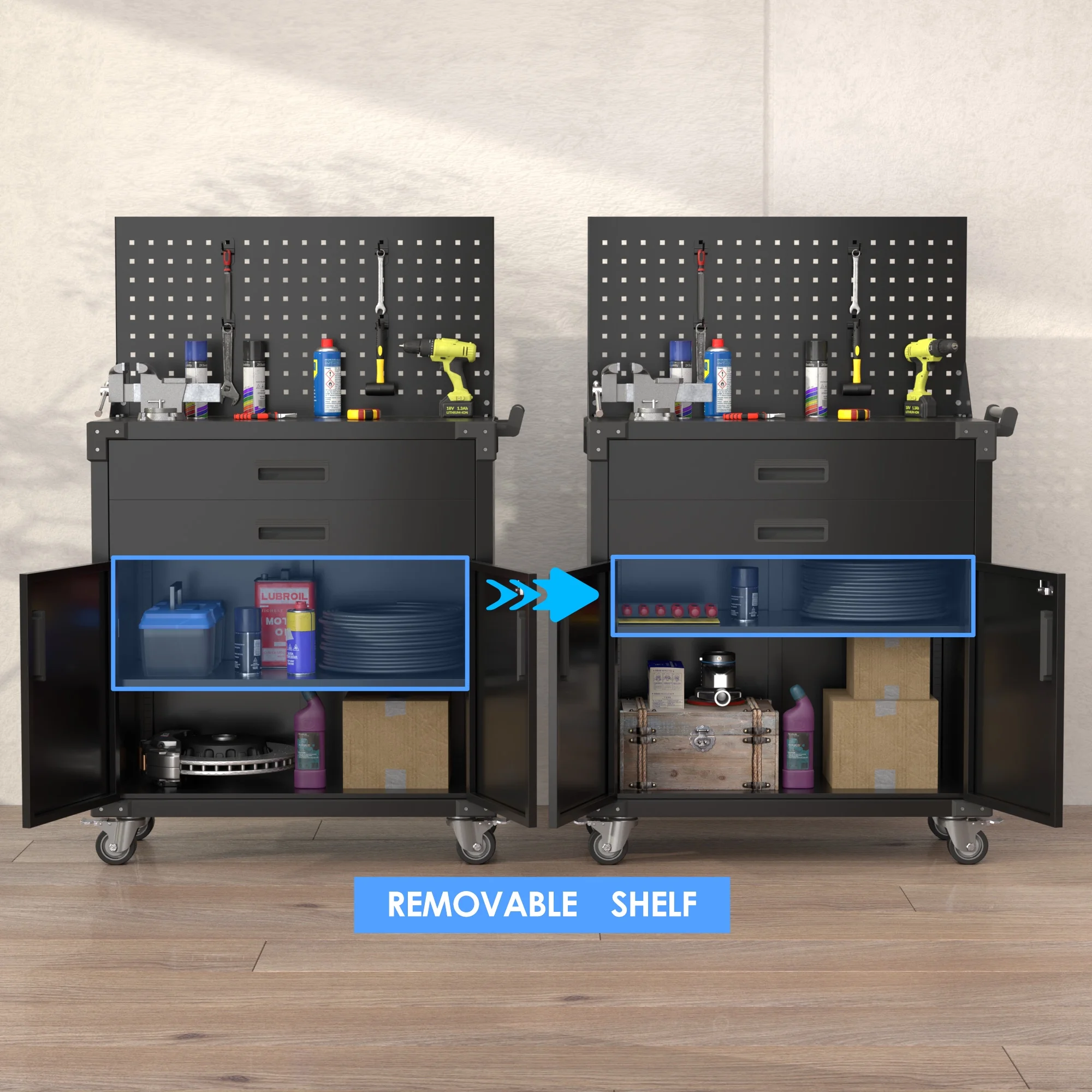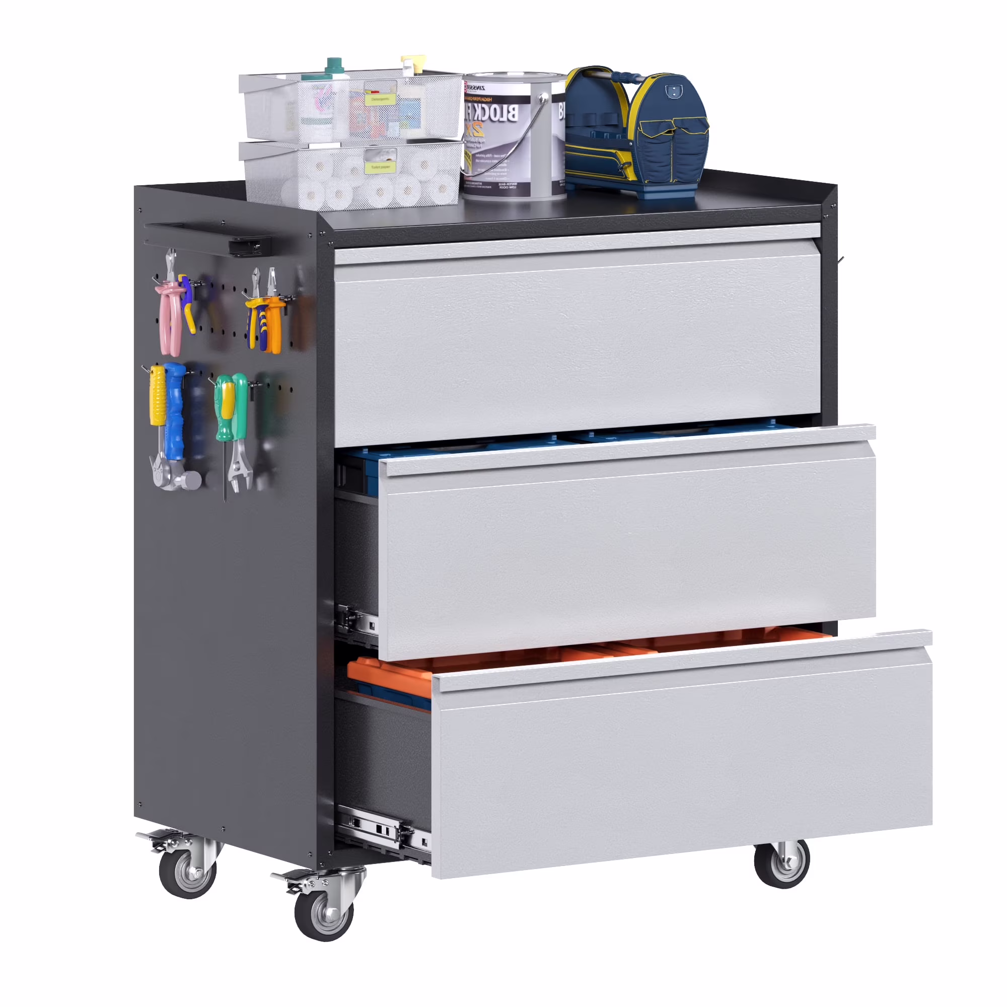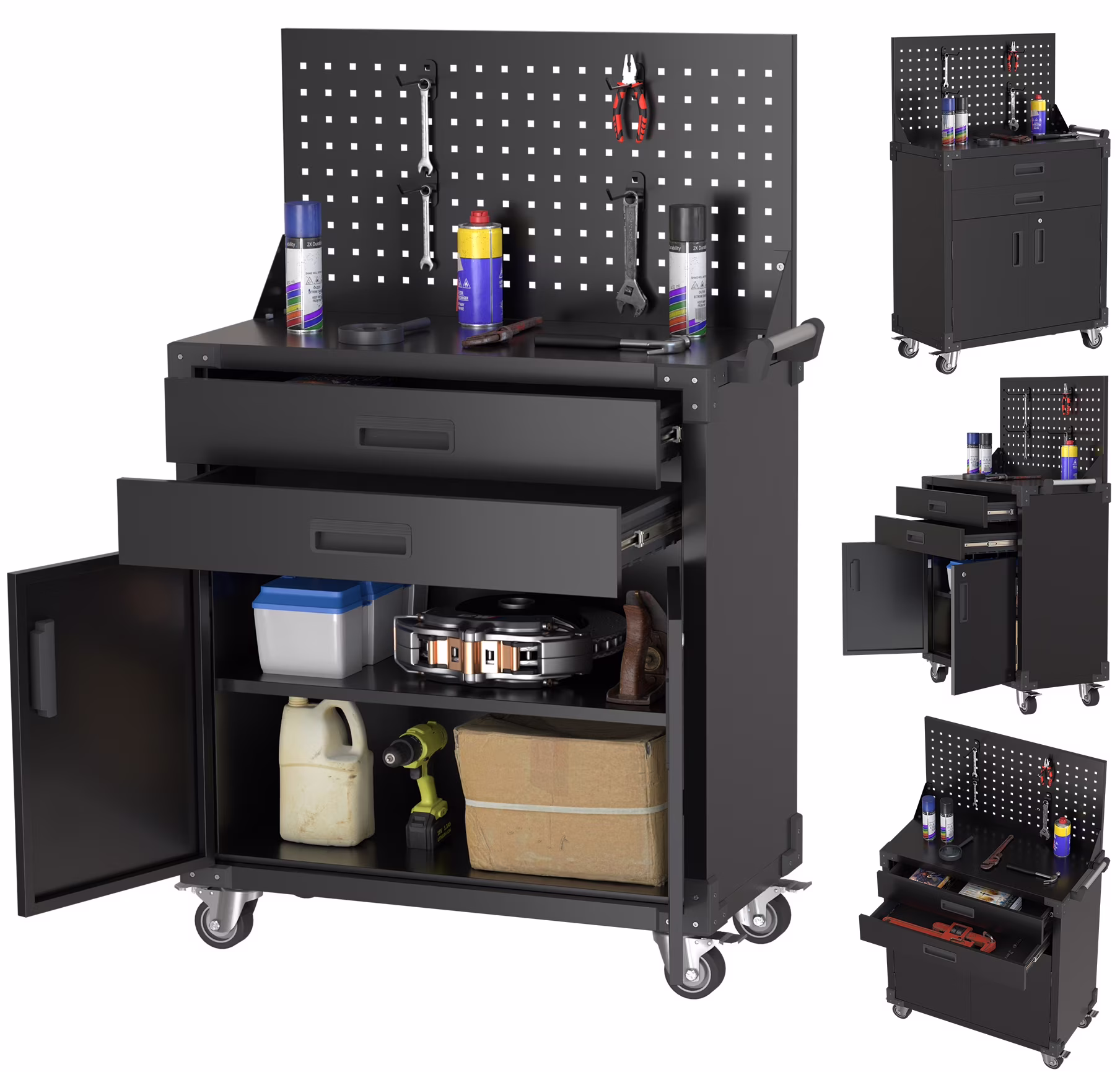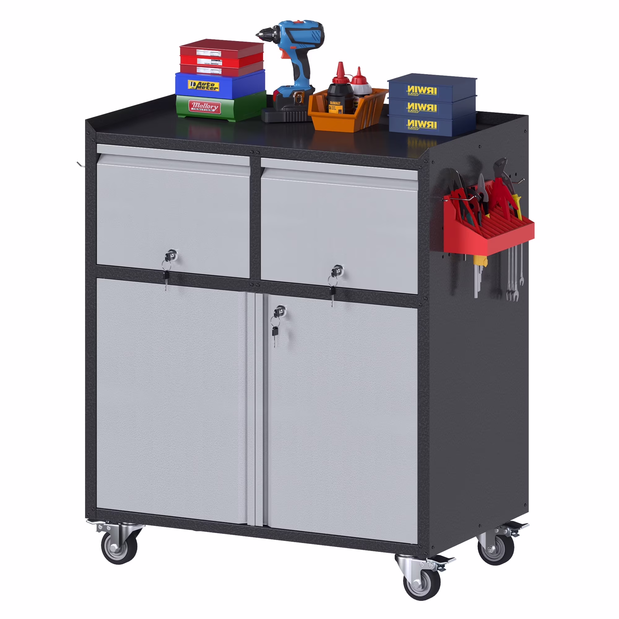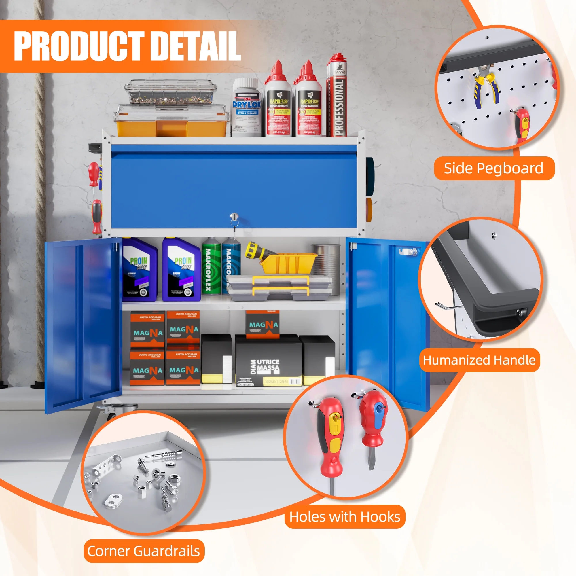 - ��Great Garage Storage Cabinet��Plenty of storage. "great garage cleanup". You can move them around as needed and the casters and wheels work great on all the different surfaces inyour garage. Extra storage strong and fit your needs, it is sufficient for garage use.
