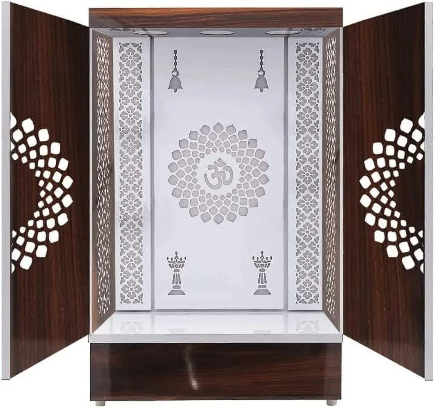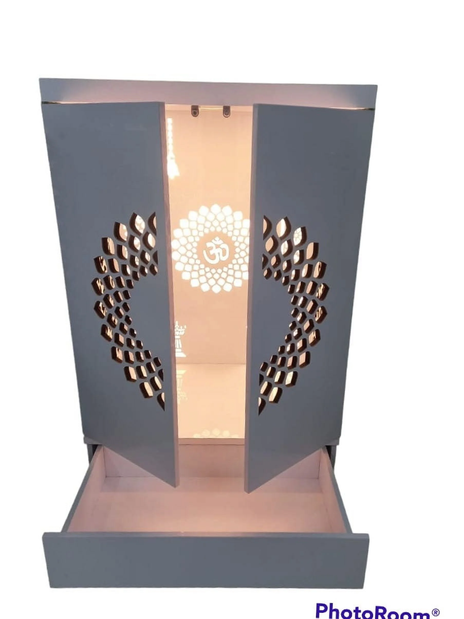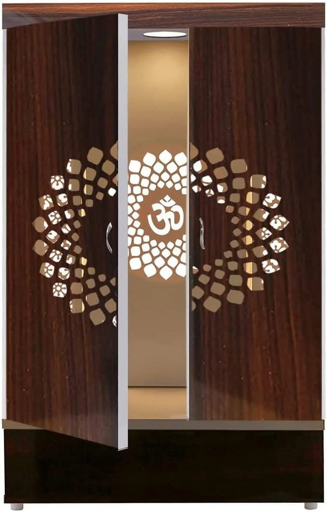Wooden Temple with LED Light for Home & Office Temple | Pooja Mandir Color : Dark Brown,WHITE Style : Modern With Doors And Drawers Material : Medium-density fiberboard (MDF) With PVC Laminated Wall mounted as well as it can be kept on flat floor DUST WITH A Soft Microfiber Cloth Regularly. Or, Mix Water And A Mild Cleaning Solution And Spray Lightly On The Surface. Wipe With A Clean Cloth. In Case Of Manufacturing Defect Or Damage During Transit, Please Let Us Know. BEFORE PLACING Your Order, We Request You To Not Only Measure The Outer Dimensions Of Your Room Space, But Also Measure All Your Idols/Frames To Double Check And Ensure It Fits In The Inner Space Of The Selected Temple. If You Need Assistance, Please Do Not Hesitate To Message LIGHTING : Long Lasting, Hi Illumination Led Lighting Cover All Temple. WALL MOUNTED As Well As It Can Be Kept On Flat Floor Note: - LED ADAPTER POWER PIN IS BASED ON INDIAN STANDARD FOR USING TEMPLE LED LIGHT YOU MAY NEED CONNECTOR ACCORDINGLY YOUR COUNTRY. LED ADAPTER POWER PIN IS BASED ON INDIAN STANDARD FOR USING TEMPLE LED LIGHT YOU MAY NEED CONNECTOR ACCORDINGLY YOUR COUNTRY.Customized Wooden Cabinet Desginer Mandir With LED / Mandir For Home & Office / Temple For Home / Pooja Ghar / Mandir With Lights /Storage