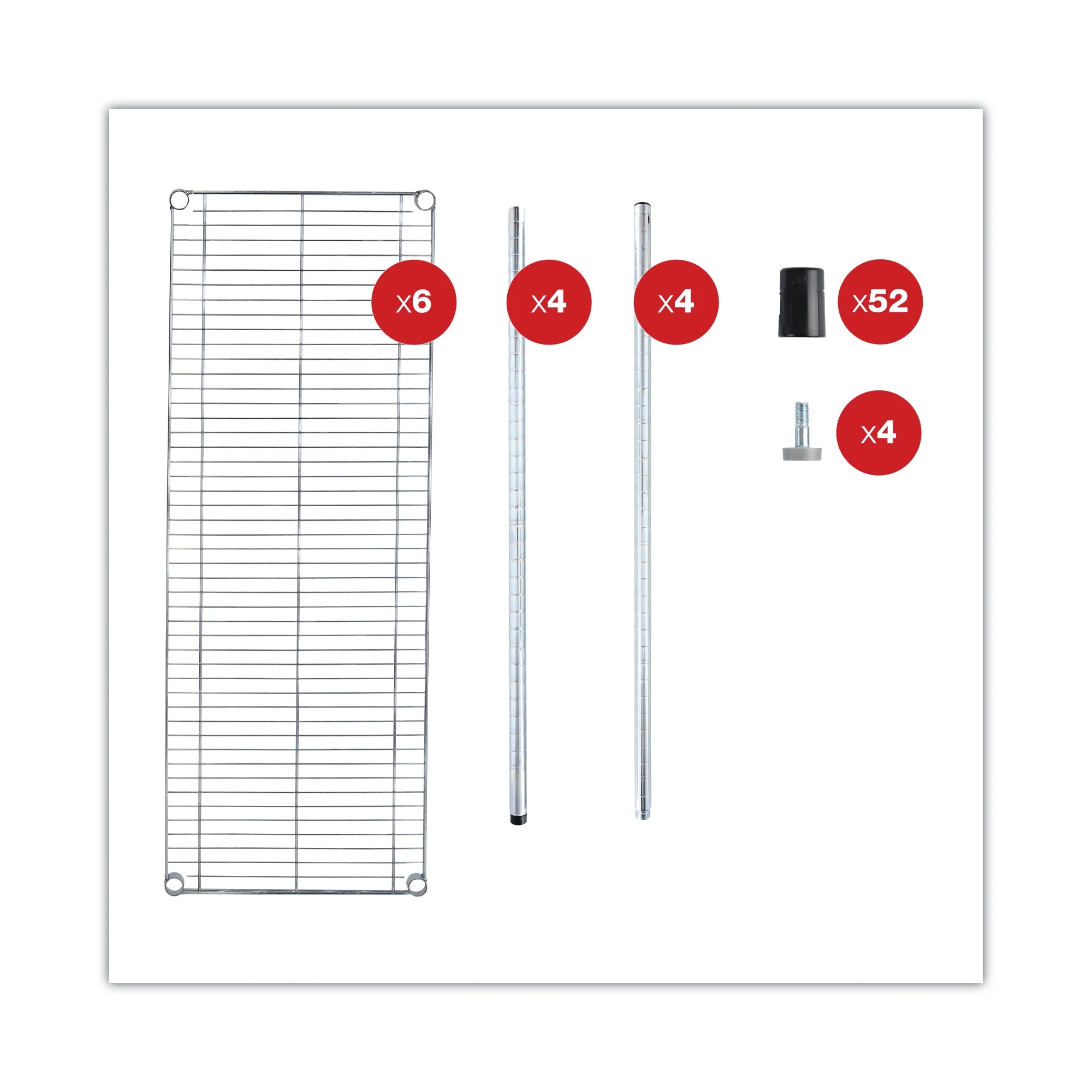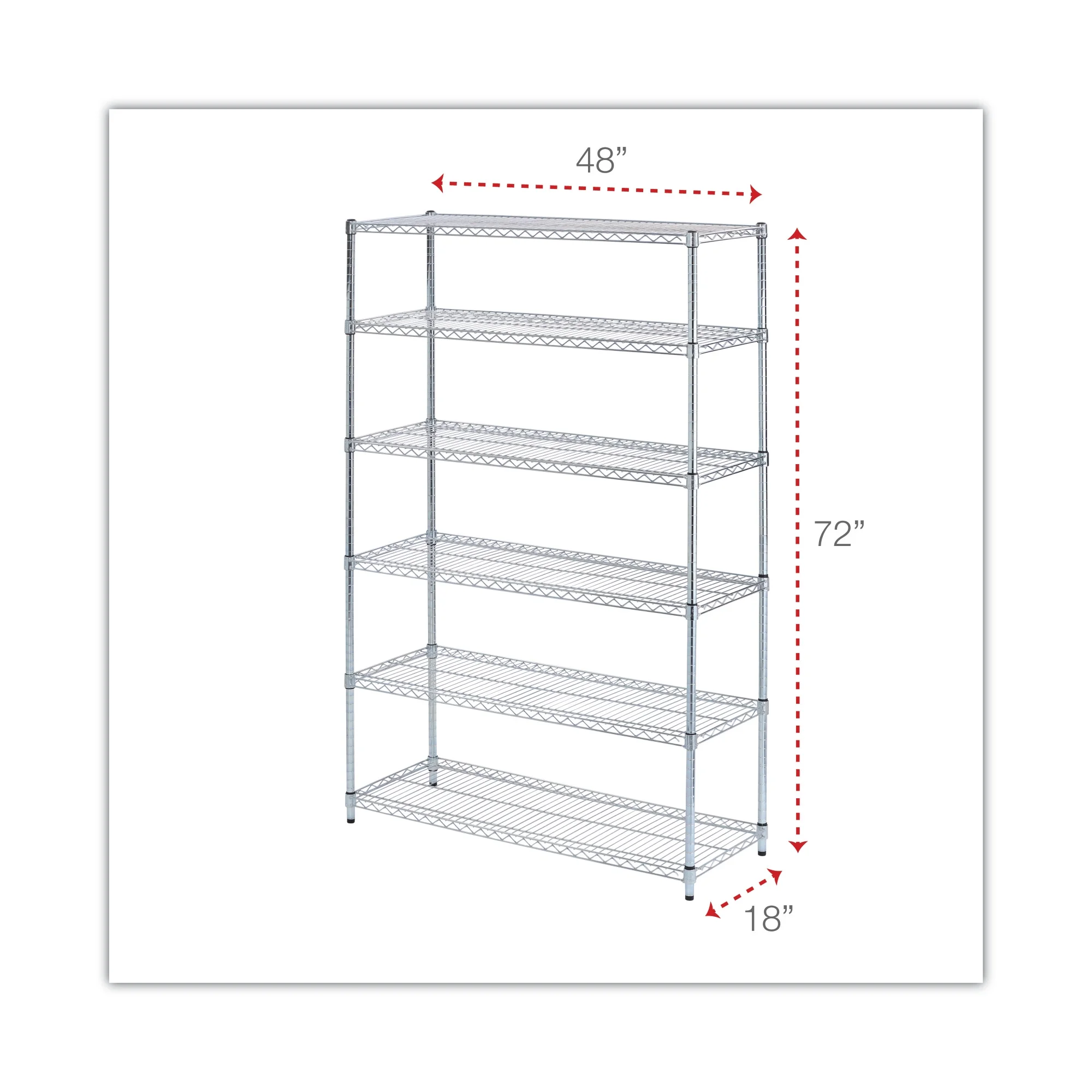 NSF Certified 6-Shelf Wire Shelving Kit, 48w x 18d x 72h, Silver