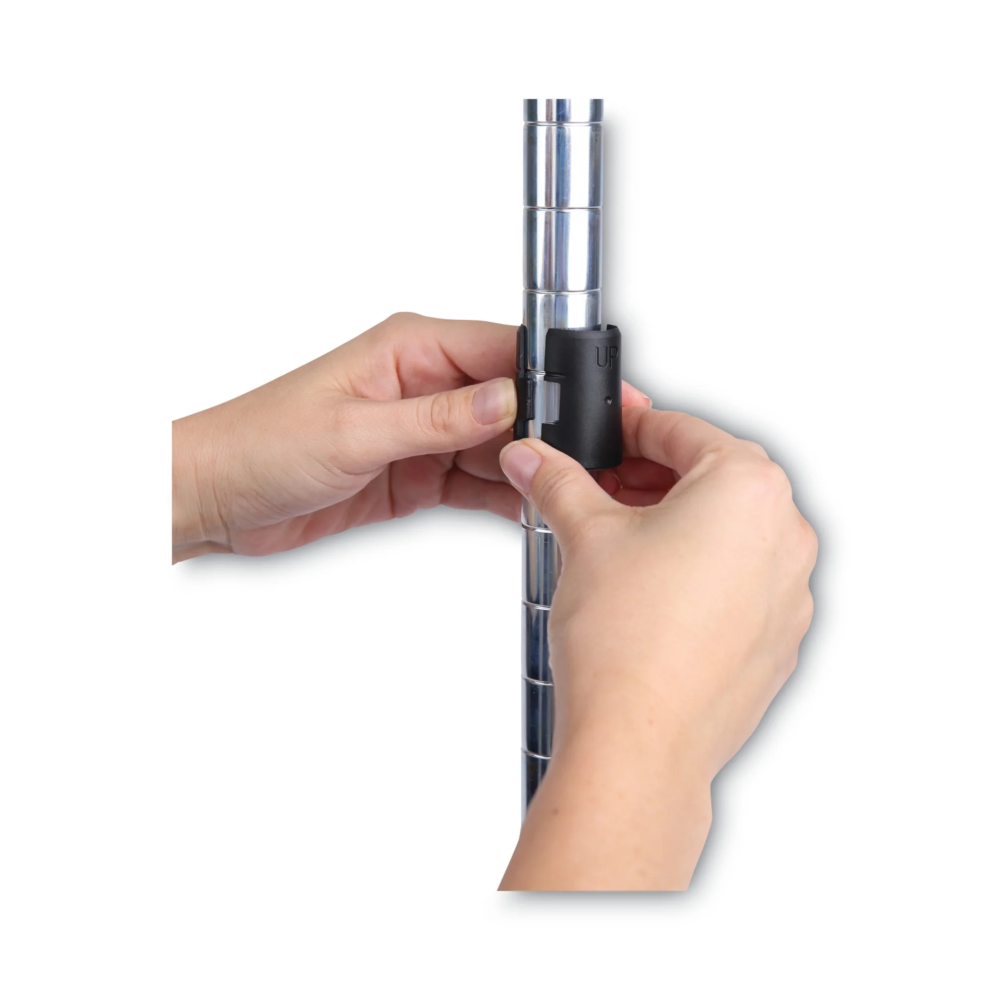 Ideal storage solution for commercial or business use. Snap-together design assembles in minutes. Strong welded wire construction provides exceptional strength and stability. Open design allows air circulation and reduces dust build-up. Includes six shelves, posts, shelf clips and leveling glides. Up to 600 lbs. per shelf (evenly distributed) when used without casters. Casters (2 locking) provide mobility and can be omitted to increase weight capacity of unit.
