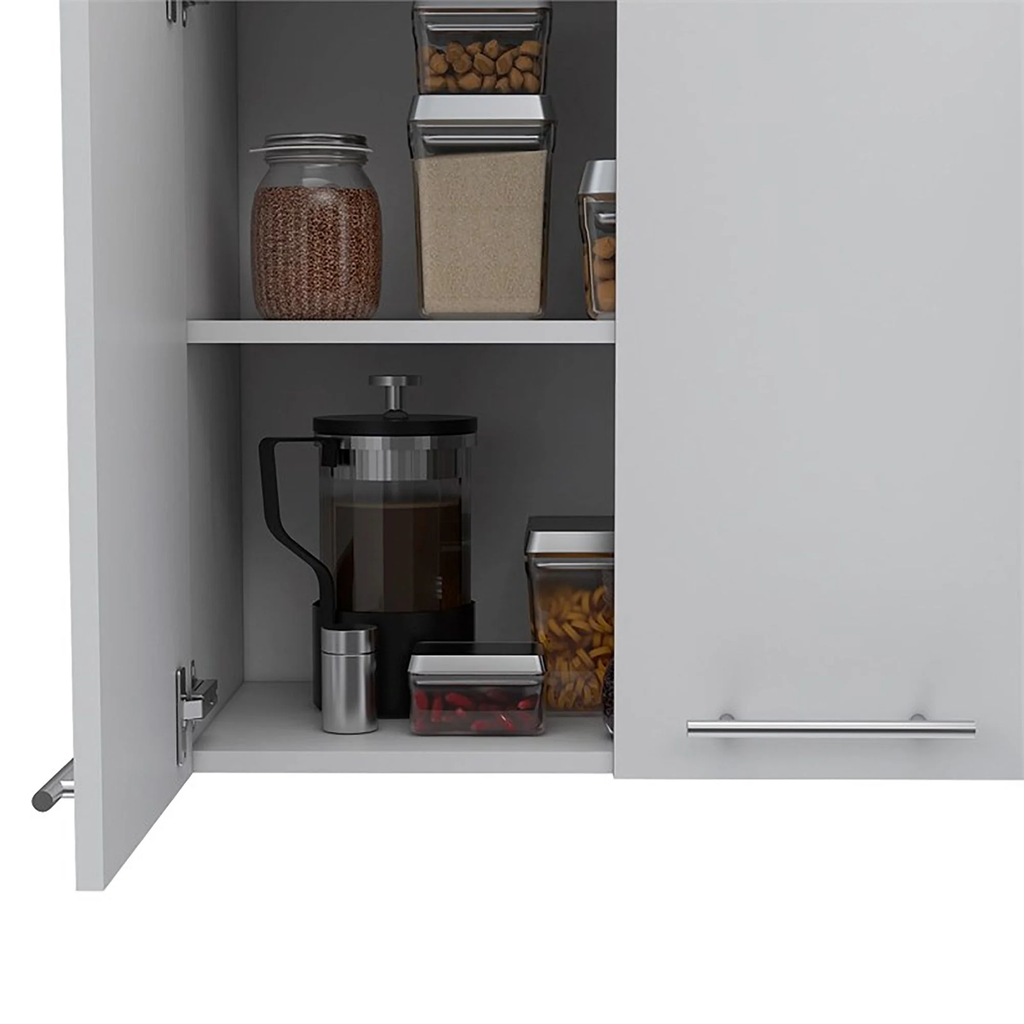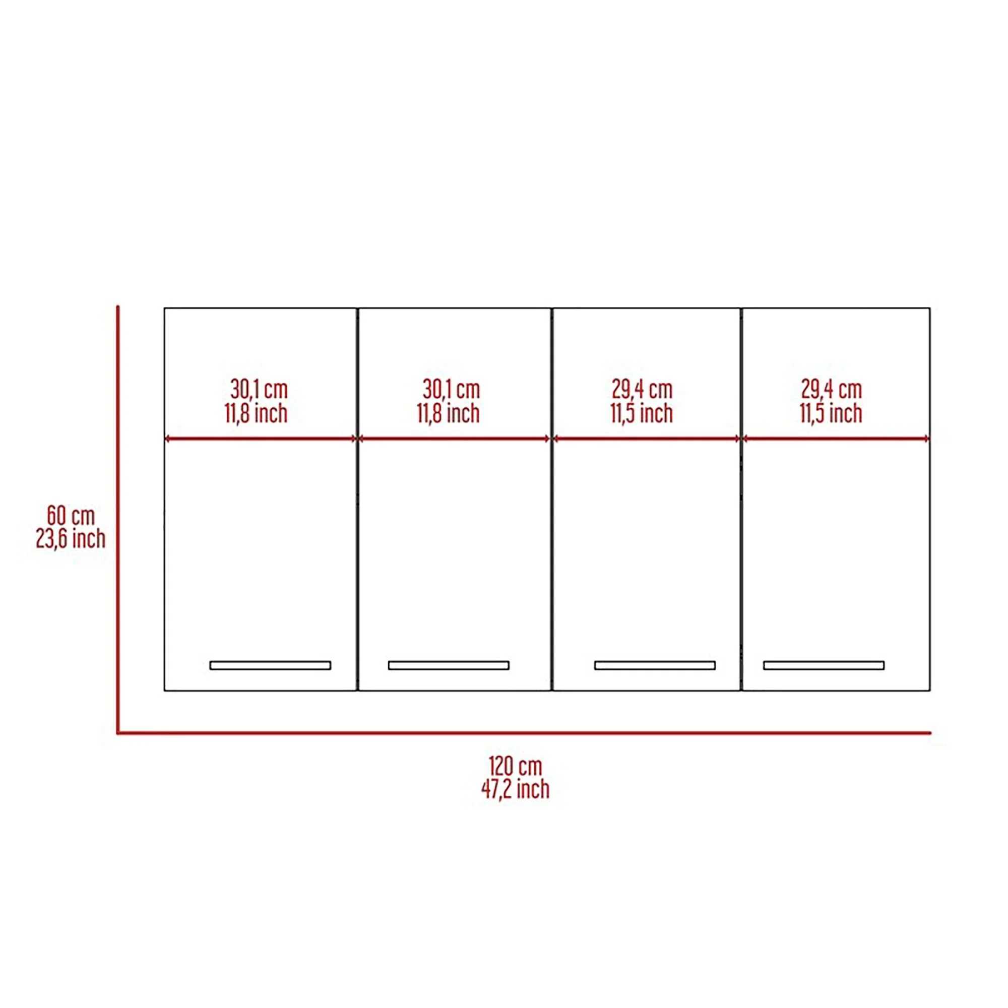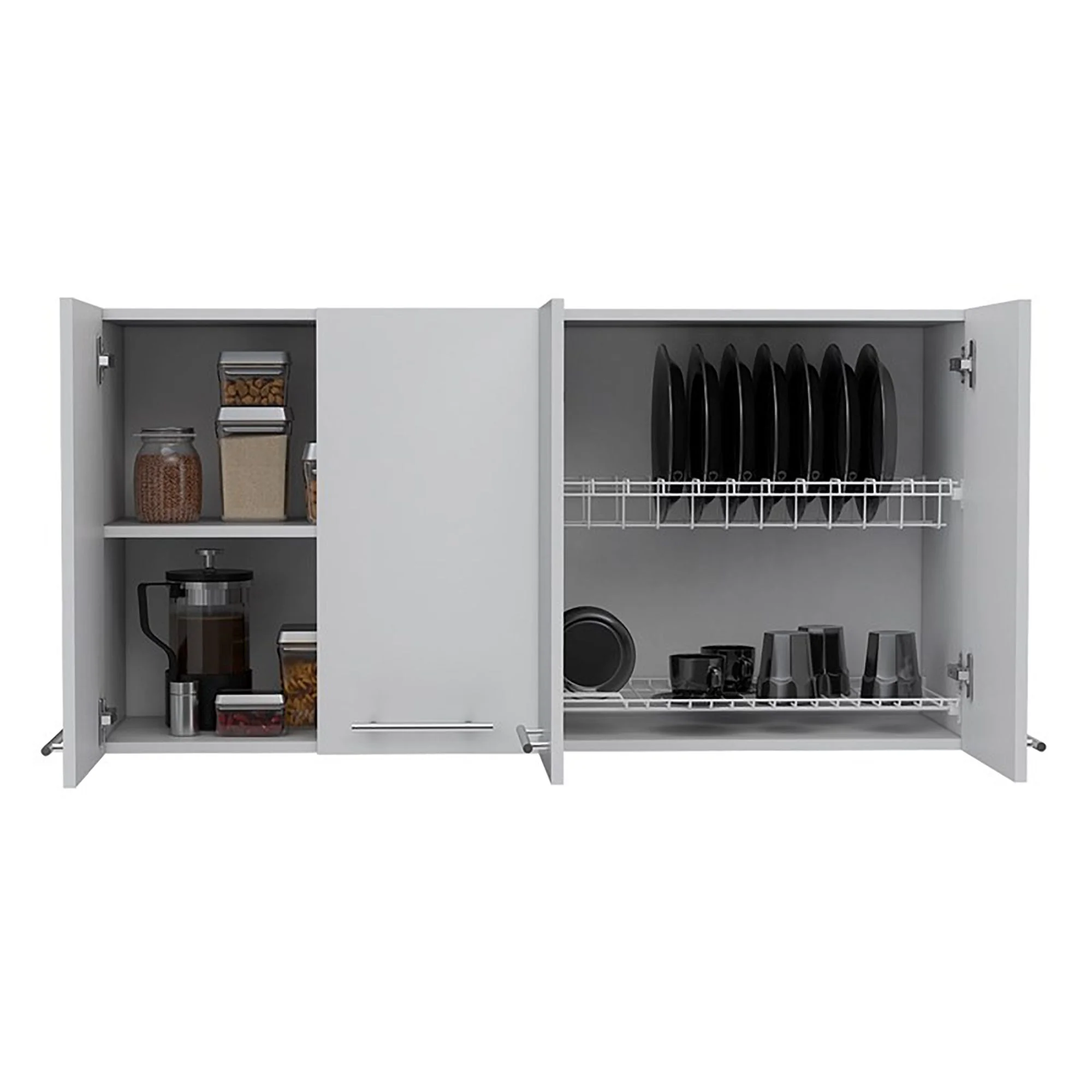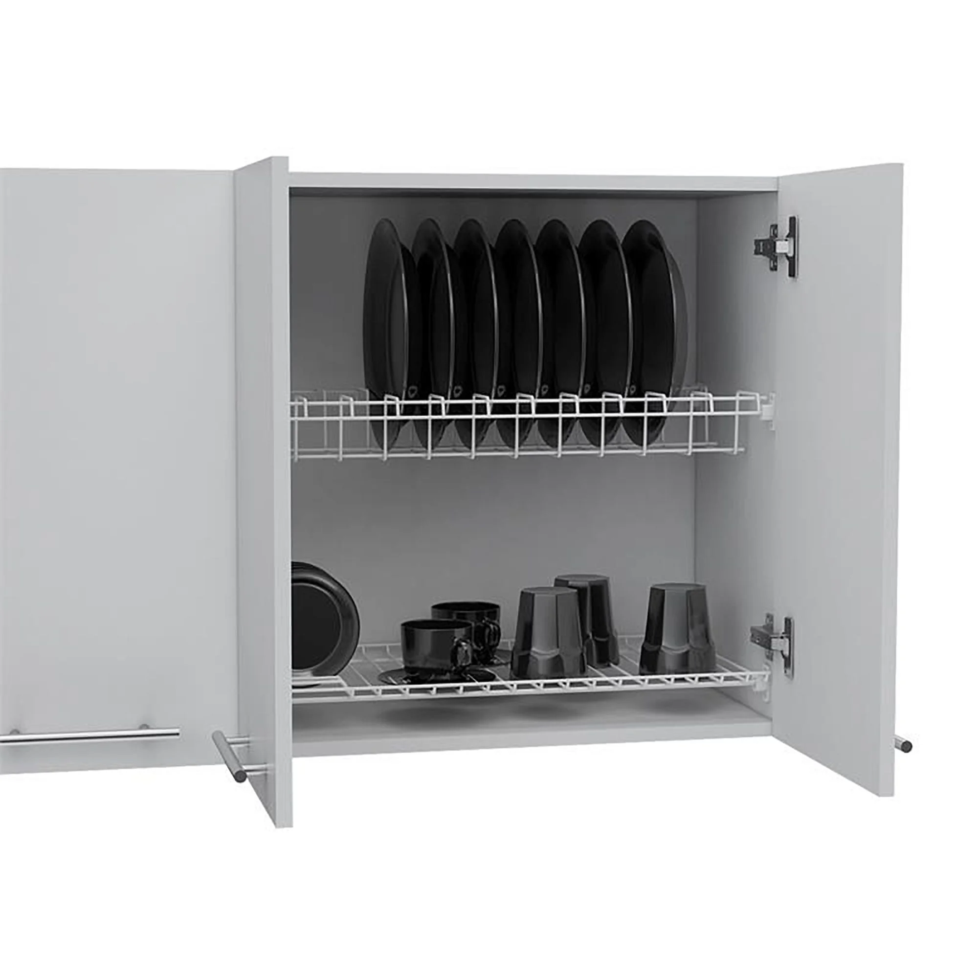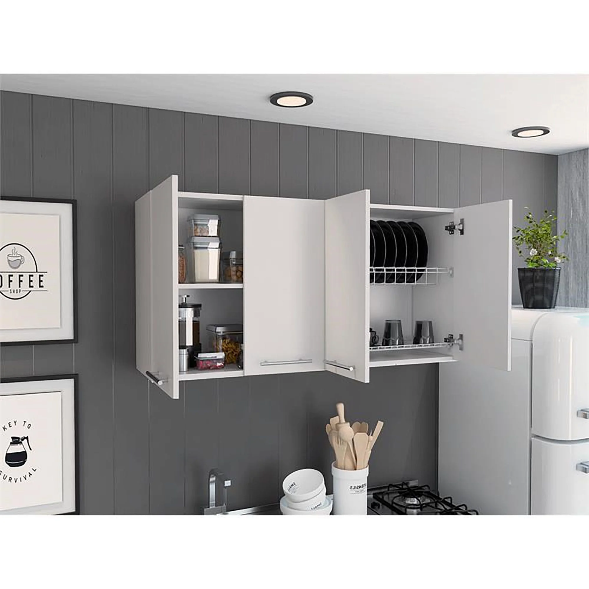 The Tuhome 120 Top Wall Cabinet will give you that extra storage space that you need in your kitchen, garage or mudroom. Two spacious cabinets with four doors. Each cabinet is 23 inches x 23 inches Interior shelves on each cabinet provide you a split space to store items of different sizes. A metal dish rack (10 dishes capacity) and a metal rack for small plates, mugs, and glasses are included. Made with engineered wood, white finish and chrome handles.