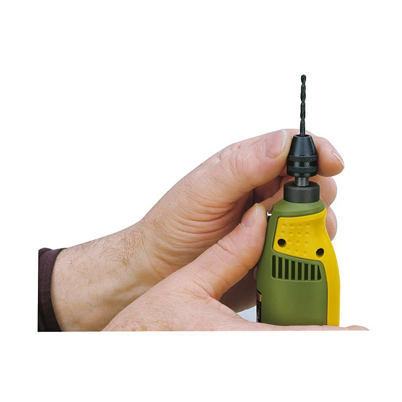 This product can expose you to chemicals including lead, which are known to the State of California to cause cancer and birth defects or other reproductive harm. For more information go to www.P65Warnings.ca.gov (https://www.p65warnings.ca.gov/) .1001 uses for every conceivable operation: milling, drilling, grinding, polishing, brushing, cleaning, deburring, sawing, carving, engraving, rust removal, etc. The maximum speed of 20,000 rpm is continuously variable down to 5,000 rpm. The full-wave electronic speed control results in virtually constant torque, even at lower speeds, which in turn allows for micro drilling. The spindle operates in a precision ball bearing assembly and is fitted with a lock button. The 3/4'' (20 mm) collar fits MICROMOT drill stands and vices. The FBS 115/E is powered by a quiet, high quality, specially balanced permanent magnet motor. The housing is of fibreglass-reinforced POLYAMIDE. The improved ergonomic design with the soft grip two component material allows for optimal control while working. Comes complete with 43 bits and cutters, in a durable plastic case. Technical data: Speed Variable (5,000 to 20,000 rpm), Keyless Chuck 1/64'' - 1/8'' (0,3 - 3,2 mm), Max Power 1/8 hp (100 W), Volts 110 - 120V AC, 60 Hz, Length 8 1/2'' with chuck (220 mm), Weight 1.2 lb (540 g), Complete with 43 high quality bits and cutters in a durable plastic case. Note: The FBS 115/E may also be fitted with the optional MICROMOT Steel Collets (NO 28 940) that the FBS 115/E is equipped with, is also available individually .- SKU: PXTECH239