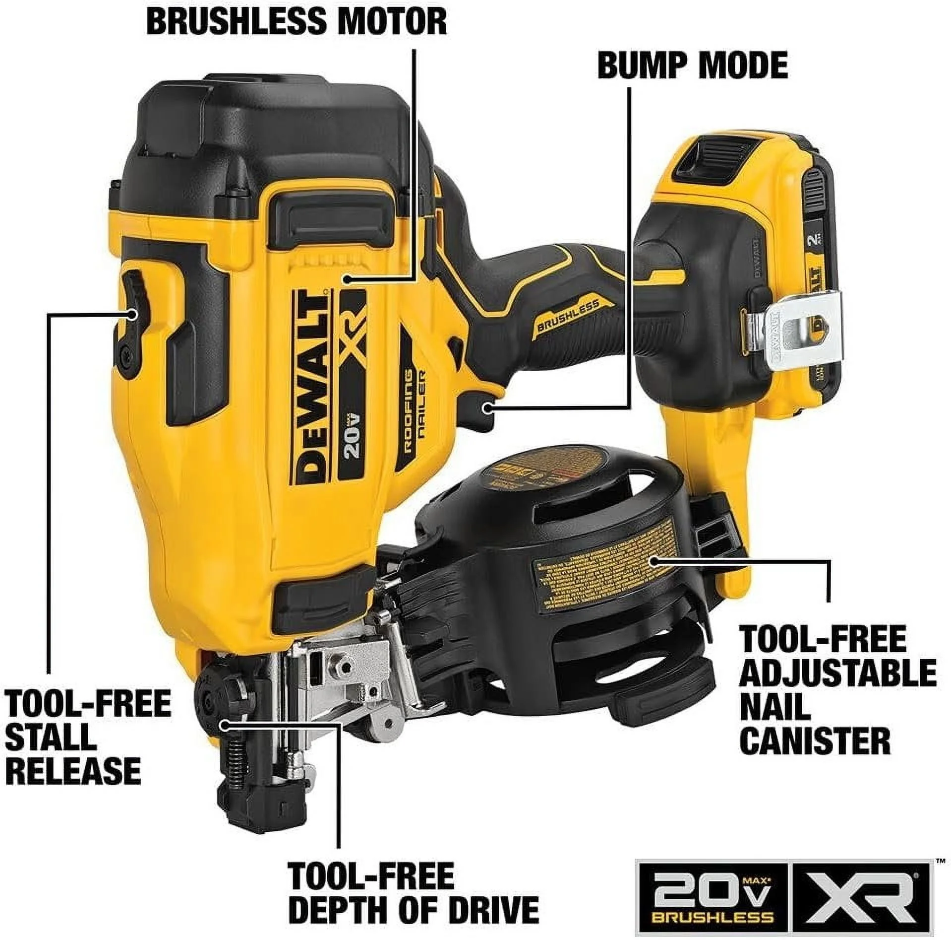 - Tool-free nail tray easily adjusts to accommodate the full range of roofing nails