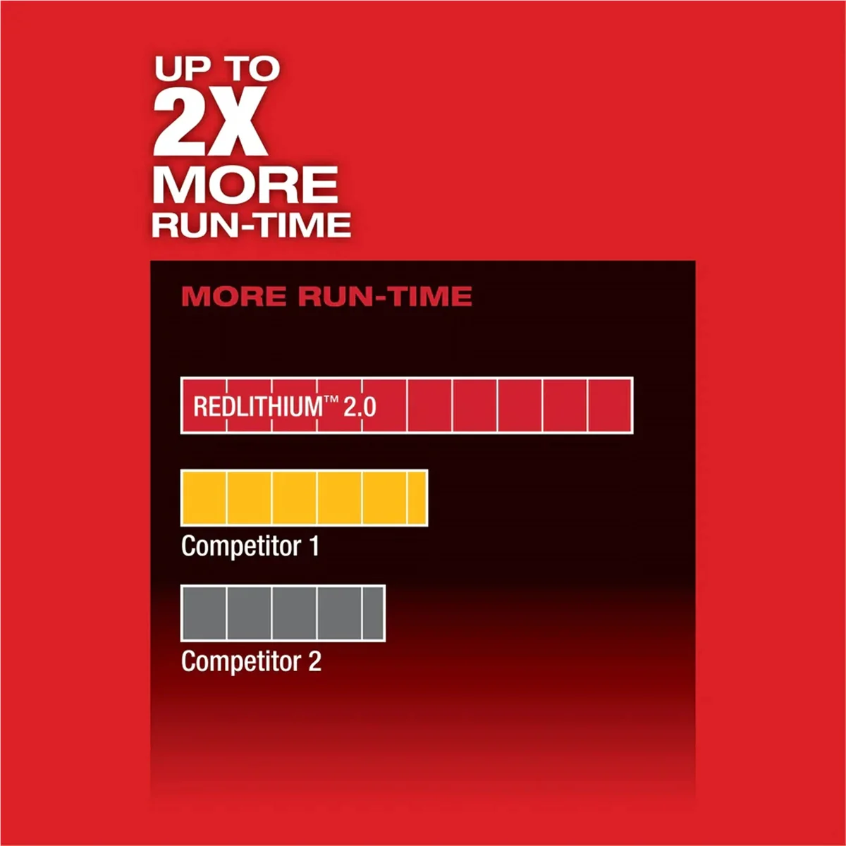 - REDLITHIUM? 2.0 Battery Technology: Superior pack construction, electronics, and performance deliver more work per charge and more work over pack life than any battery on the market