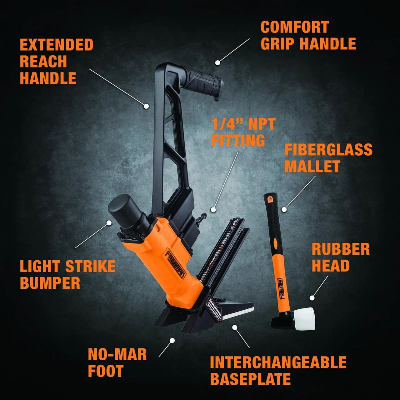 - Increase Productivity Even More: Add the Freeman PFNRB Flooring Nailer Roller Base Converter when purchasing this tool