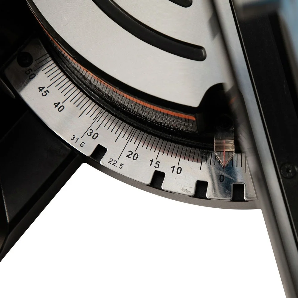 - Dual bevel capability with up front controls to maximize cutting of compound angles.