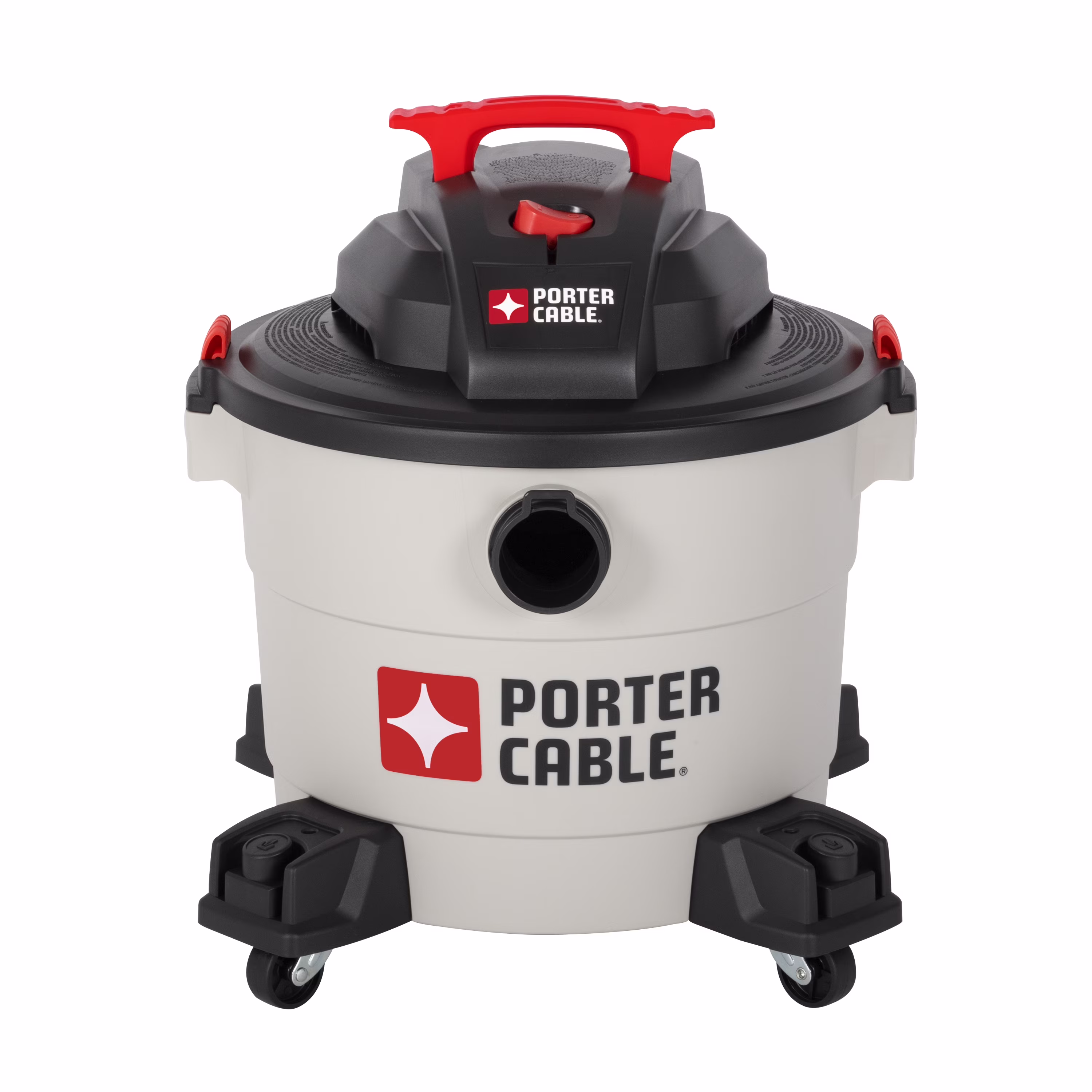 The Porter Cable 10 Gallon polypropylene vacuum is equipped with a peak horsepower of 5. It��s great for both wet and dry pick-up duties. With its flexible and detachable 8-foot hose and wheels they��re perfect for moving around just anywhere and great for storage. It��s great for suction and blowing.