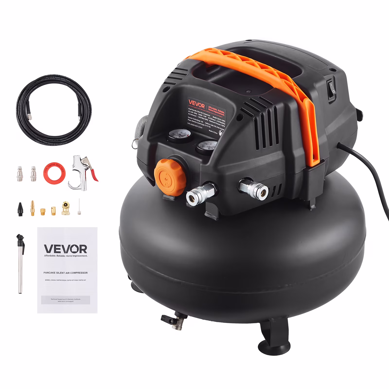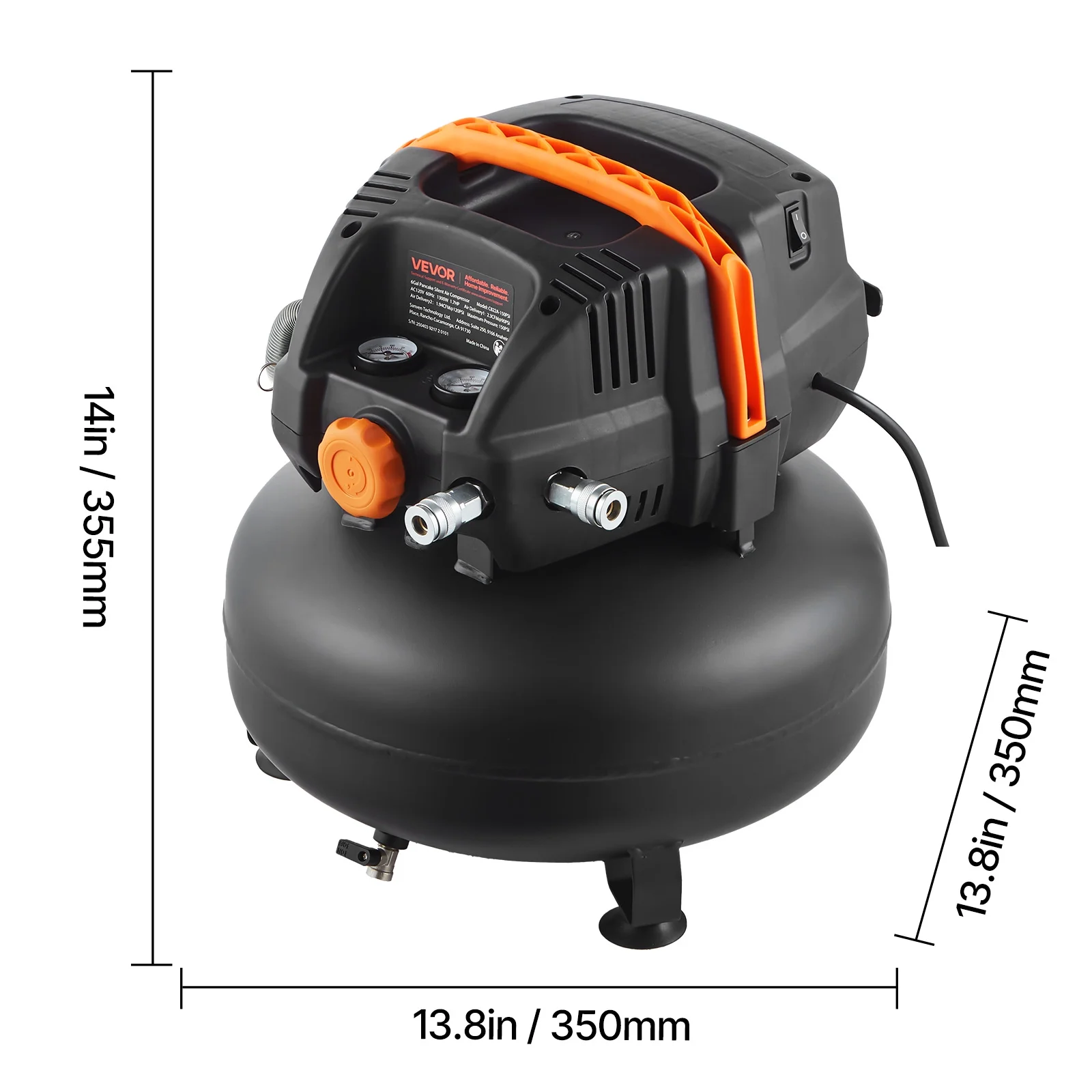 VEVOR 6 Gallon Air Compressor, 1.7HP 2.3cfm@90psi Portable Pancake Air Compressor & 150PSI Max Pressure, 12 - Piece Accessory Kit with 25FT Air Hose for Tire Inflation, Spray Painting, Woodwork Nailing