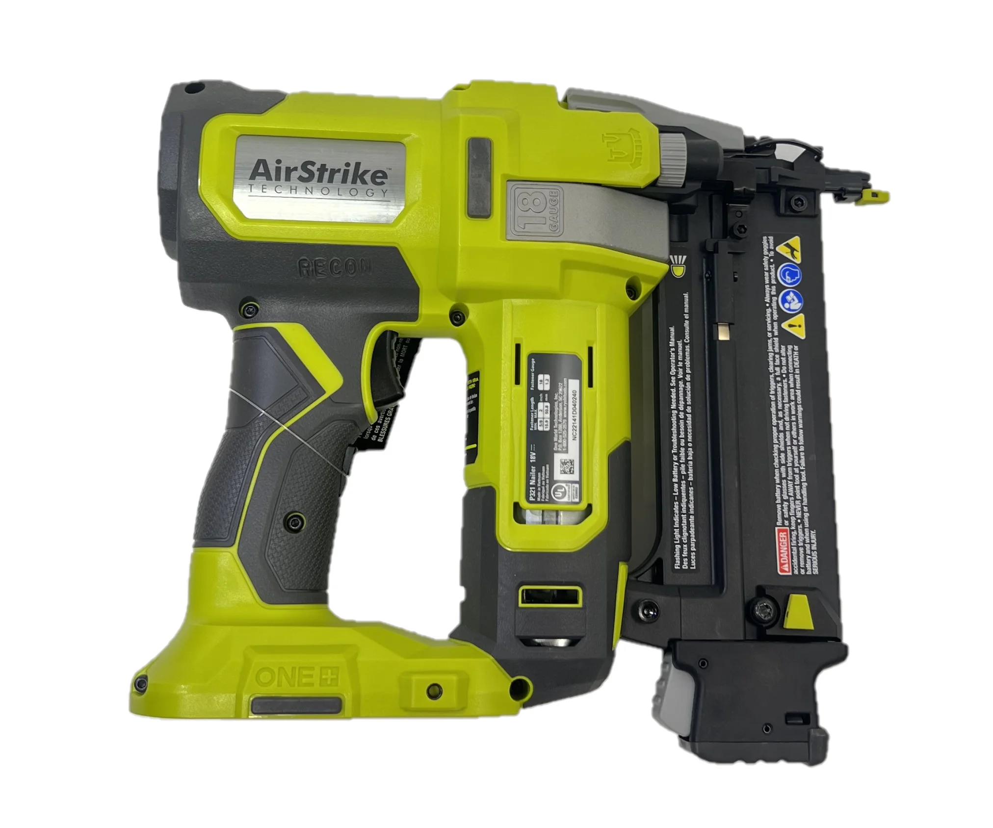 The RYOBI P321 Brad Nailer is capable of sinking up to 2 in. nails in hardwood. Additionally, it is the lightest cordless brad nailer in its class, which helps prevent user fatigue. This nailer allows for extended periods of continuous work, it offers a 45% smaller nose for tight spot access and superior drive quality, compared to P320. There is also a tool-free depth of drive adjustment that allows for proper setting of nail heads. Great for window, door, and cabinet trim. Battery and charger style may vary. Ryobi 18 Volt battery and charger included in this kit. Bare tool P321 nailer weighs 5.2 lbs., with battery the nailer weighs 6.1 lbs. This item is removed from retail packaging for shipping purposes (Bulk Packaged) and will arrive in a generic package, no retail packaging. Nails not included.