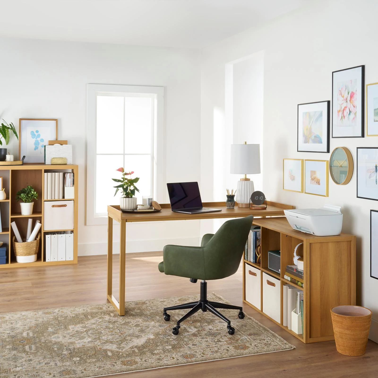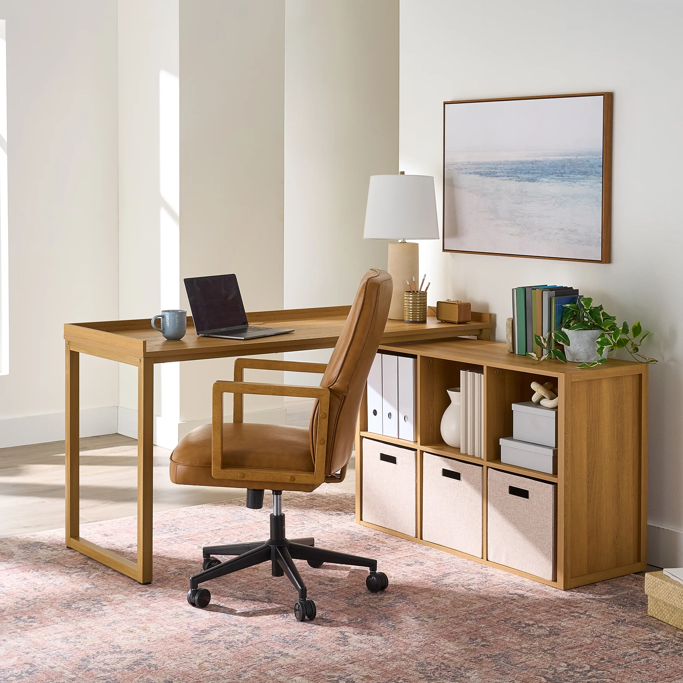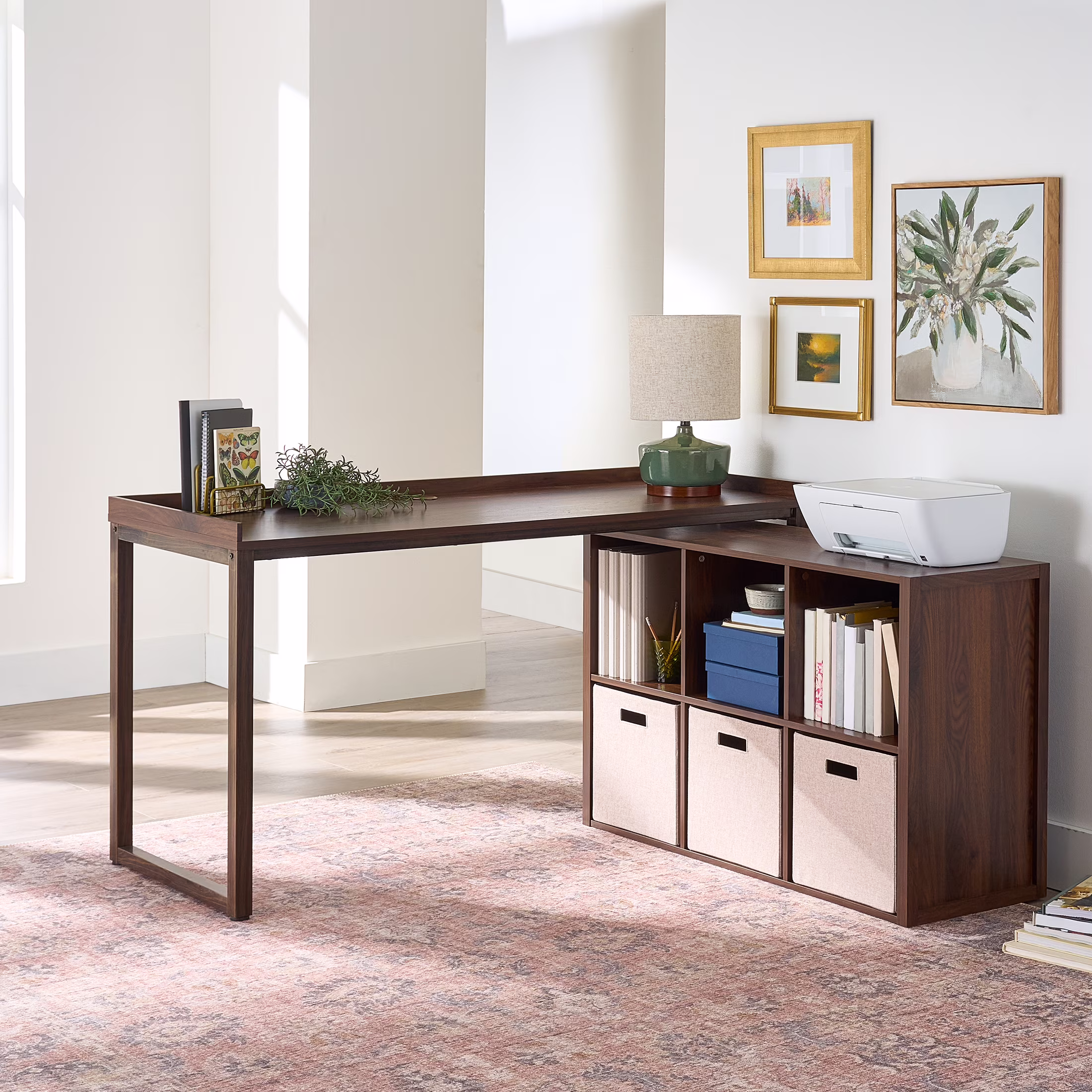 - Better Homes & Gardens Ezra Modular L-Desk with 6-Cube Storage, Walnut Finish