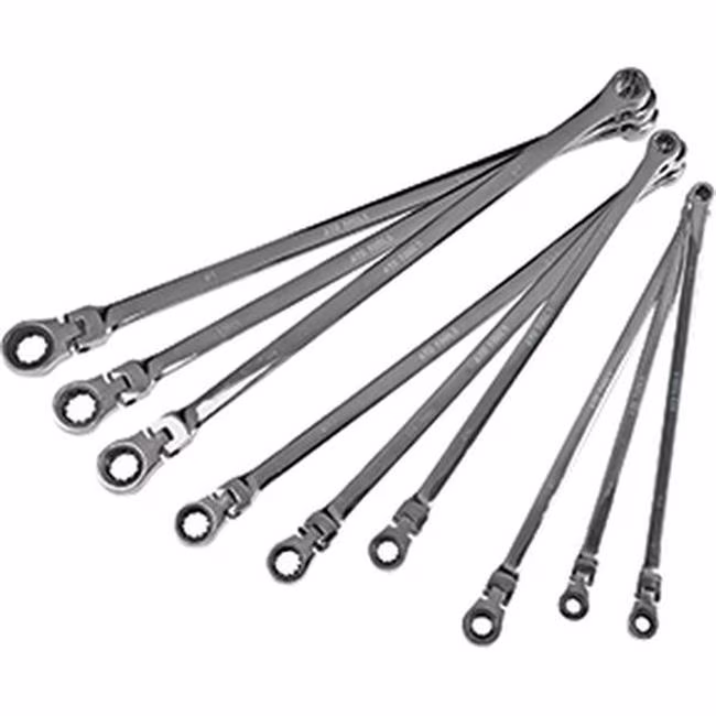 Features- Flex Head Spline Ratcheting Box End Wrench Set SAE