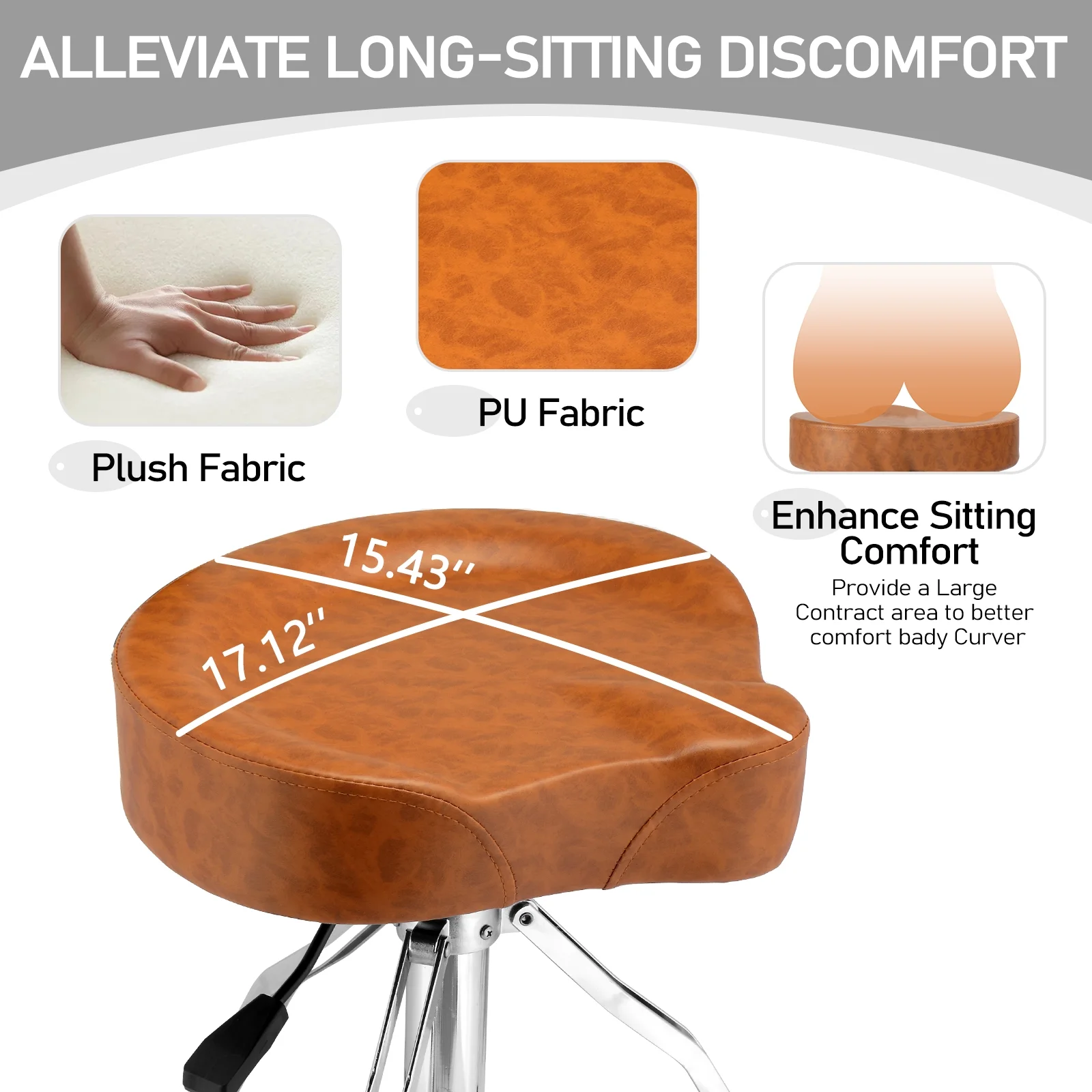 Ergonomic Design with Extra Thick Cushion: This drum stool features an ergonomic saddle-shaped cushion and a 9.8cm thick sponge for ultimate comfort during long practice sessions, reducing pressure on your body.