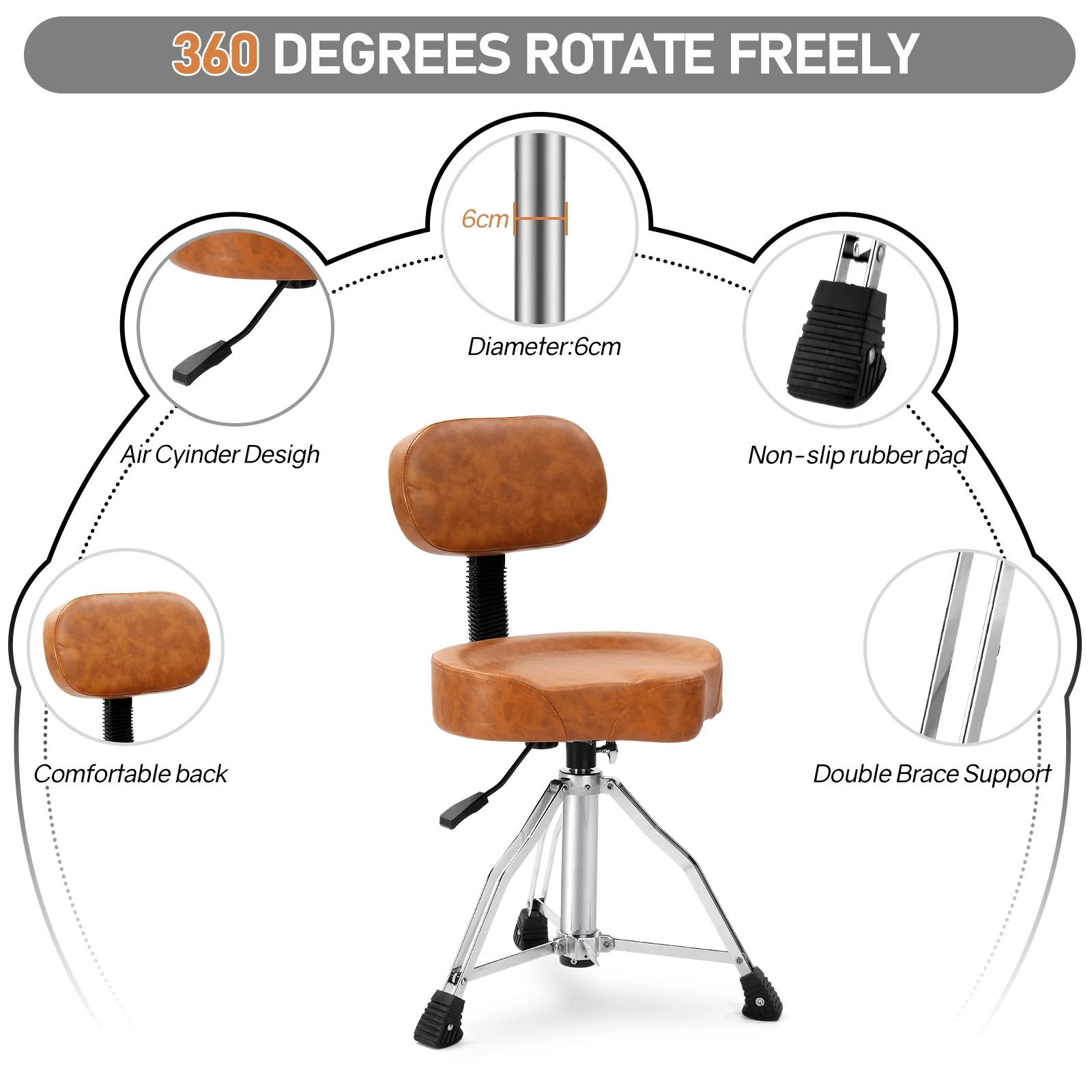 The Drum stool is worth your attention! It is a 360-degree freely rotating drum stool, which is very convenient. And can be raised and lowered suitable for a variety of heights. The most important thing is not only the design of saddle-shaped cushion, which is ergonomic, but also the extra thick sponge cushion, which makes it more comfortable to sit. 0It can be used for home, classroom, concert.
