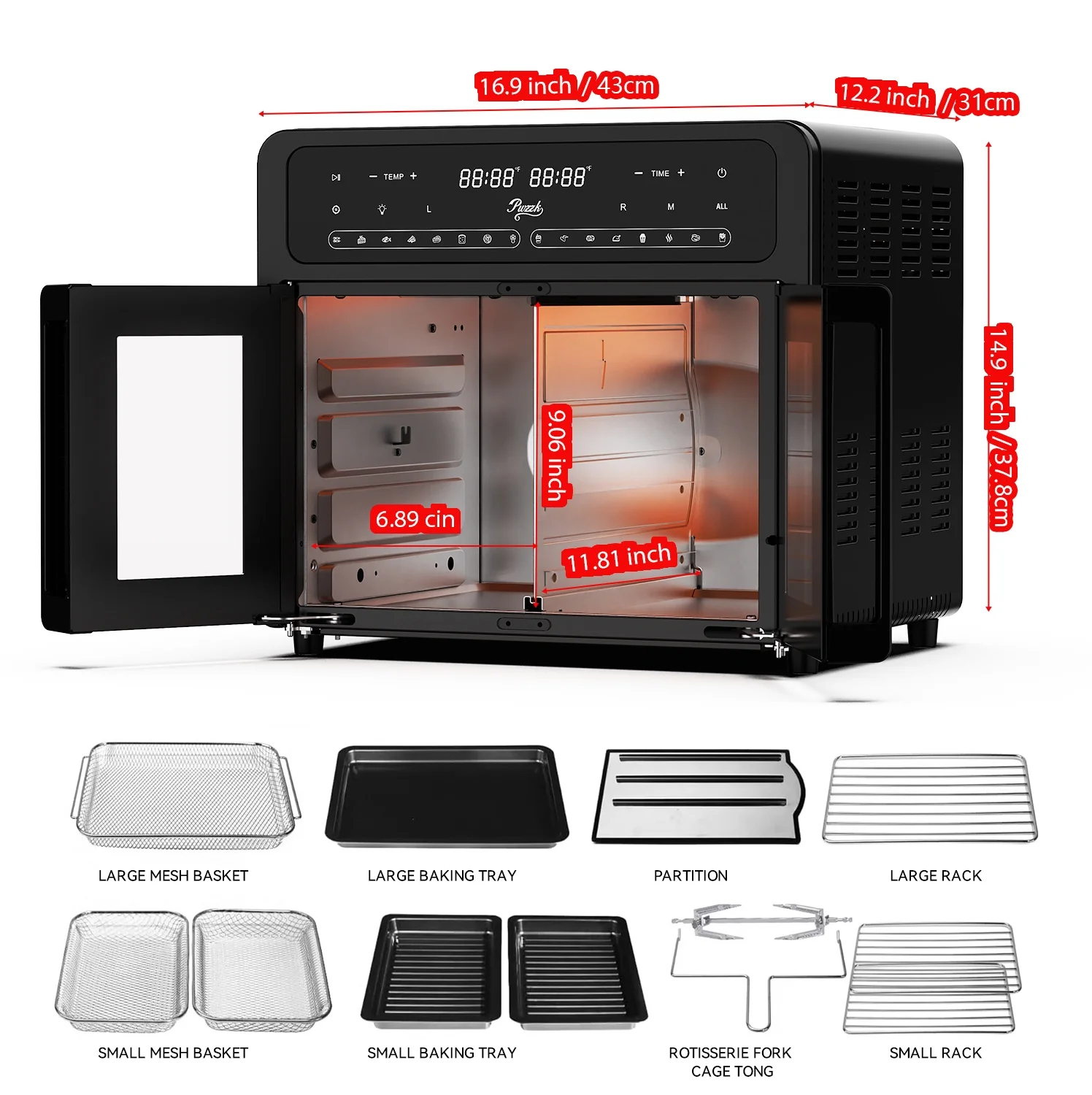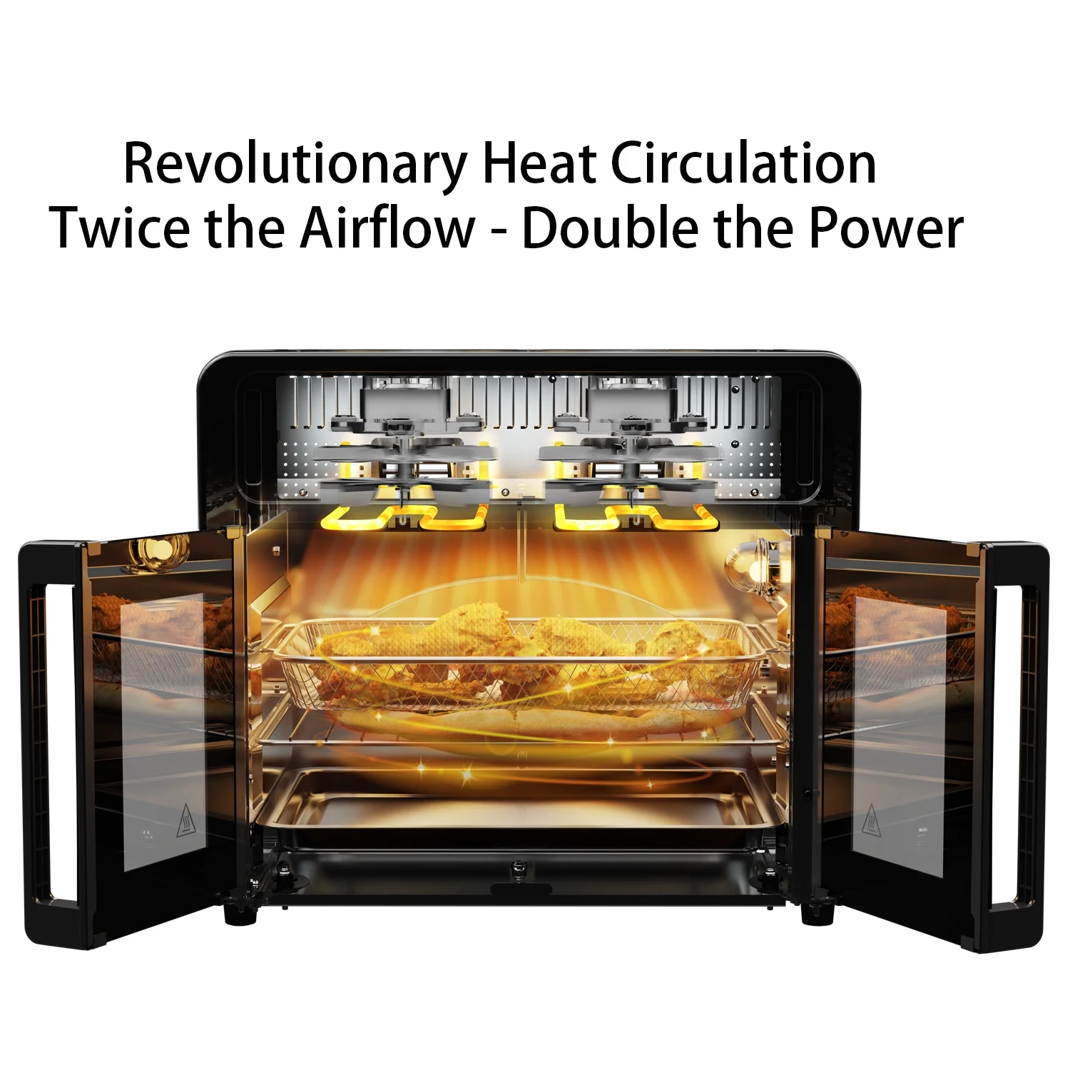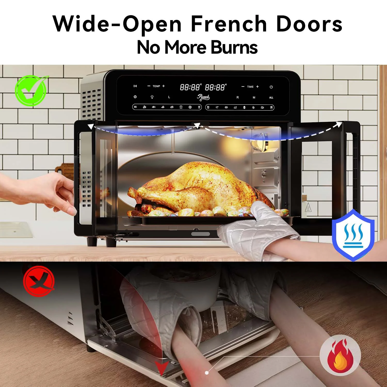 Pwzzk 25.4QT Dual Zone Air Fryer Toaster Oven Combo, French Glass Door, XL Capacity, 100 - 430F Temperature Range, 16 Preset Functions, LED Display, Dual Fan, 360 Heat Circulation, Rotisserie, Bake