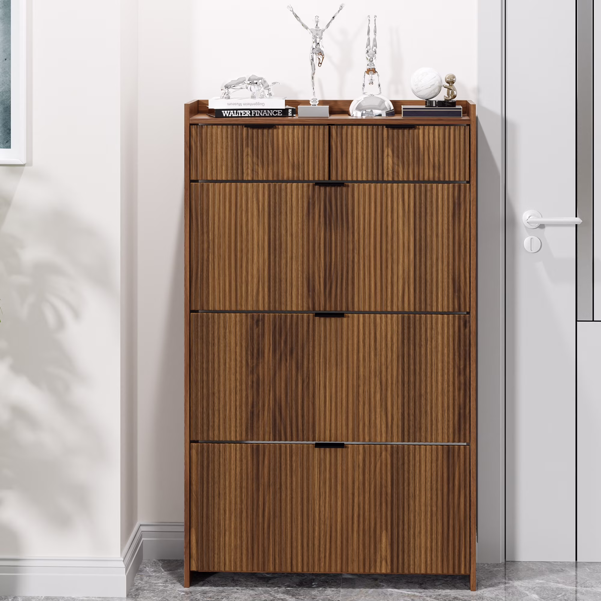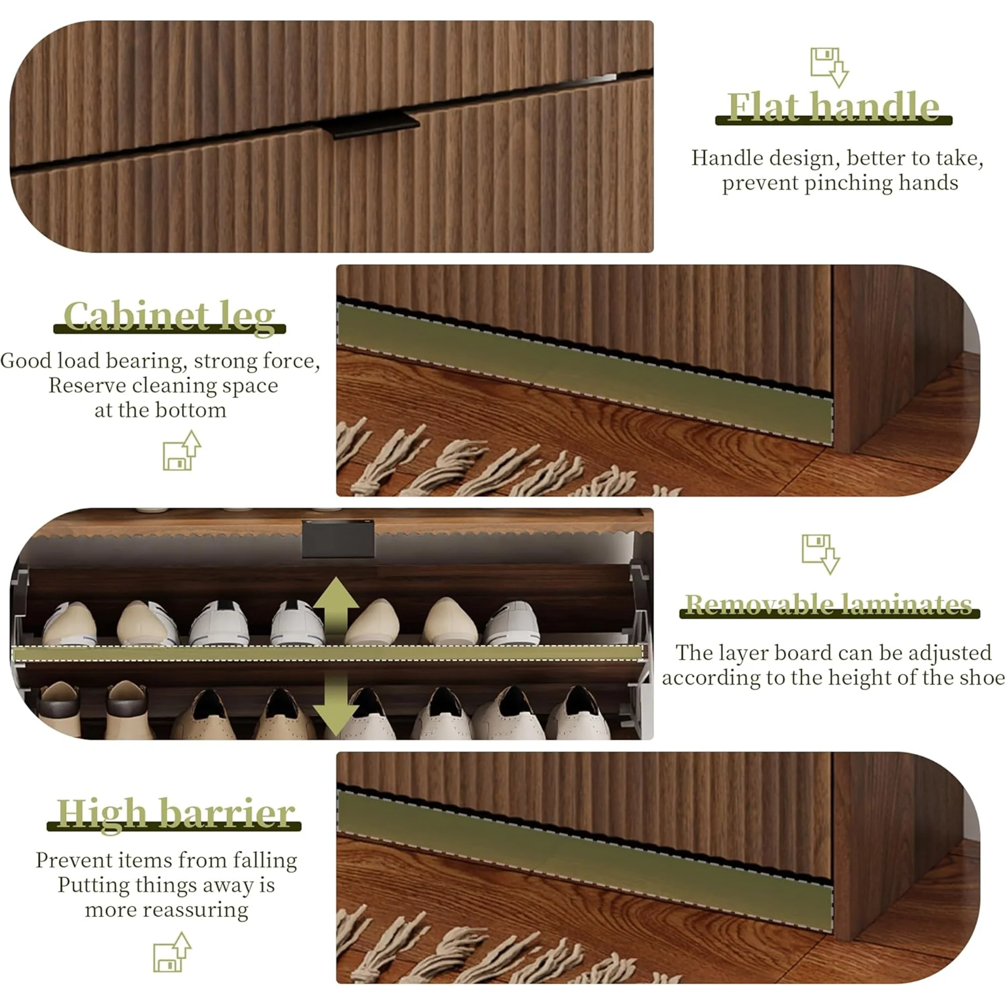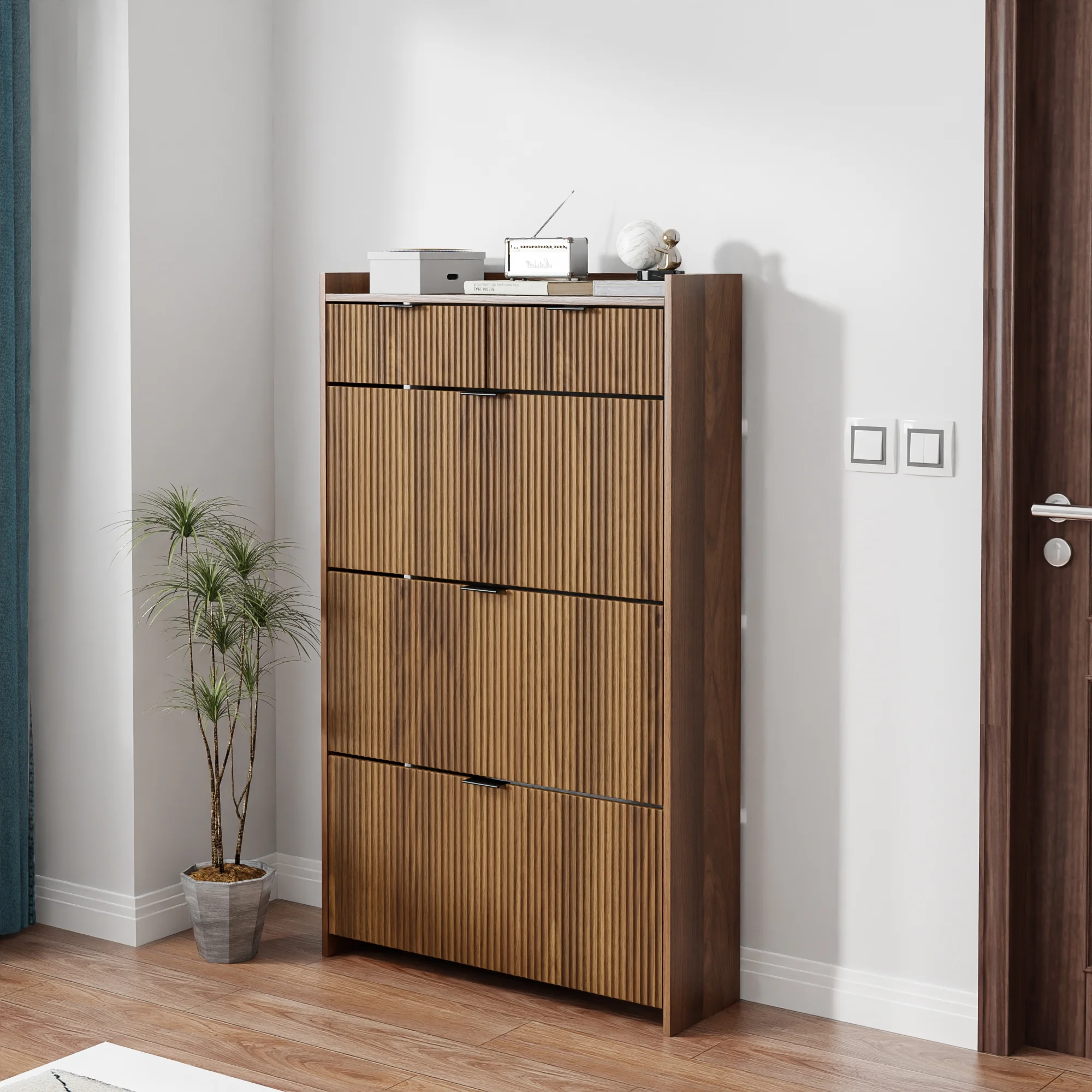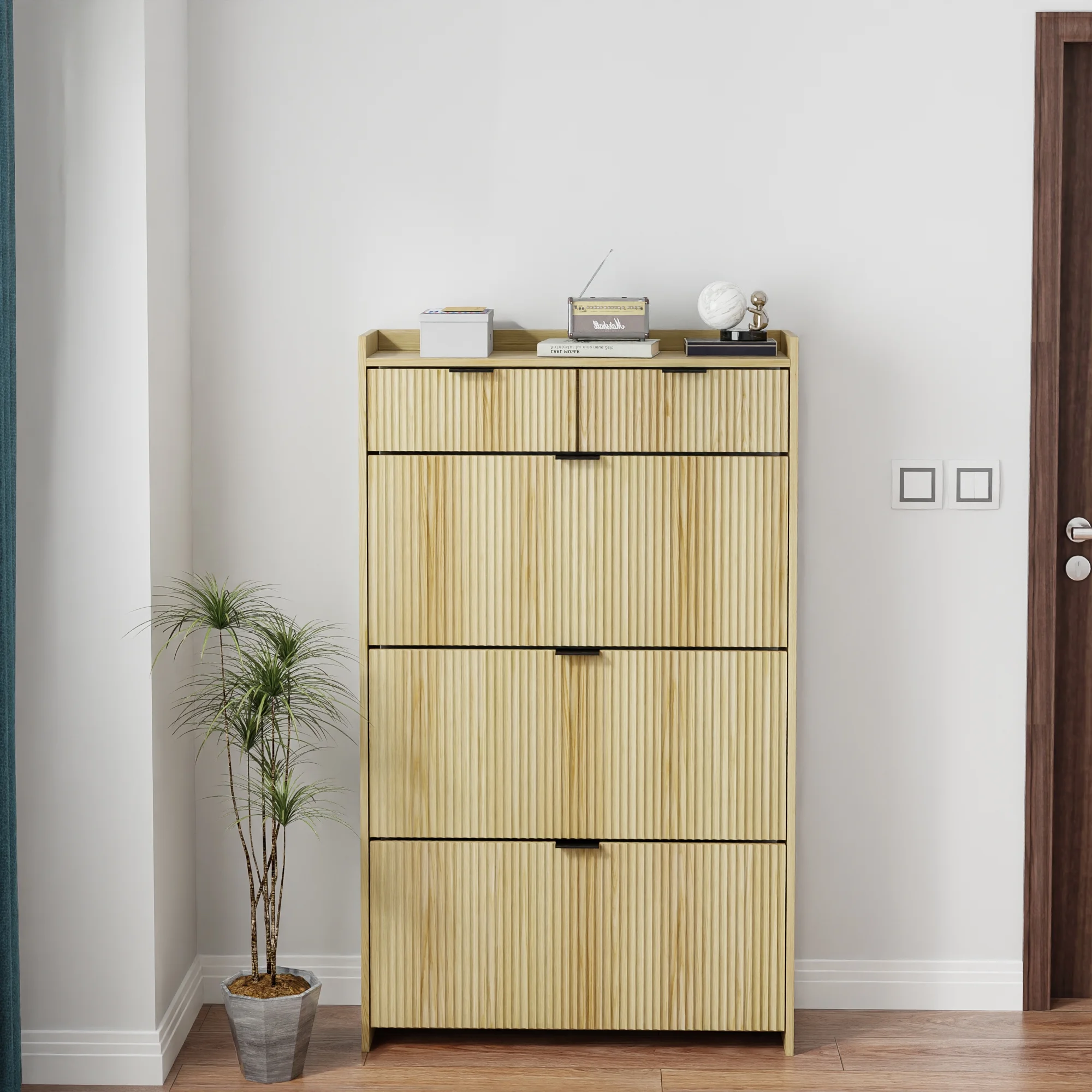 - [ Modern Style ] This shoe storage cabinet comes in natural classic colors, features a wave groove decorative surface, looks simple and stylish, brings elegant, cozy tones to your living area, and can be used as furniture and home decoration.