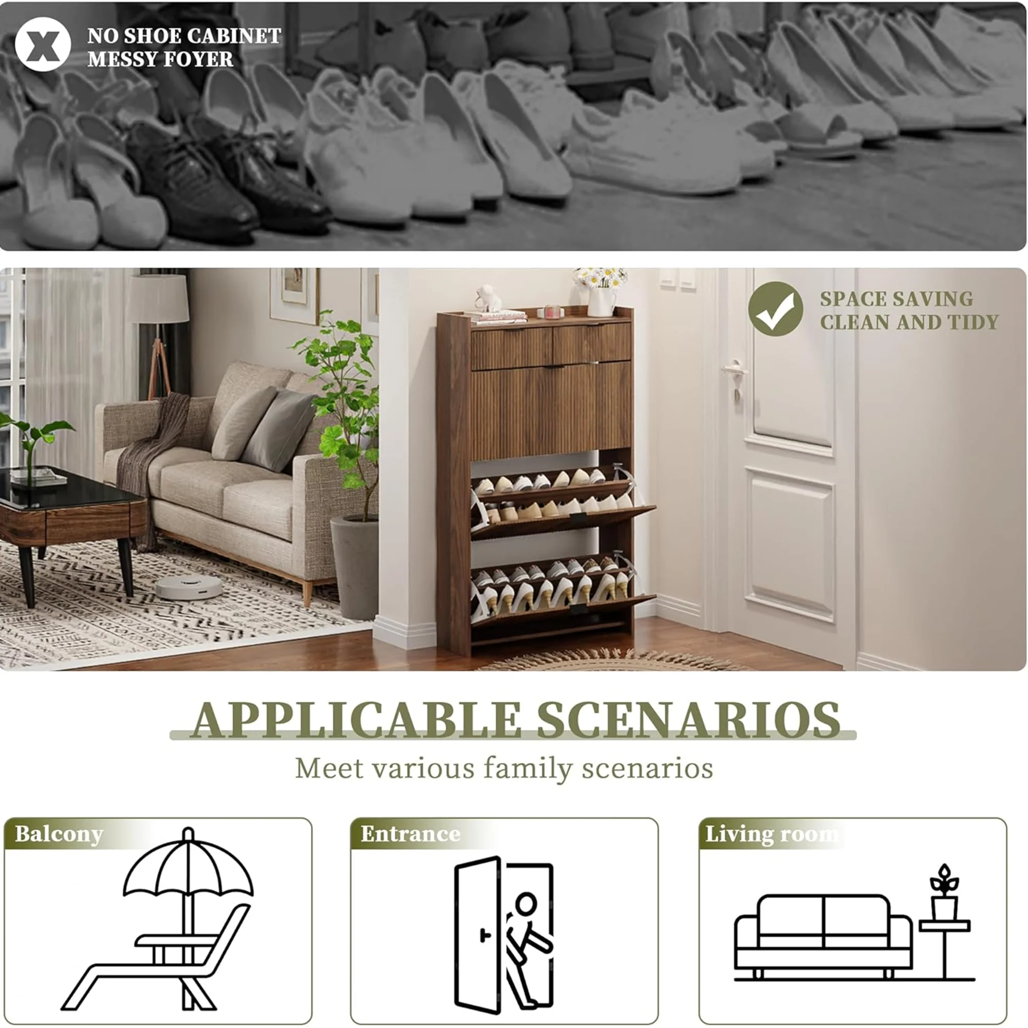 - [ Space-Saving Shoe Cabinet ] Slim construction and space-saving design make it a smart choice for tight spaces. Clear your hallway of clutter once and for all with this stylish shoe cabinet. Its modern-style design fits perfectly into natural color schemes and can be placed in a hall or entryway.