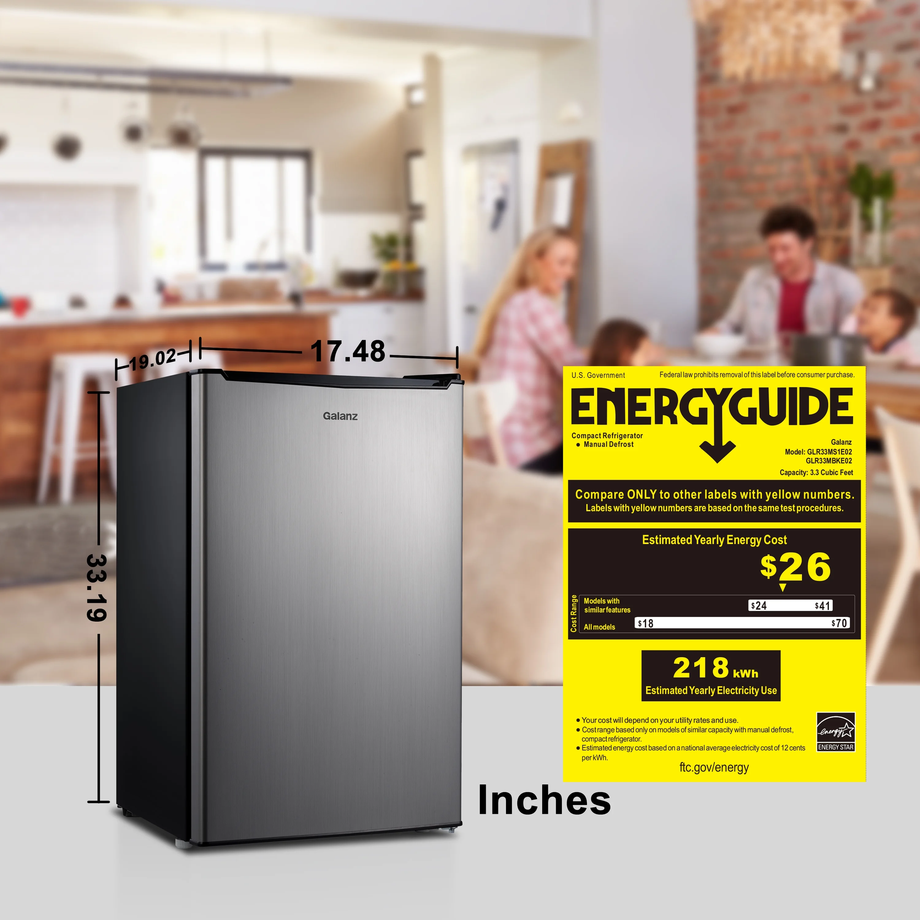 - Galanz 3.3 Cu ft One Door Mini Fridge, Black Estar