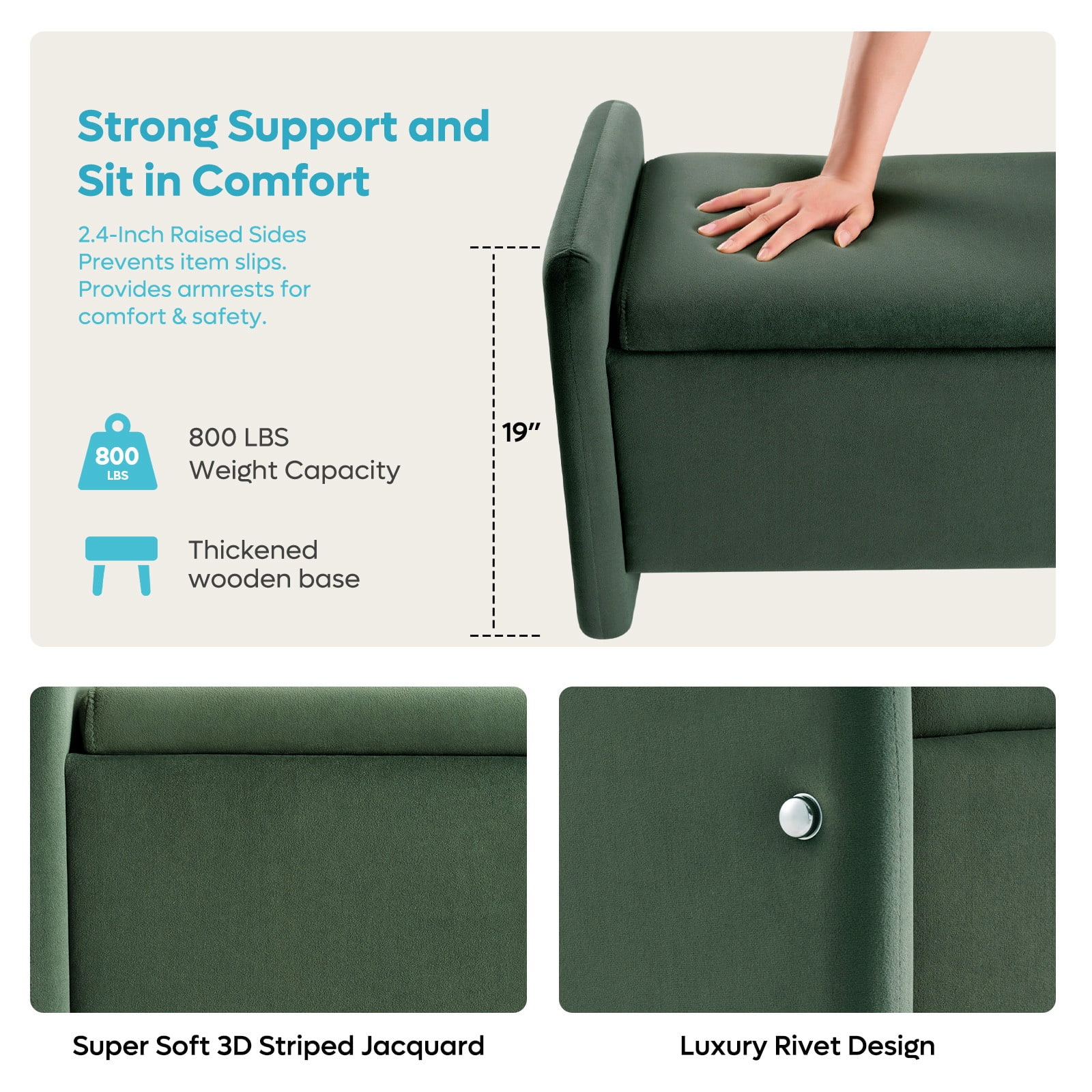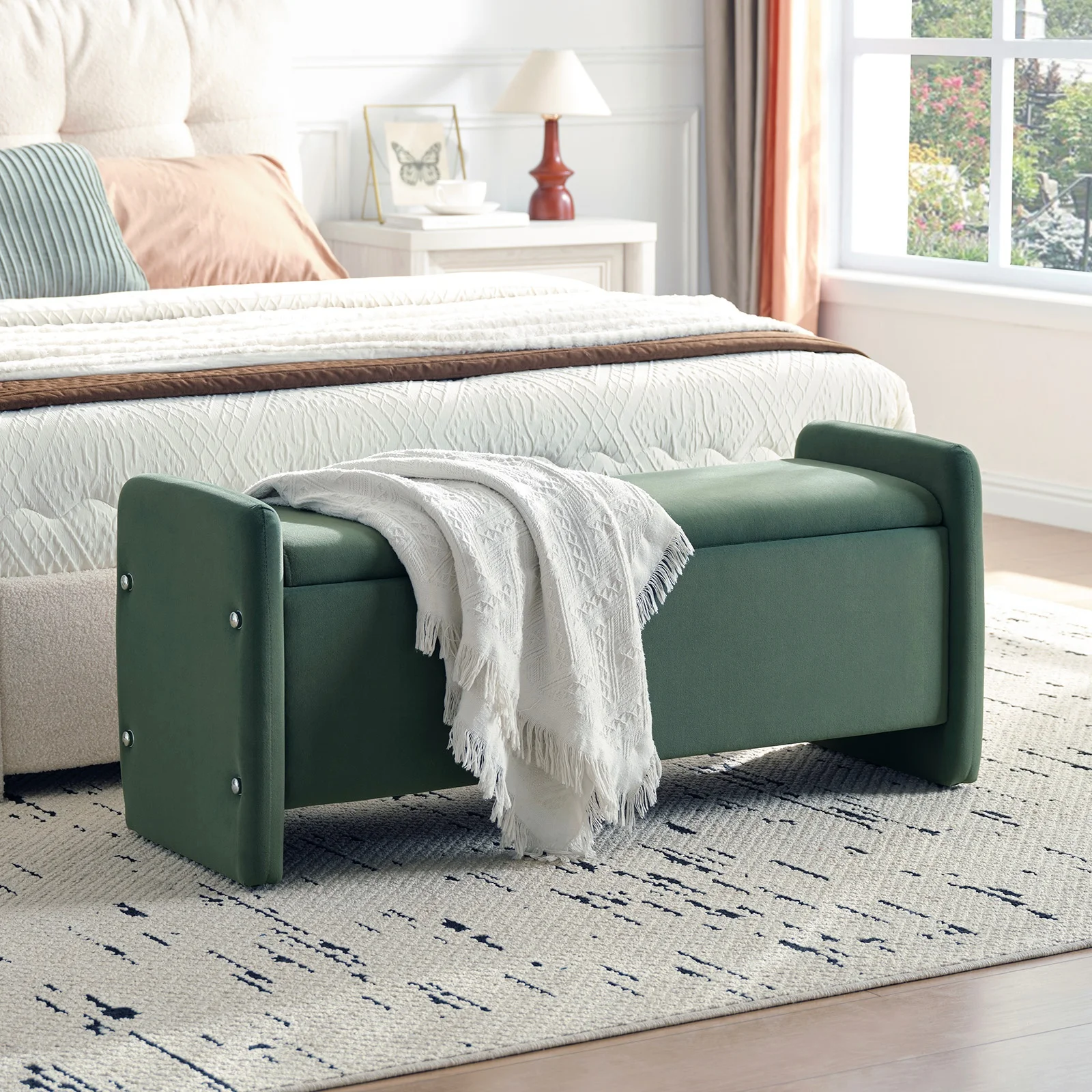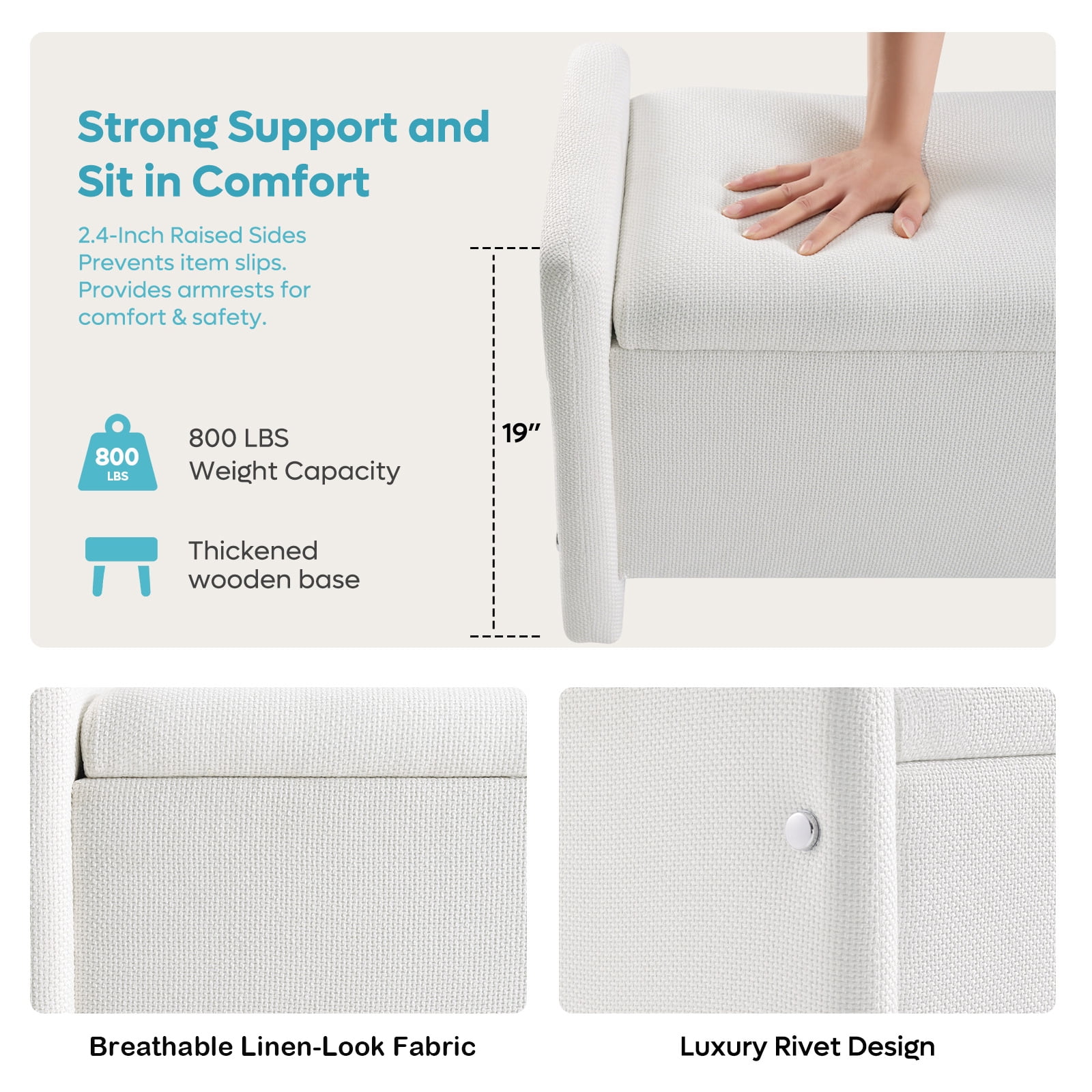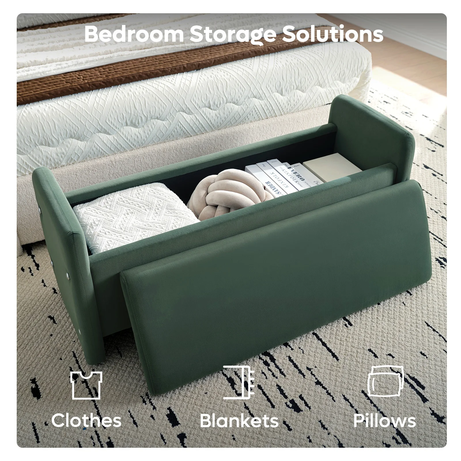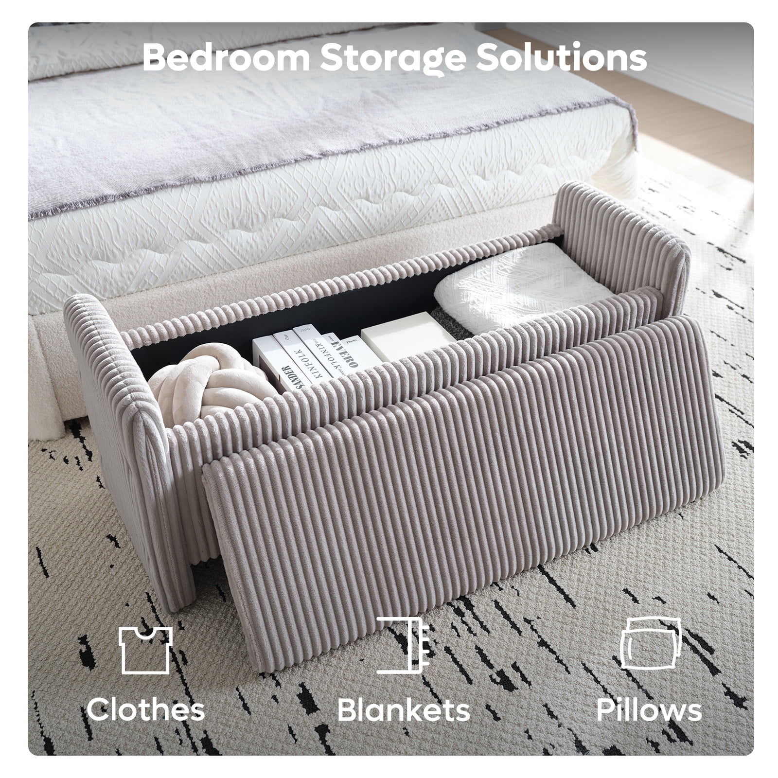 Sturdy & Durable Construction Ottoman Bench: Its robust wooden frame ensures long-lasting durability and superior support, making this upholstered bedroom bench with storage much more stable and stronger than typical foldable ottomans.Built for long-lasting use with reinforced edges to prevent item slippage,offering added safety for your family.