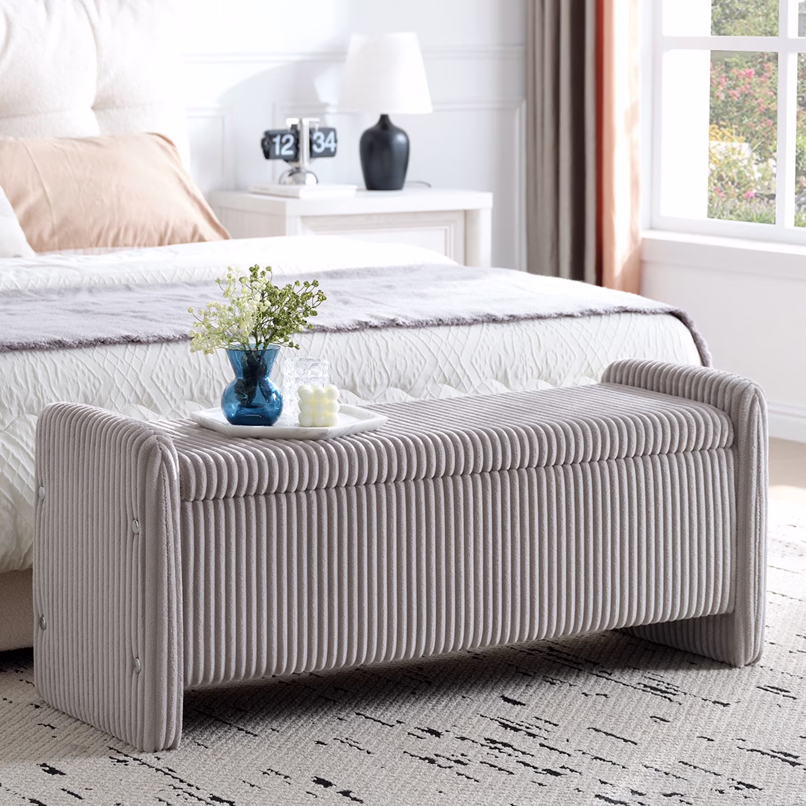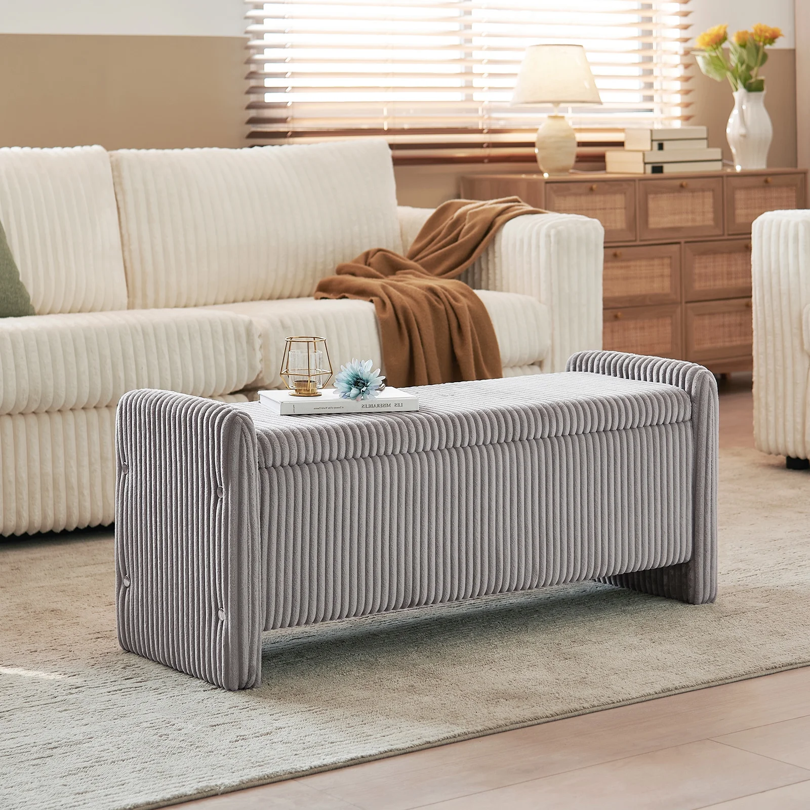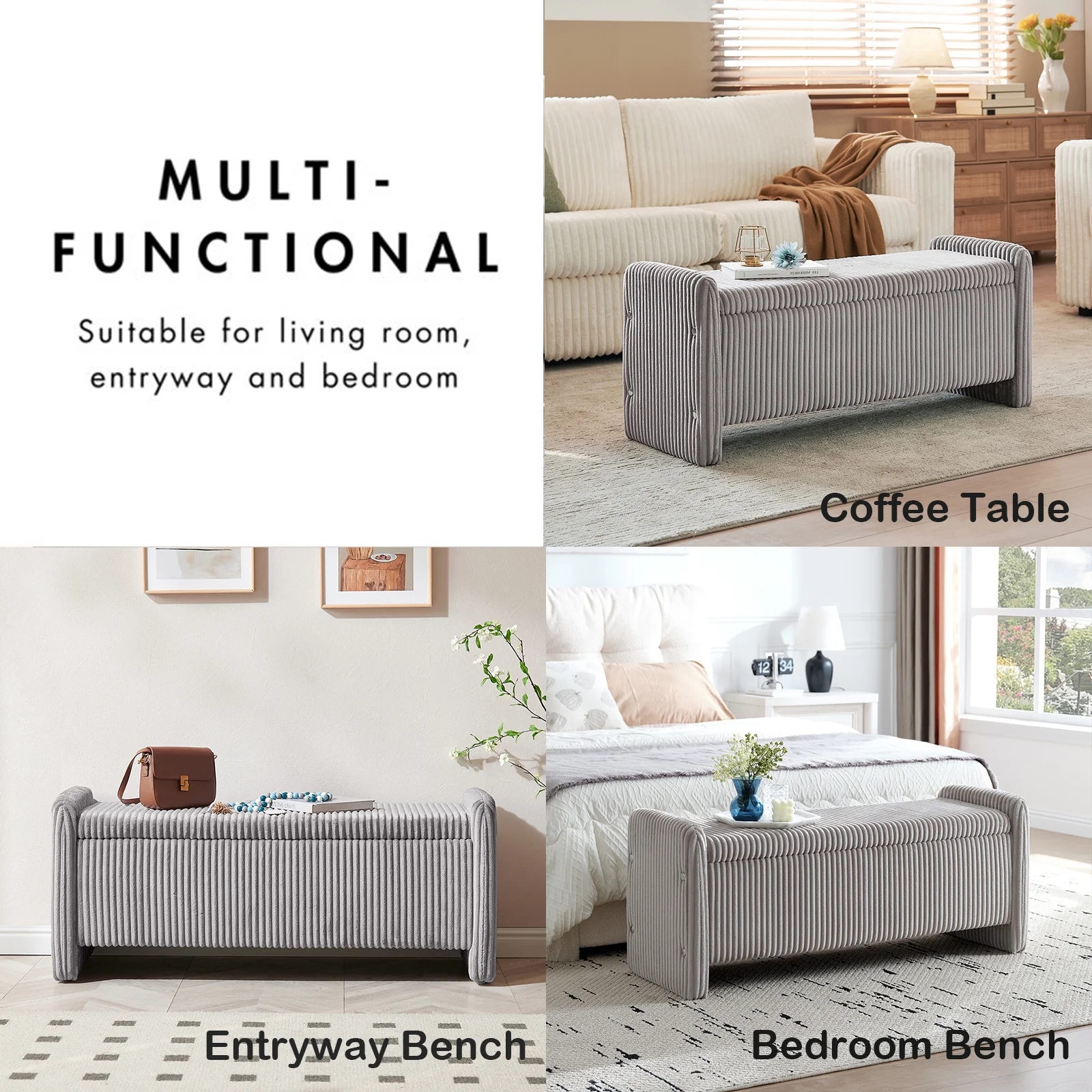 Cozy& Versatile Design Upholstered Benches: Crafted with breathable, skin-friendly, and wear-resistant corduroy fabric with a high-density foam cushion for lasting support and comfort.
