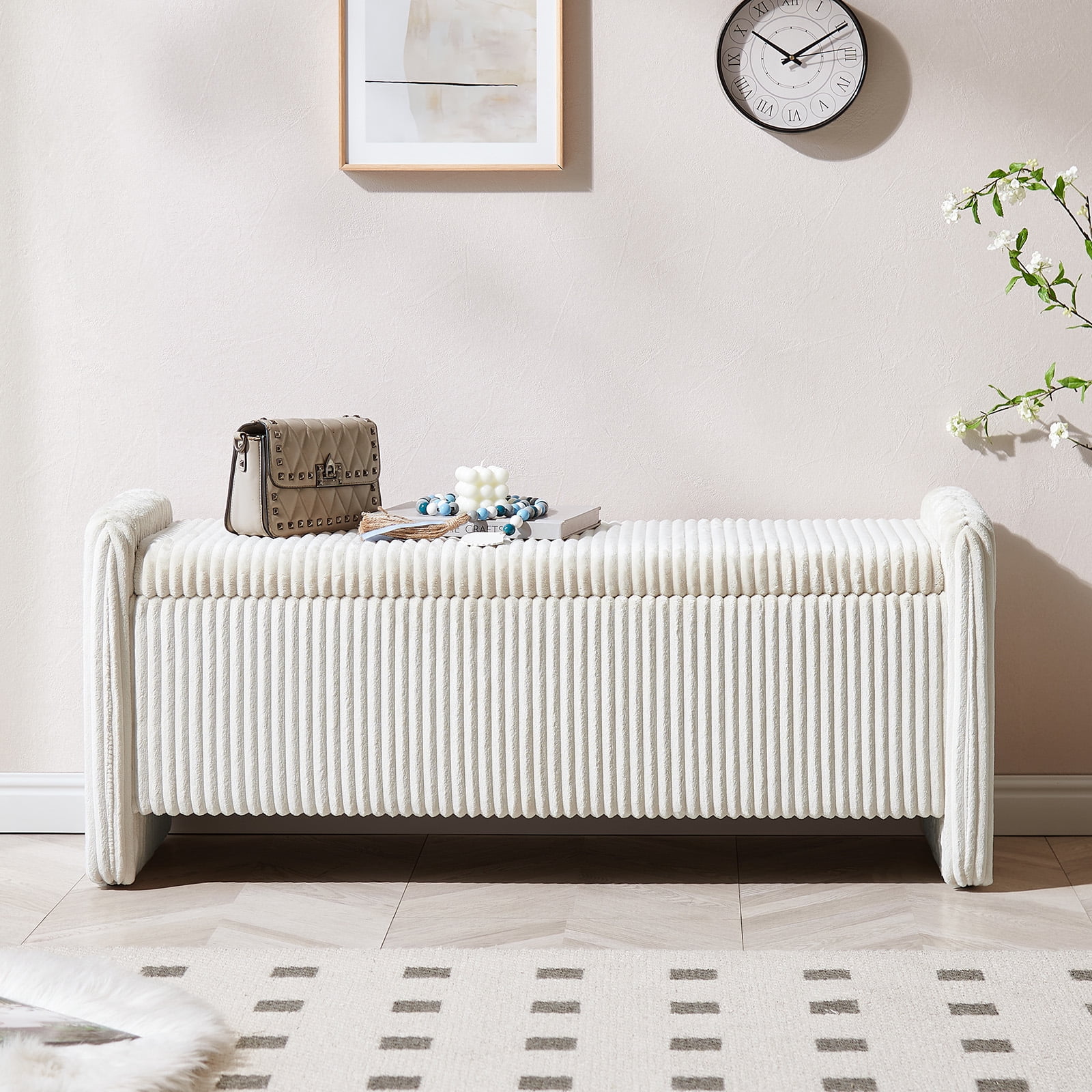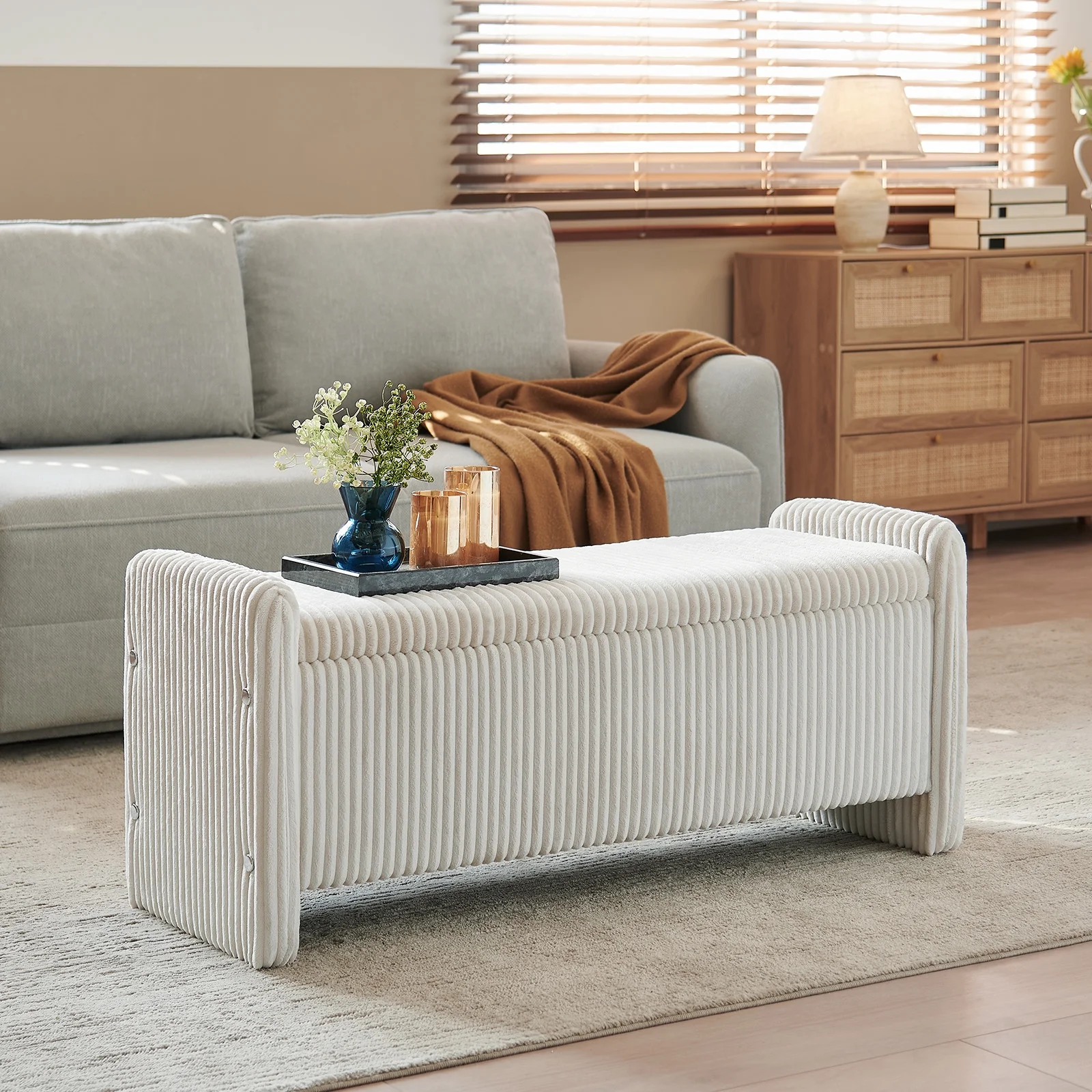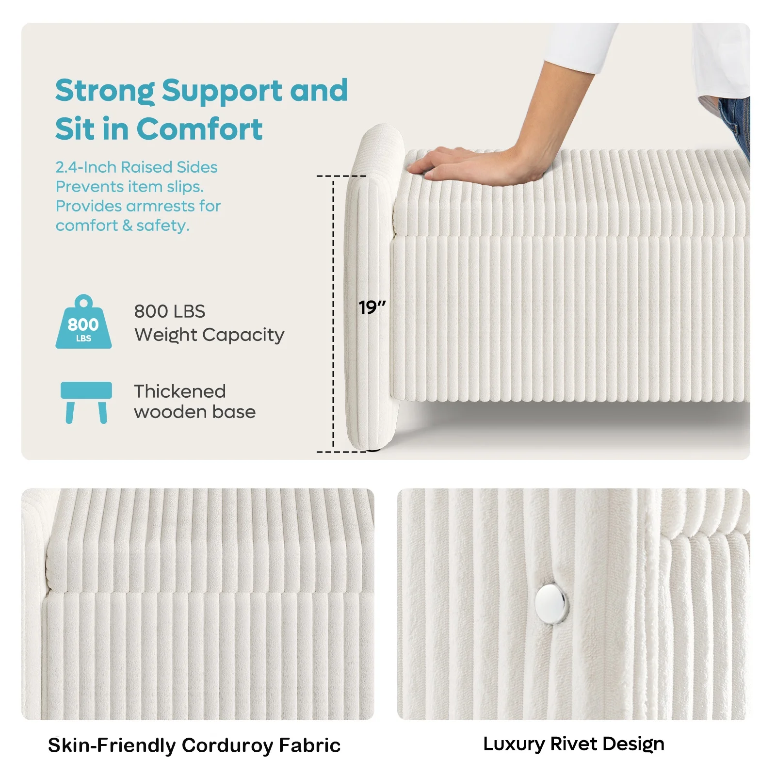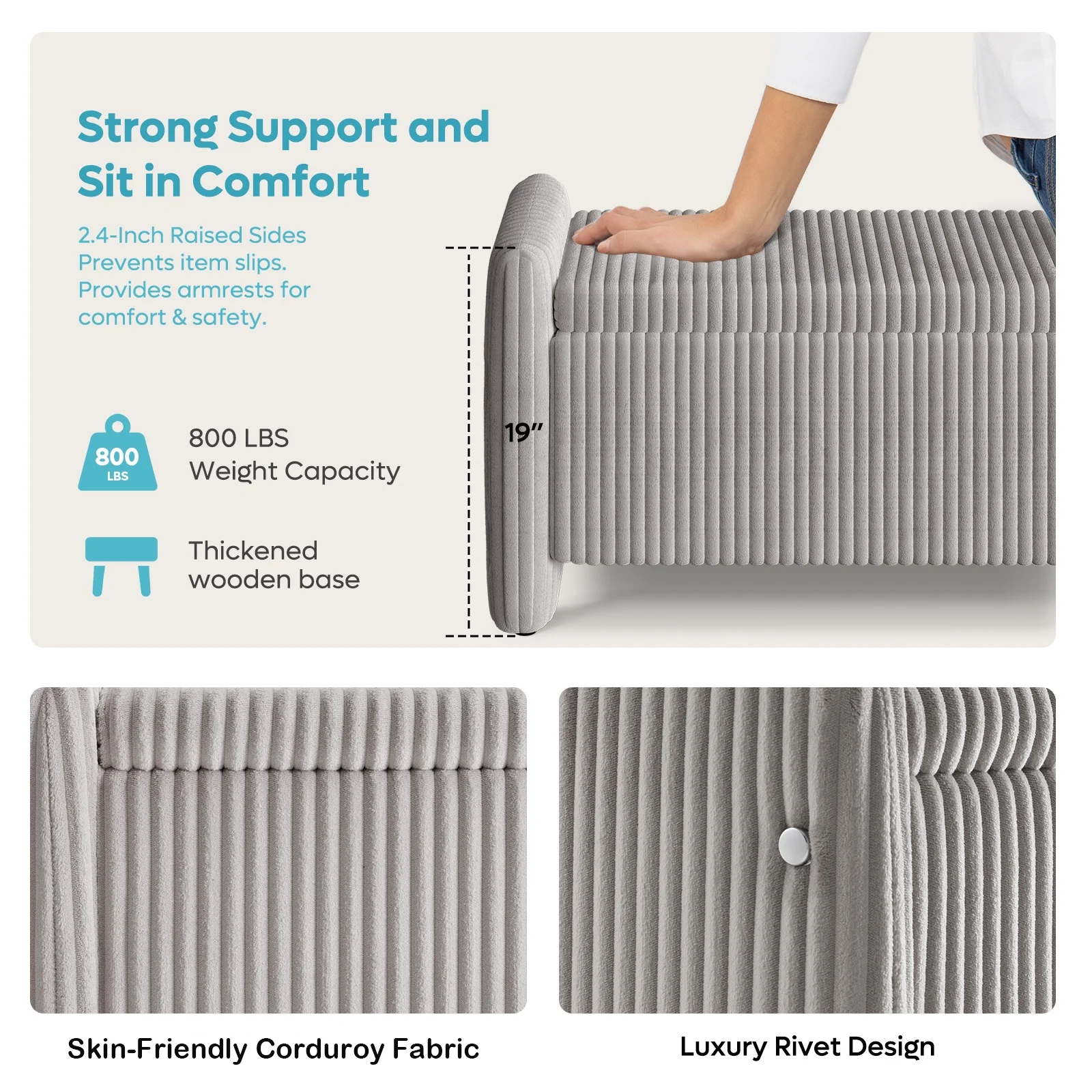 Cozy& Versatile Design Upholstered Benches: Crafted with breathable, skin-friendly, and wear-resistant corduroy fabric with a high-density foam cushion for lasting support and comfort.