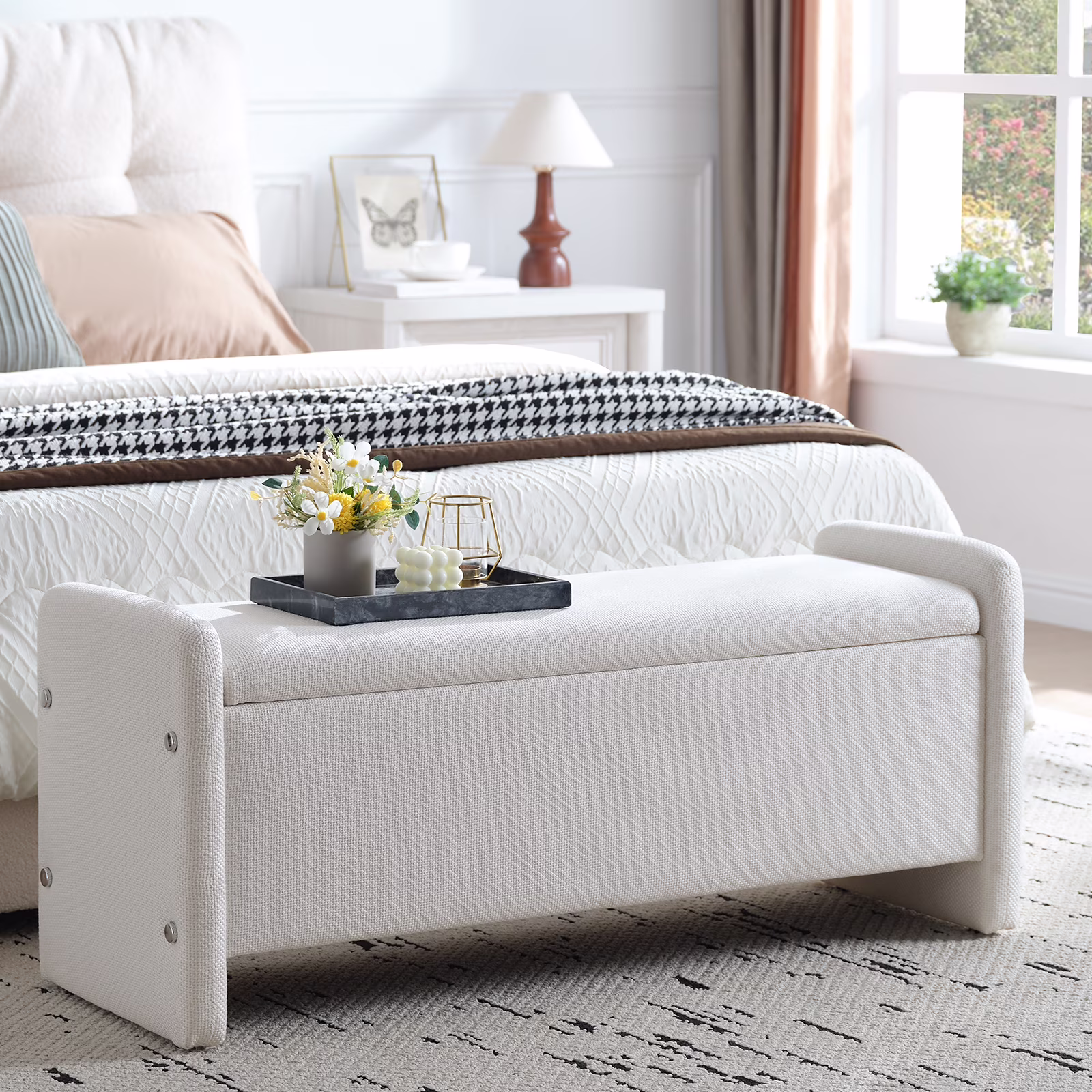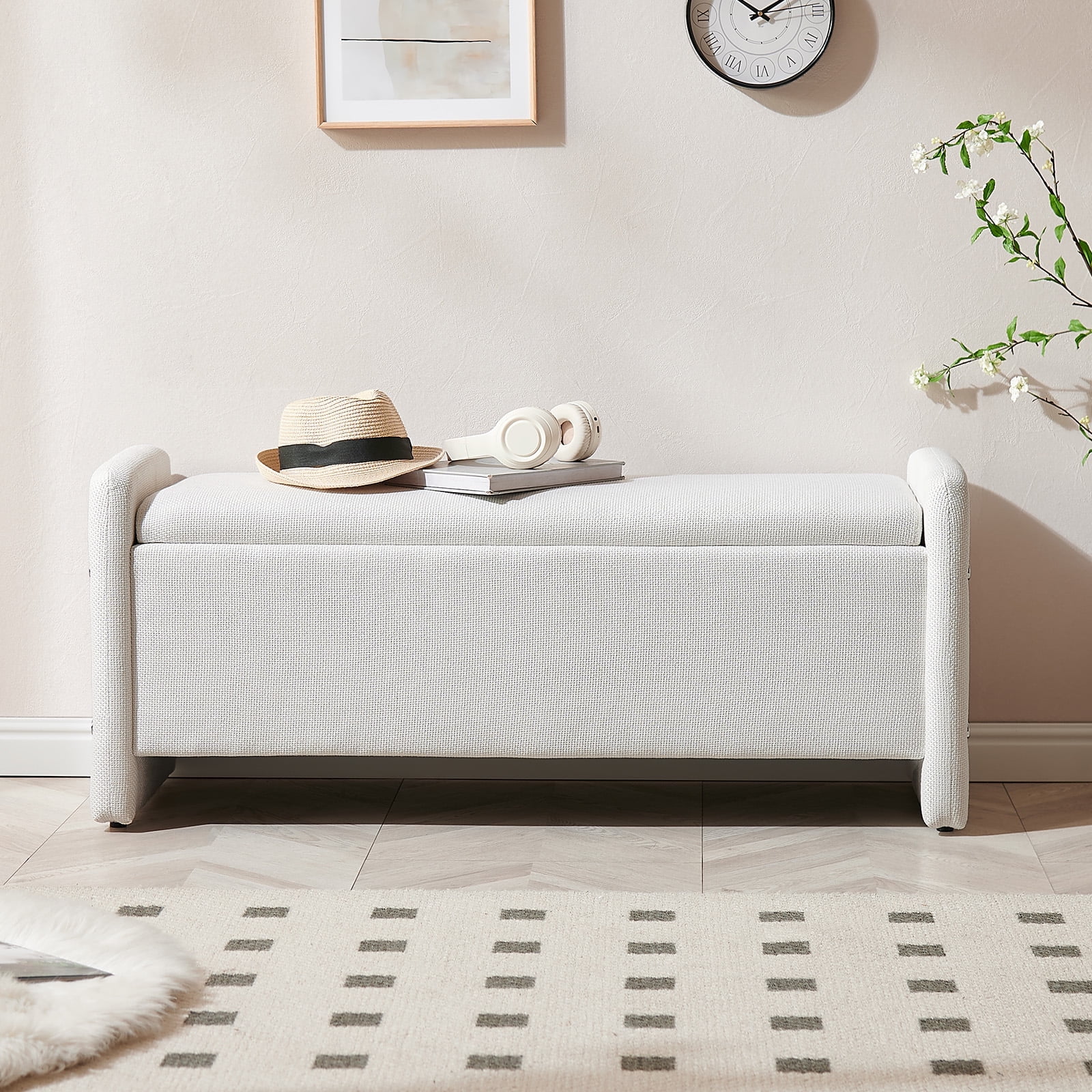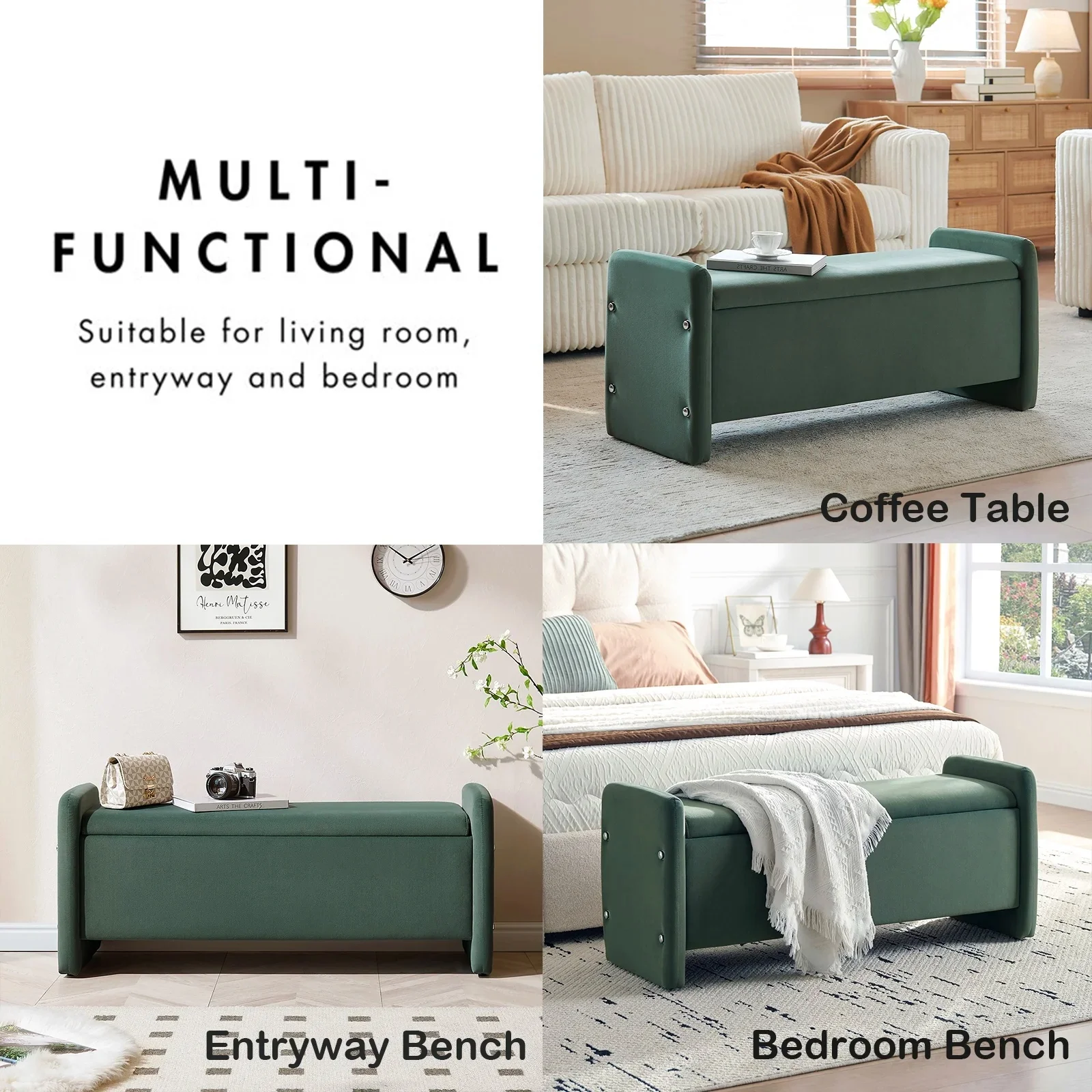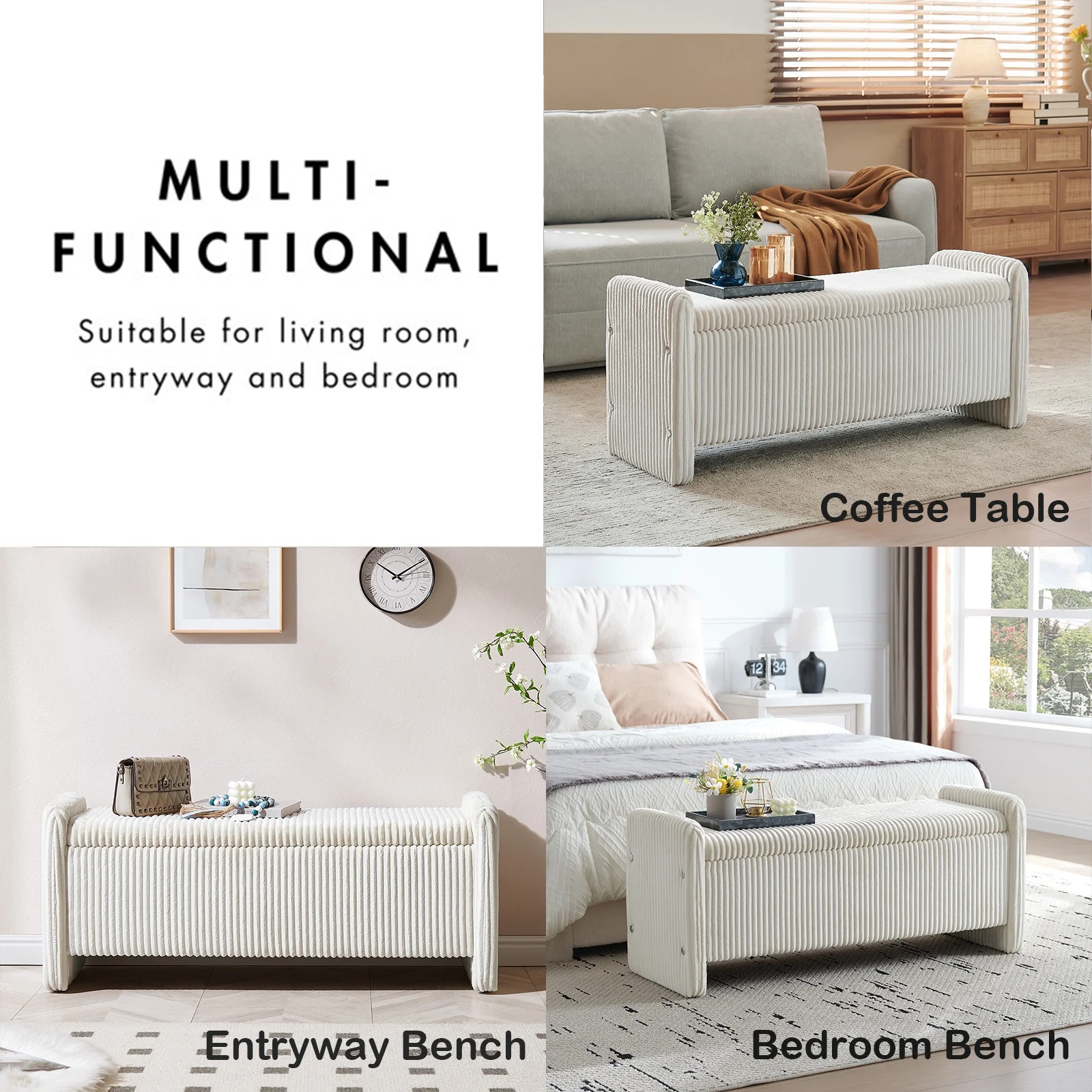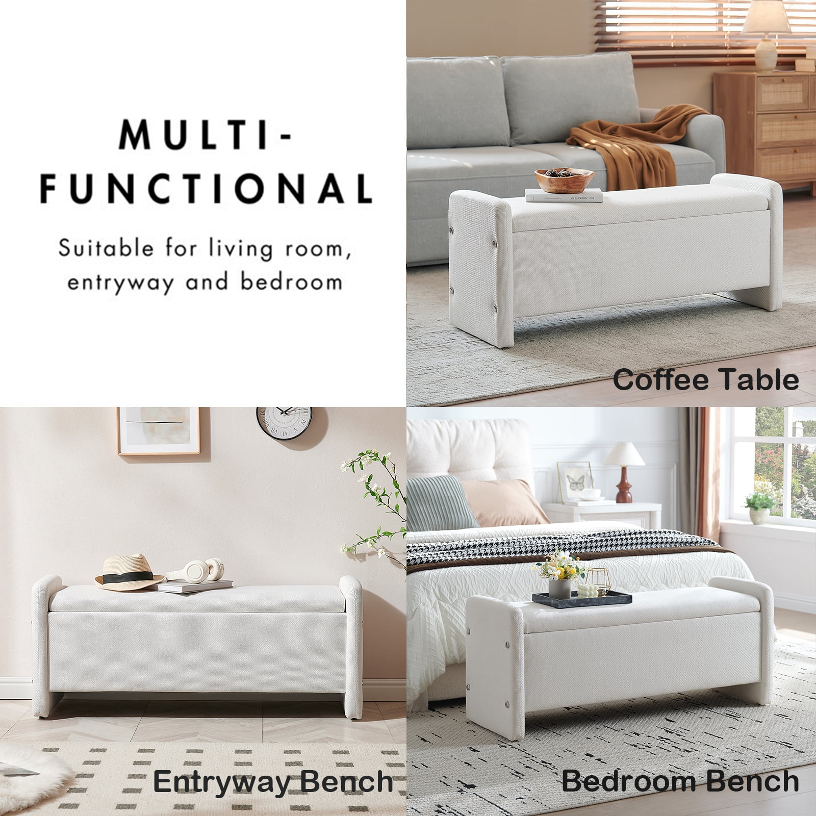 Versatile Bench:Designed for versatility, this end of bed bench with storage and seating is ideal for use in other multiple settings such as the entryway, living room, bedroom, or dormitory. It can function as a foot stool, storage box, bench seat, toy storage, or even a coffee table, making it a practical addition to any space.