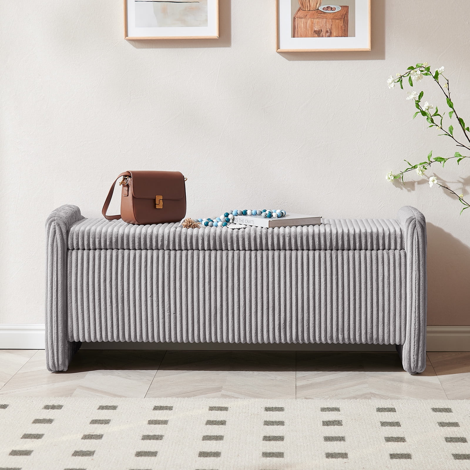 Pinmoco 44" Storage Ottoman Bench, Upholstered Entryway Bench with Storage End of Bed Bench for Bedroom& Living Room, Corduroy Gray.