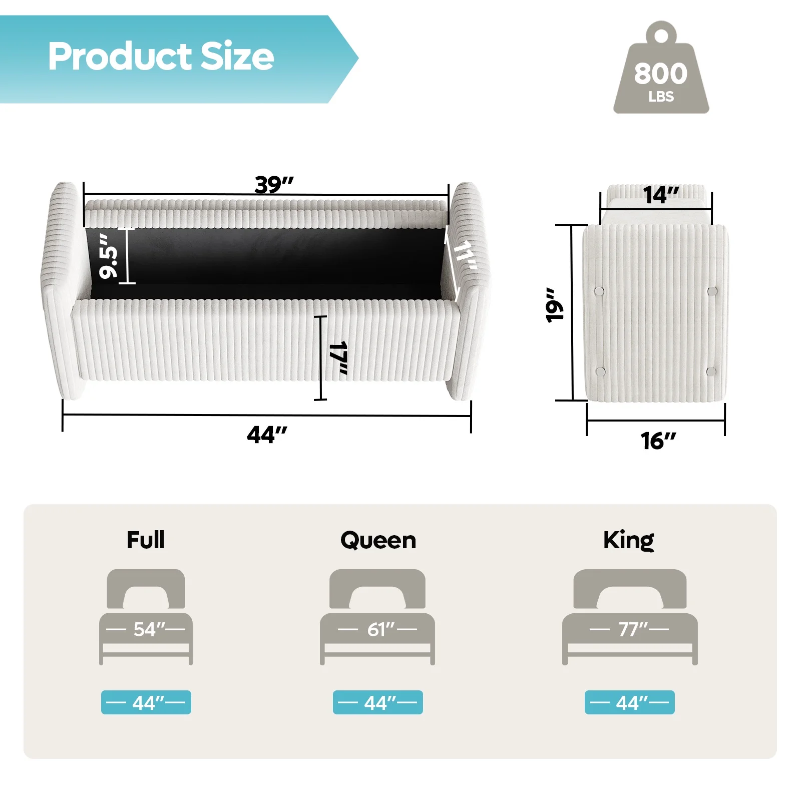 Spacious Storage Bench: The internal storage space measuring 39L''x11W''x9.5H''. It easily accommodates a range of items, including clothing, pillows, shoes, bags, blankets, toys, and more, ensuring everything stays neatly organized and readily accessible.
