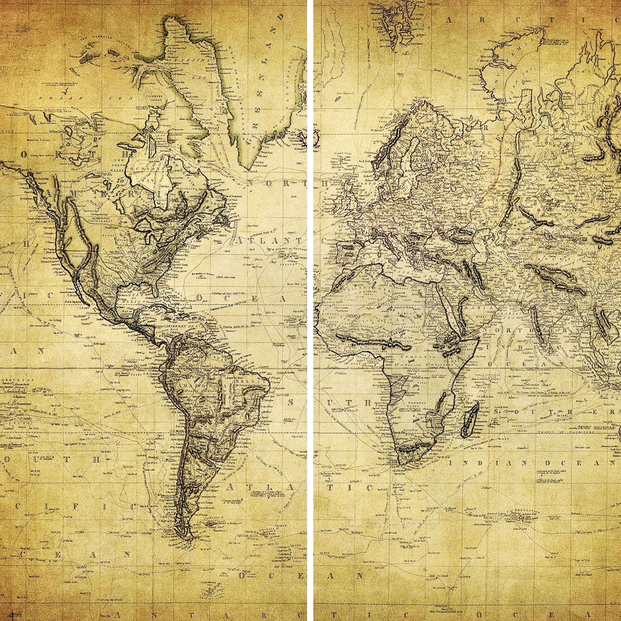 Oriental Furniture 6 Ft. Tall Vintage World Map Canvas Room Divider - 3 Panel