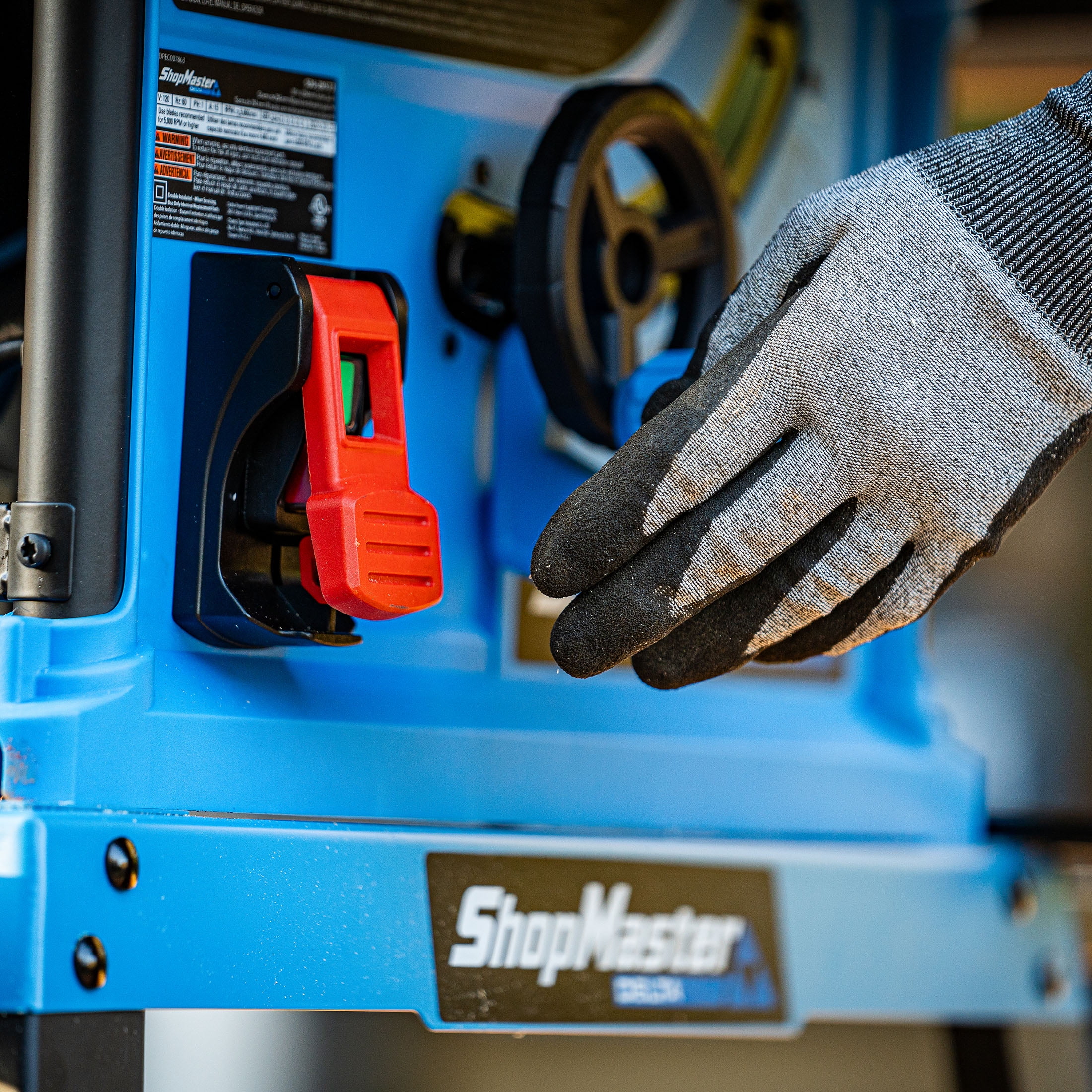 - One-touch Fence System with flip down ripping fence allows for narrow rip cuts.