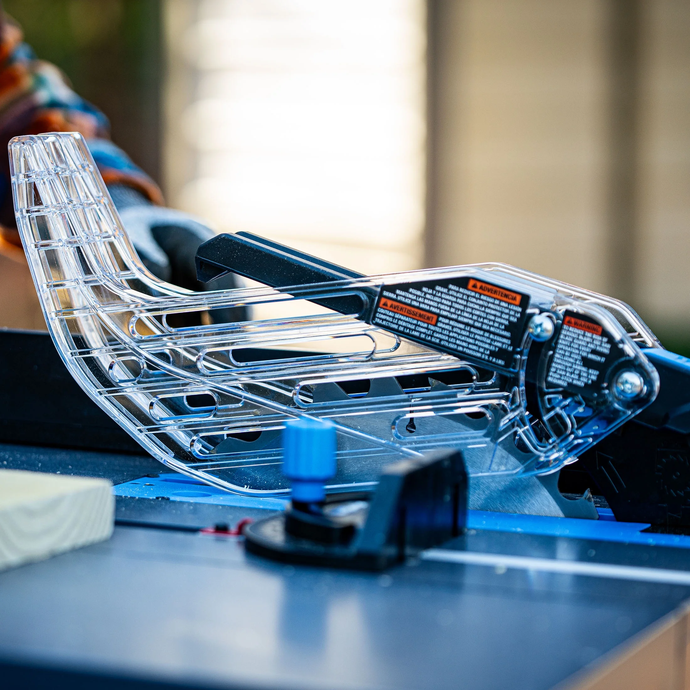 - Tool-less assembly of riving knife and anti-kickback pawls.