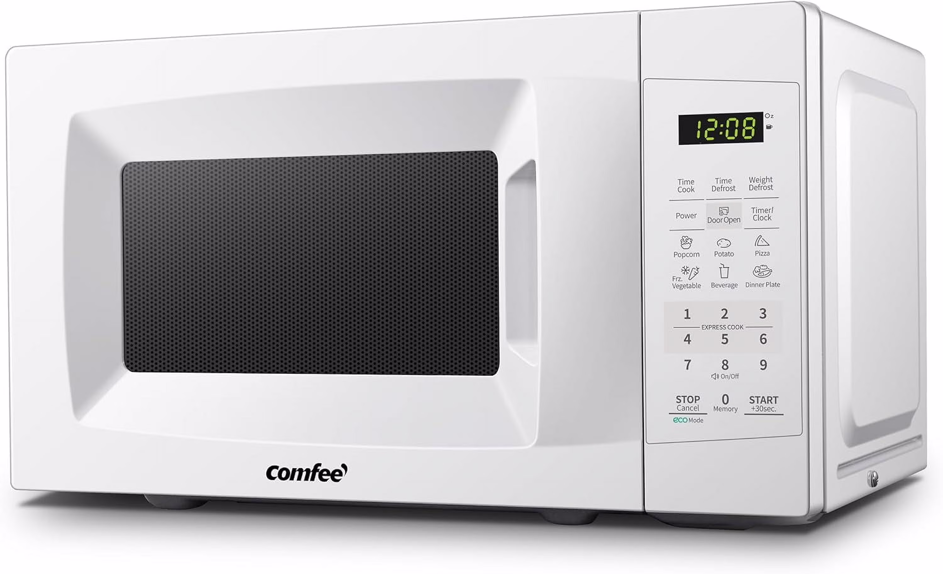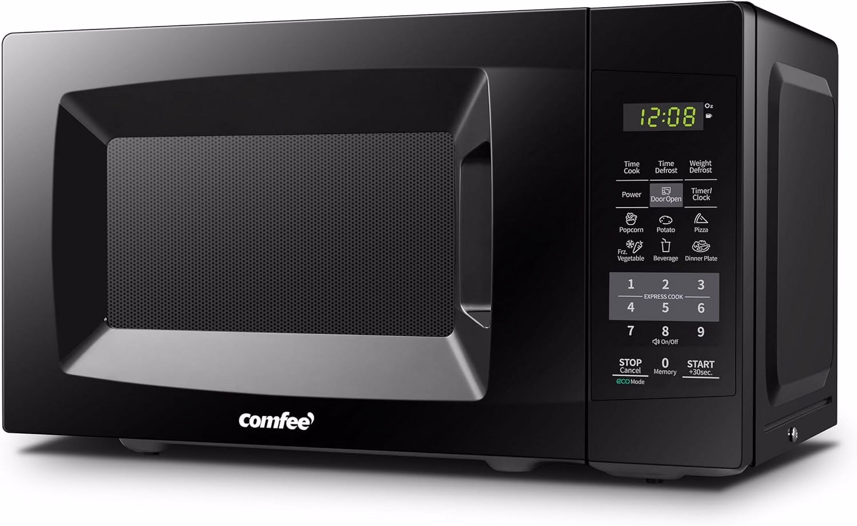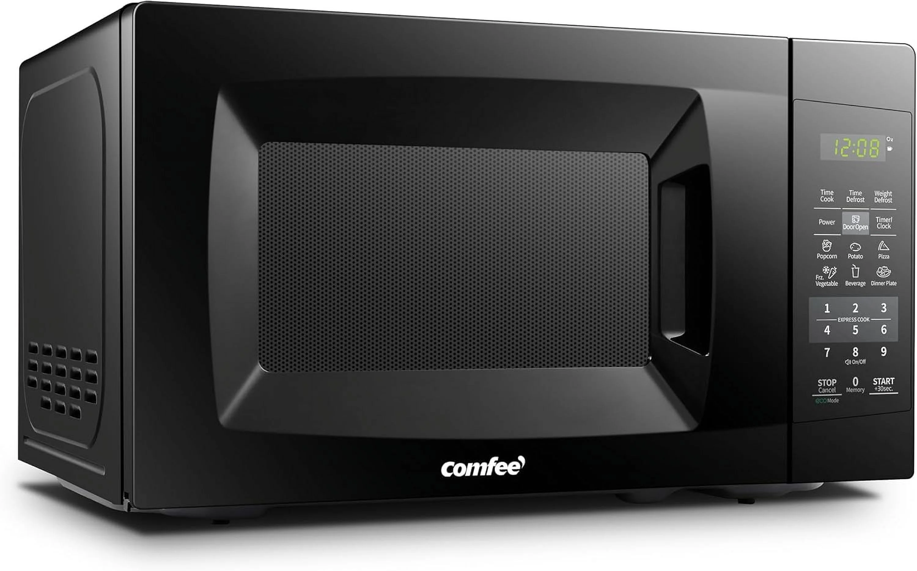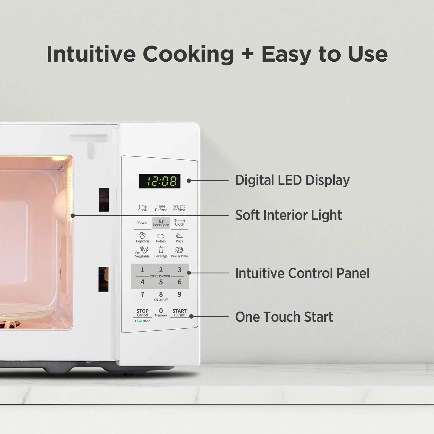 This compact 0.7-cubic-foot, 700-watt microwave features convenient one-touch cooking, 11 power settings, a mute button, and a removable turntable, making it easy to store in a cabinet or on a countertop. The large LED digital display features a clock, a kitchen timer, and remaining cooking time. It also features an energy-saving Eco mode that turns off the LED display. A convenient mute button silences the microwave's buzzer for quiet operation. Its compact size makes it perfect for apartment kitchens, vacation homes, offices, or dorm rooms. It operates on 110V.